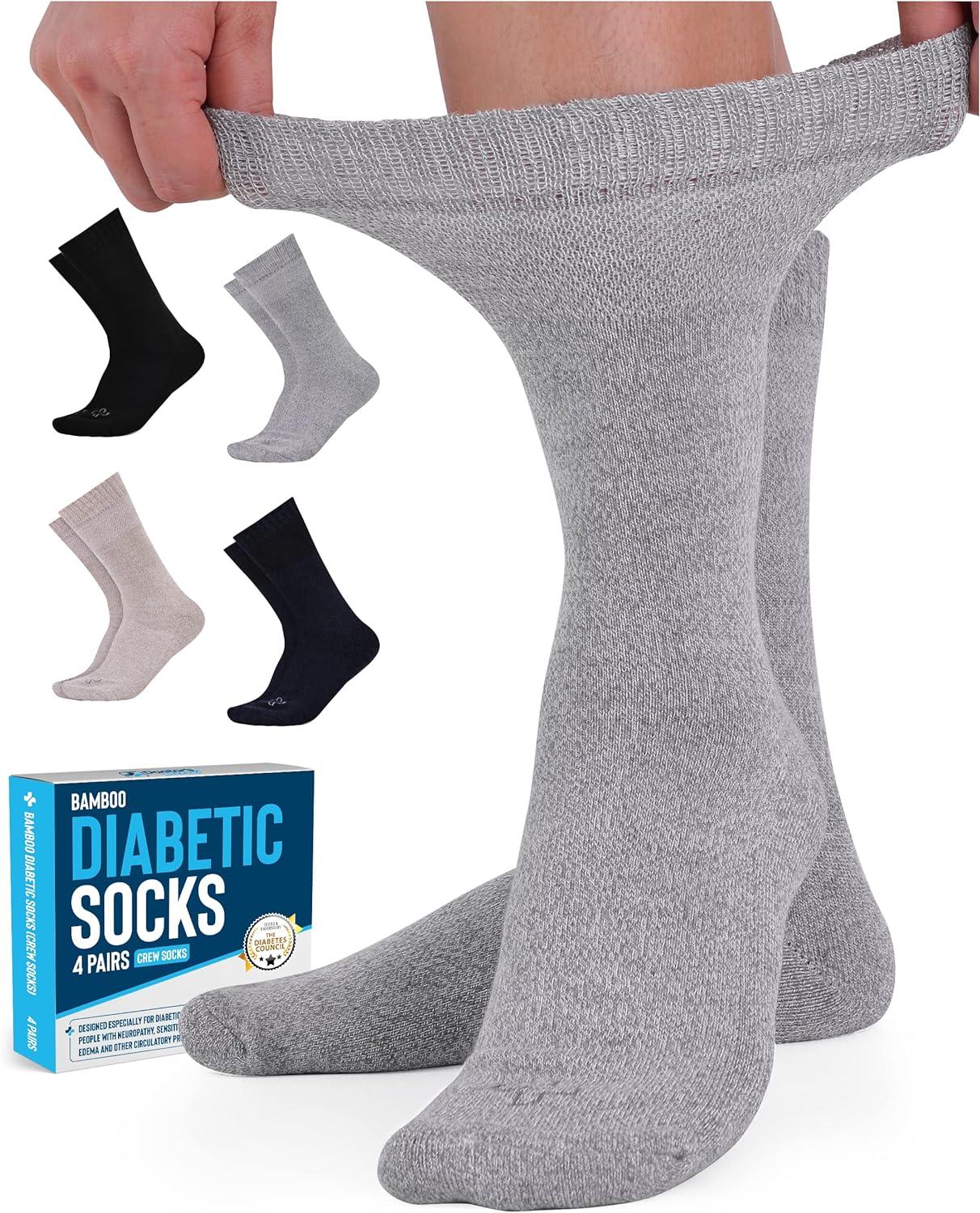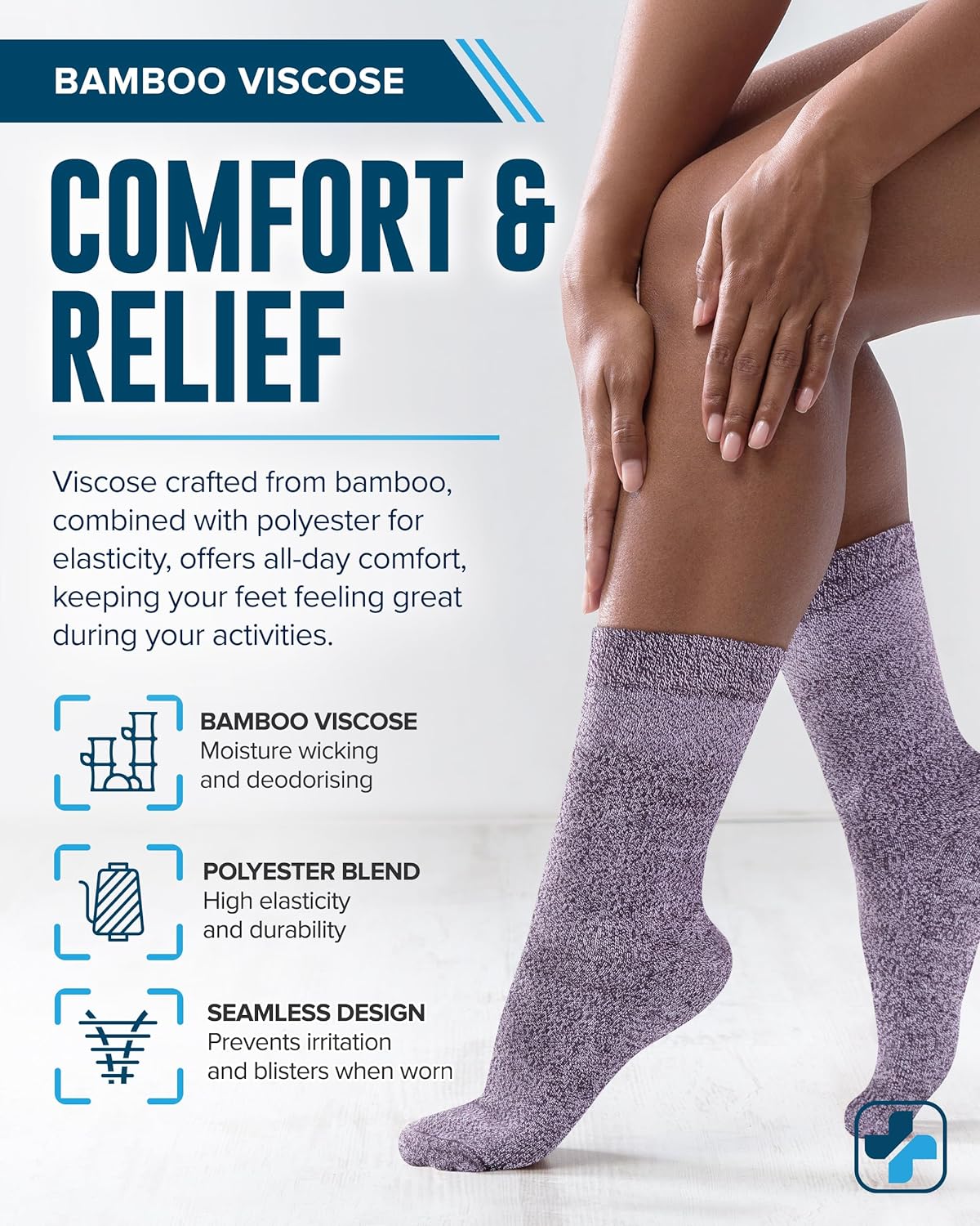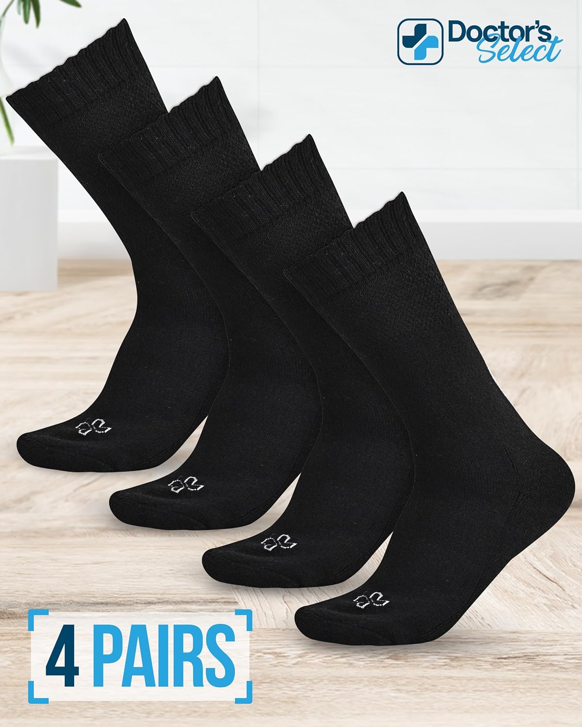 Doctor's Select Bamboo Diabetic Socks Women - 4 Pairs Crew Womens Diabetic Socks | Diabetic Socks for Women Size 6-9 and 9-11