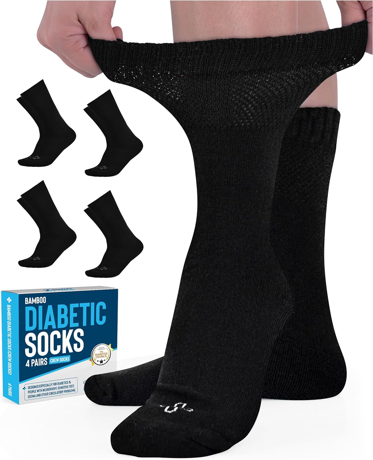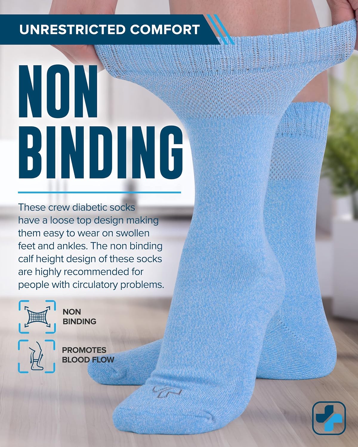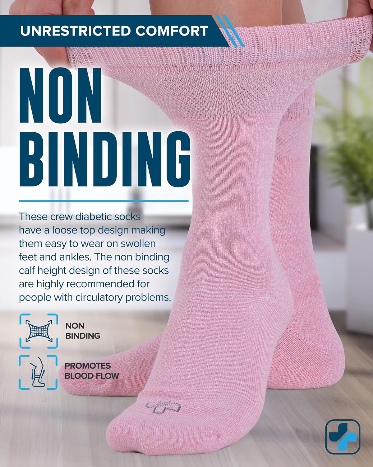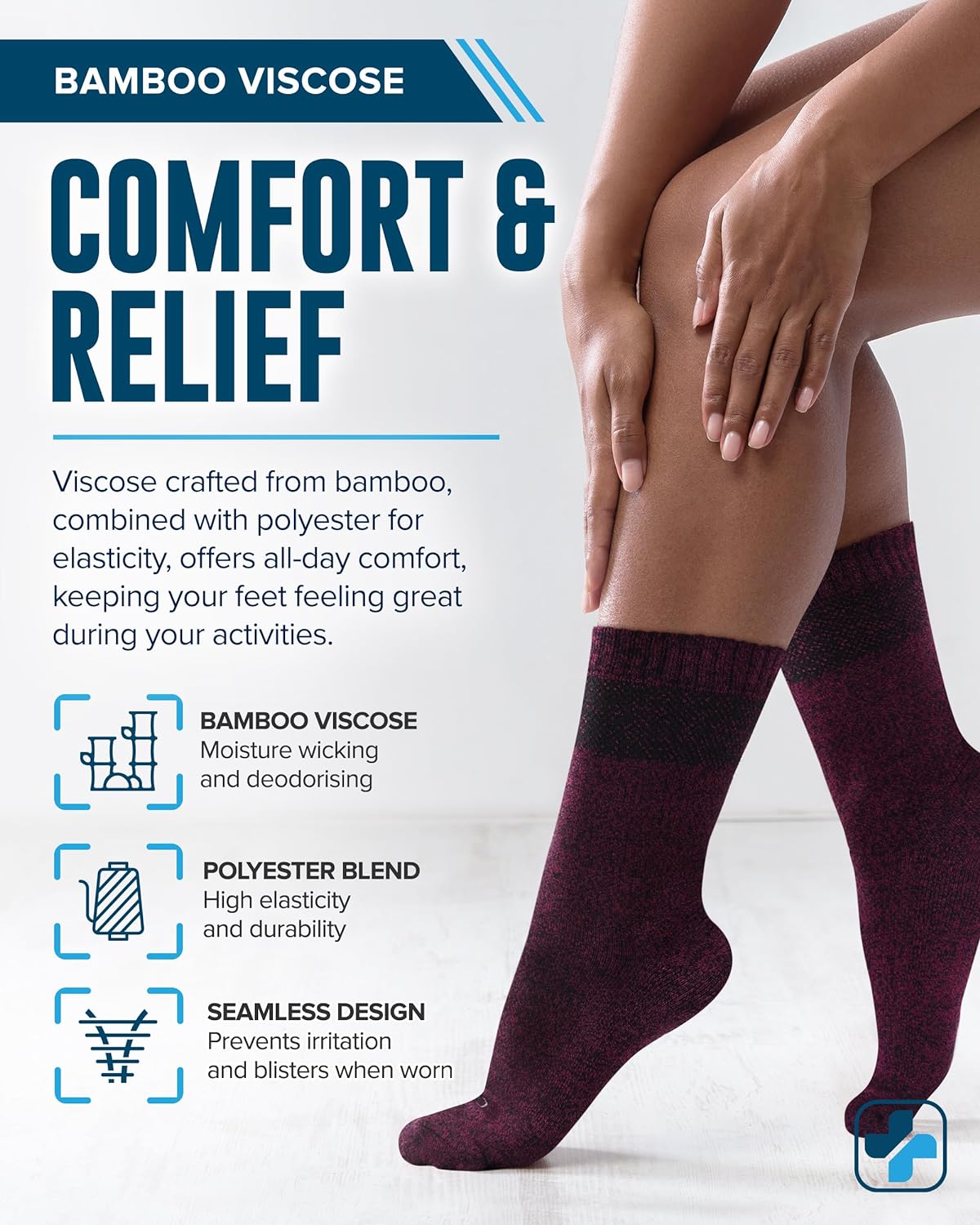 Doctor's Select Bamboo Diabetic Socks Women - 4 Pairs Crew Womens Diabetic Socks | Diabetic Socks for Women Size 6-9 and 9-11