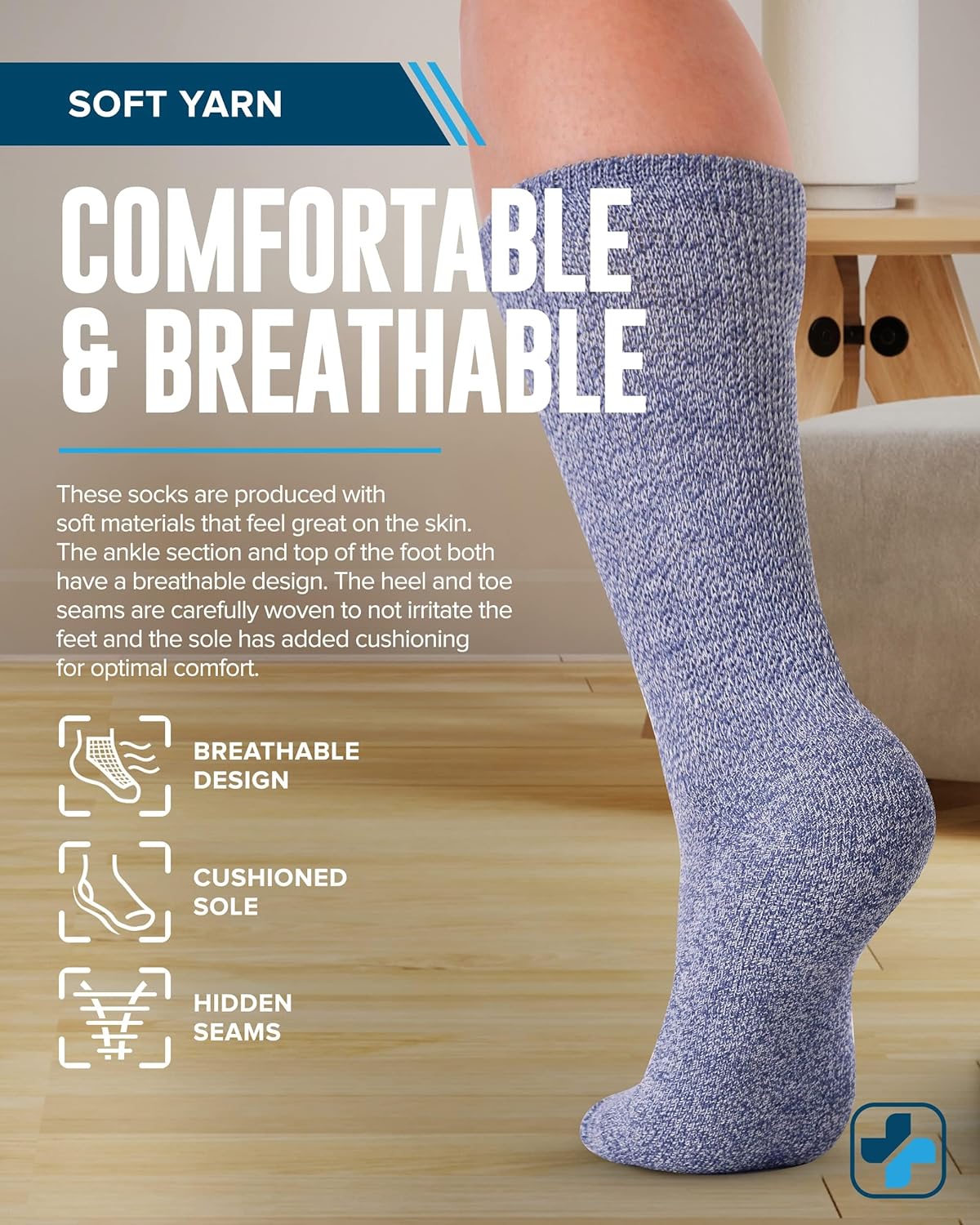• Comfortable & Breathable - These diabetes socks are produced with soft materials that feel great on the skin. The ankle section and top of the foot both have breathable design. The heel and toe seams are carefully woven to not irritate the feet and the sole has added cushioning for optimal comfort.