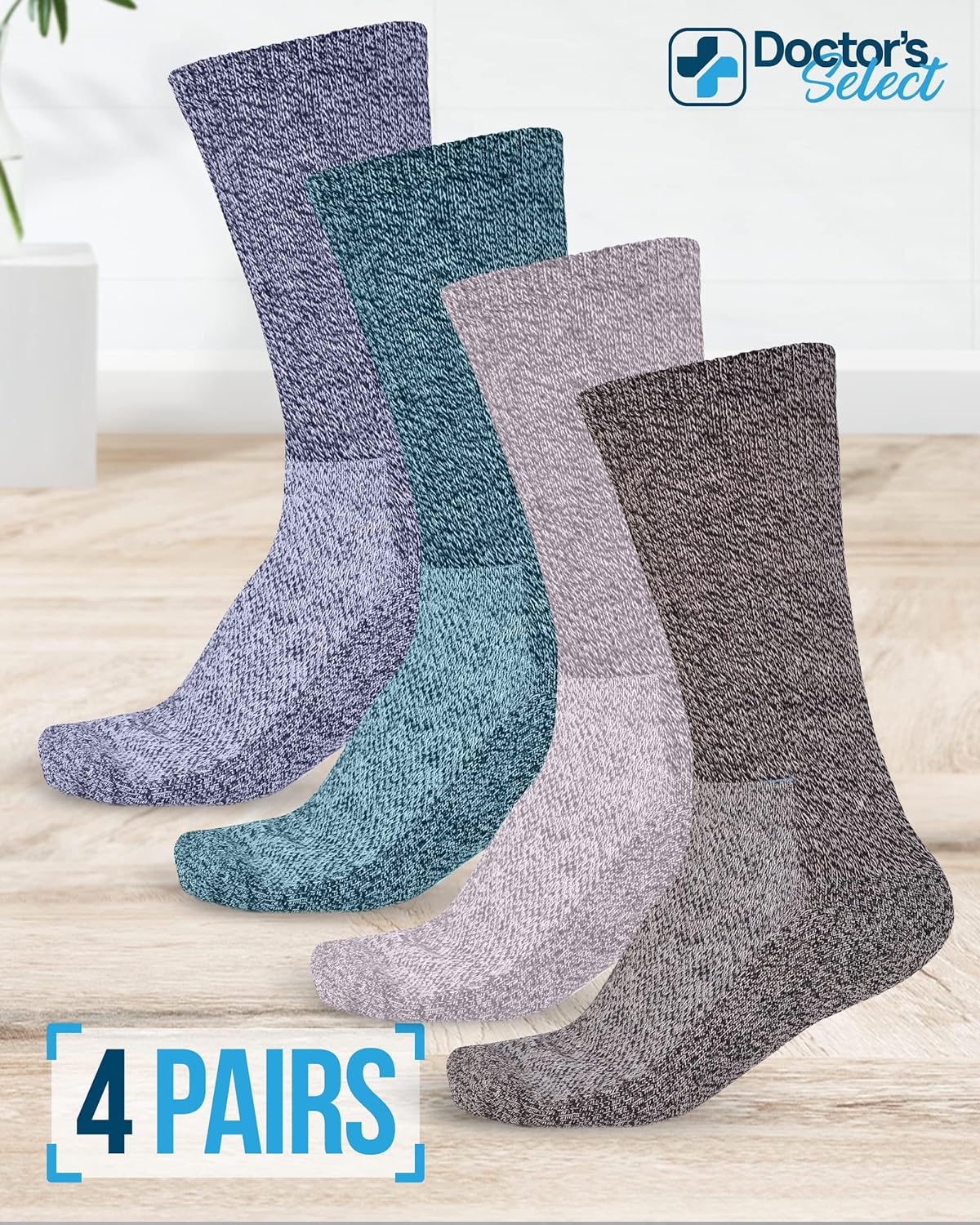 Doctor's Select Diabetic Socks for Men and Women - 4 Pairs Neuropathy Socks | Socks for Diabetics Men | Mens Diabetic Socks