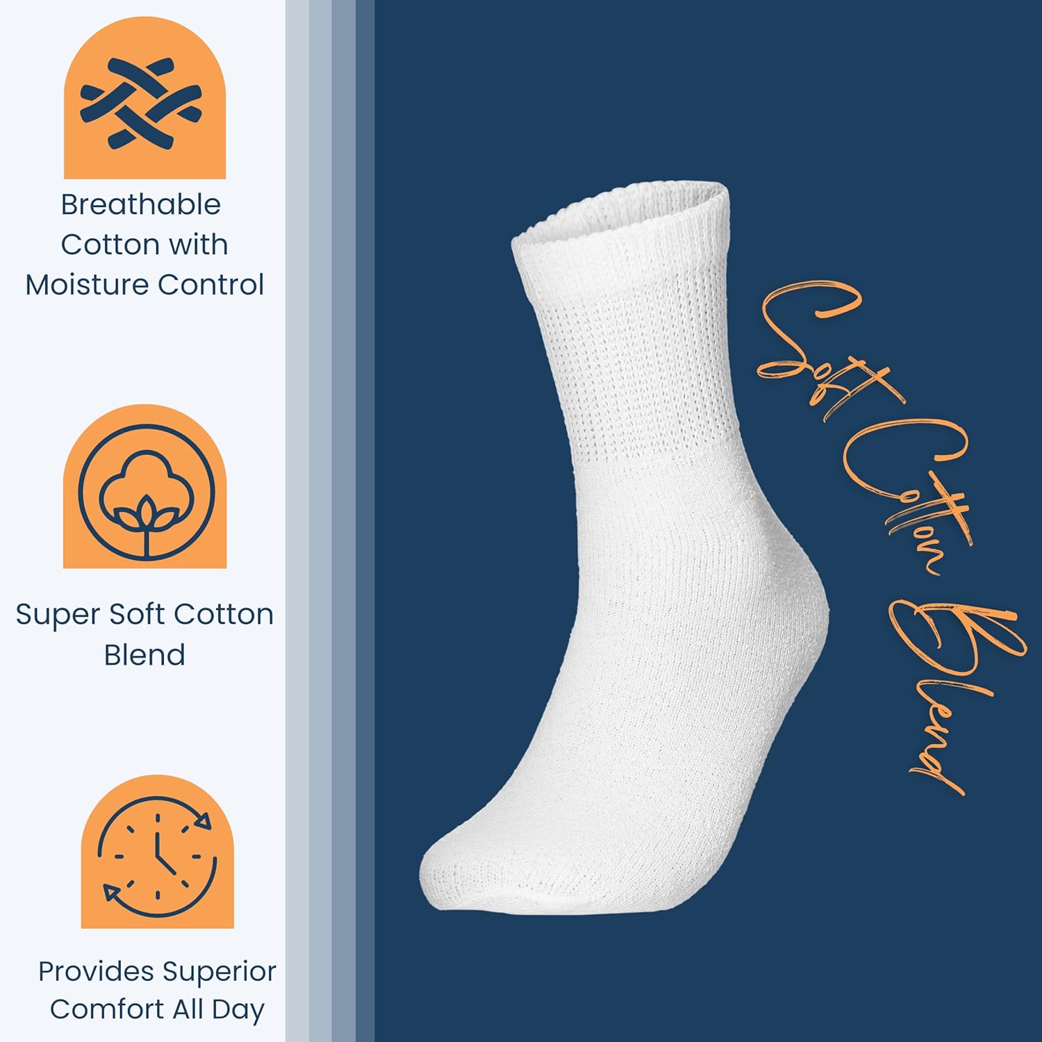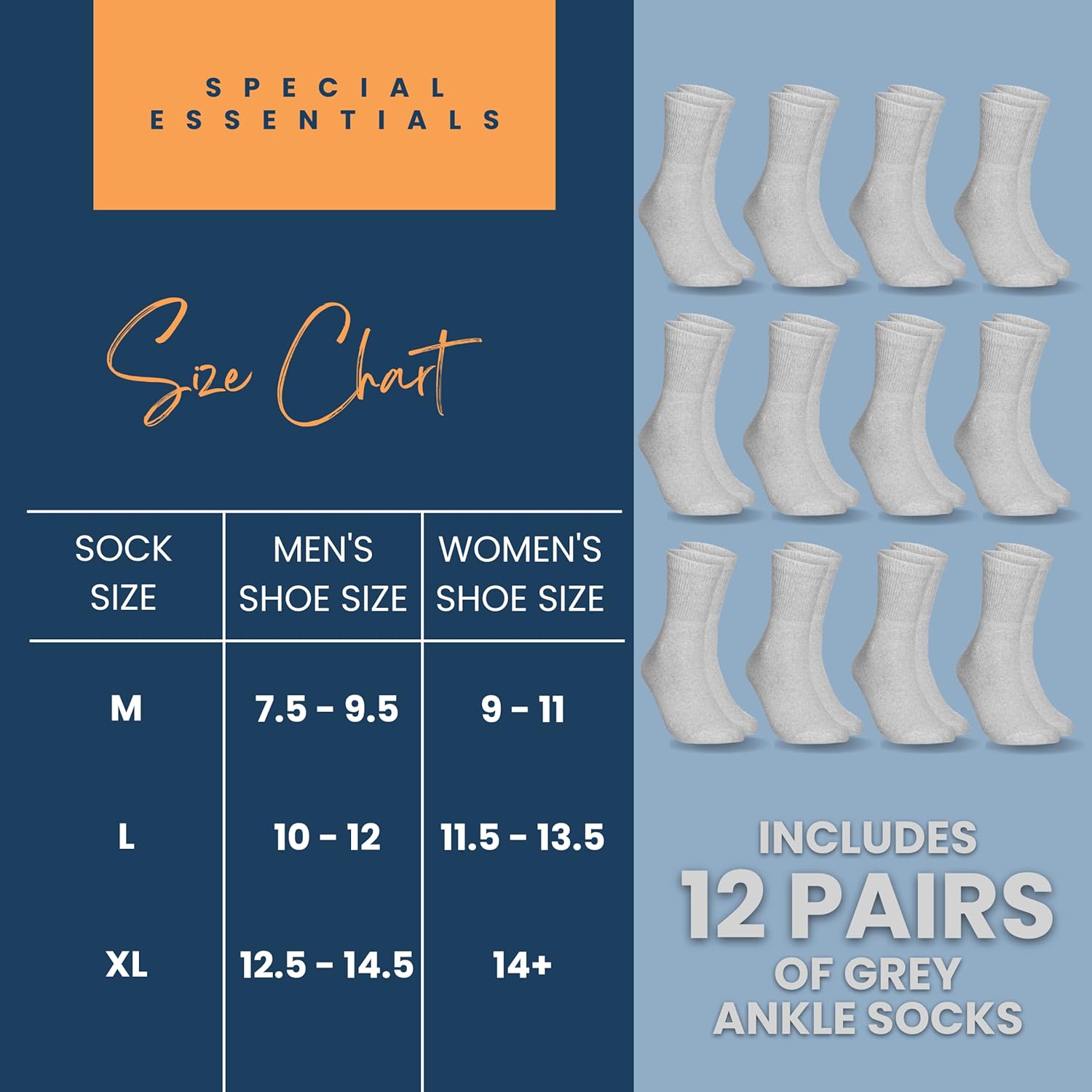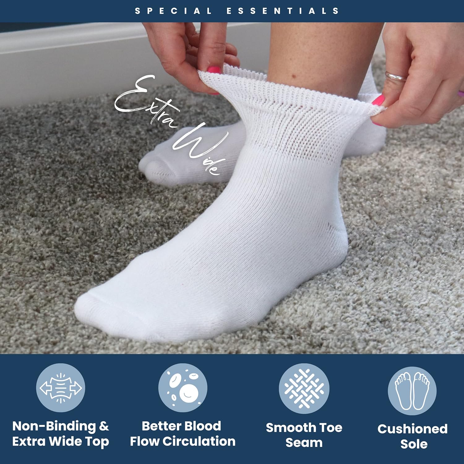 Special Essentials 12 Pairs Cotton Diabetic Ankle Socks - Non-Binding With Extra Wide Top For Men and Women