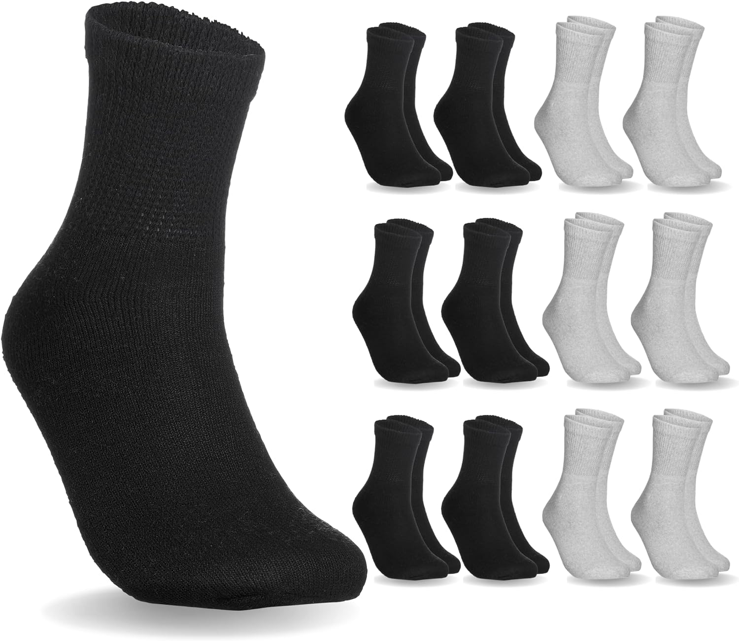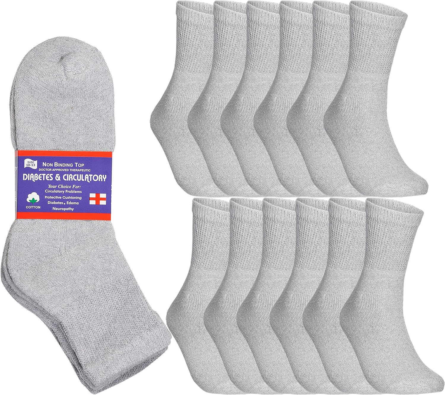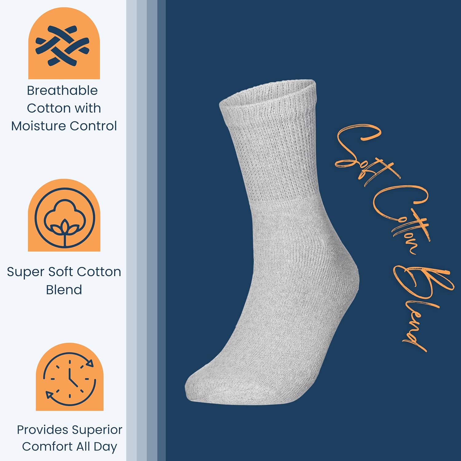 Special Essentials 12 Pairs Cotton Diabetic Ankle Socks - Non-Binding With Extra Wide Top For Men and Women