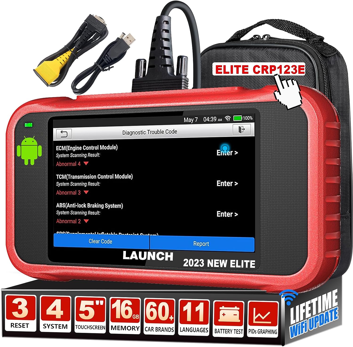 2023 Newest OBD2 Scanner LAUNCH CRP123E ELITE,ABS SRS Transmission Engine Scan Tool with 3 Reset,Throttle Relearn/Oil Reset/SAS Calibration,Lifetime Free WiFi Update (Value $2000),Battery Test,AutoVIN