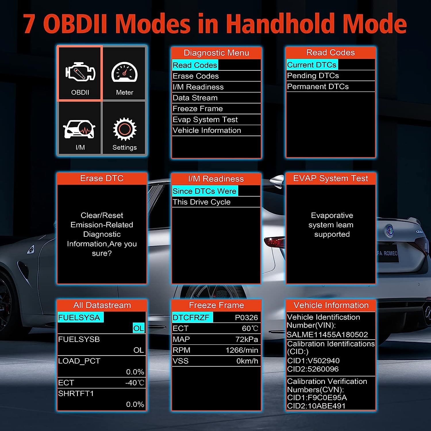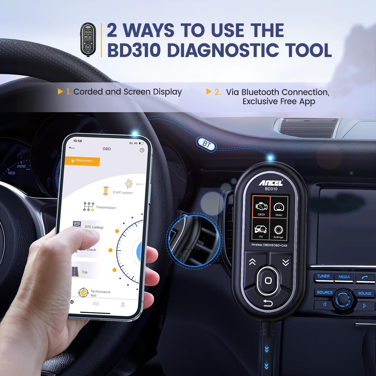 • MULTIFUNCTIONAL CONNECTION: ANCEL BD310 is a unique OBD-II scanner. it can be used in 3 different ways: not only can as a handheld connected to the car's OBD-II port; but also connected to a all mobile phone or the tablet by wirelessly bluetooth 5.0 ; and more ingeniously can as a supplemental instrument panel display. It comes with a heater vent mounting kit and a magnetic back plate, can be used as an auxiliary instrument in the car to monitor such as engine speed or battery voltage.