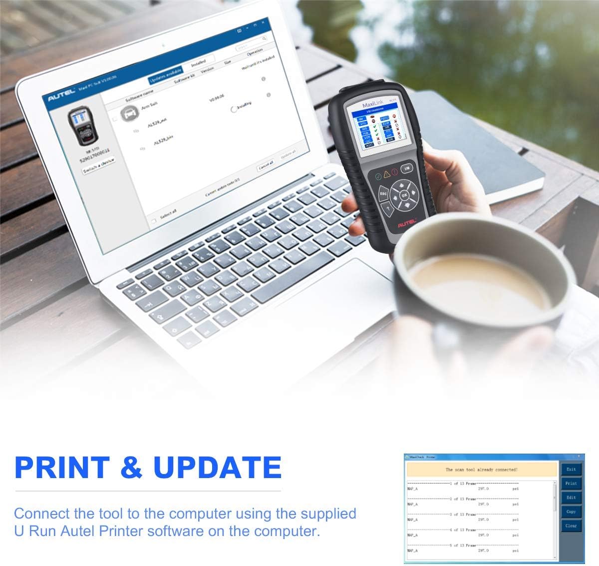 • 🔥【Lifetime Free Updates & Print Data】Autel AL519 Portable Diagnostic Scan Tool comes with Lifetime Free Updates & 12-Month Warranty & 30-Day Free Return/ Replacement & 24/7 Tech Support. You can download the newest software anytime. Besides, the Print Data function allows printing out diagnostic data recorded by the scan tool or customized test reports by connecting the scan tool to a PC or laptop with the USB cable supplied. Any questions, welcome to 💌 immoautel @ outlook . com💌.