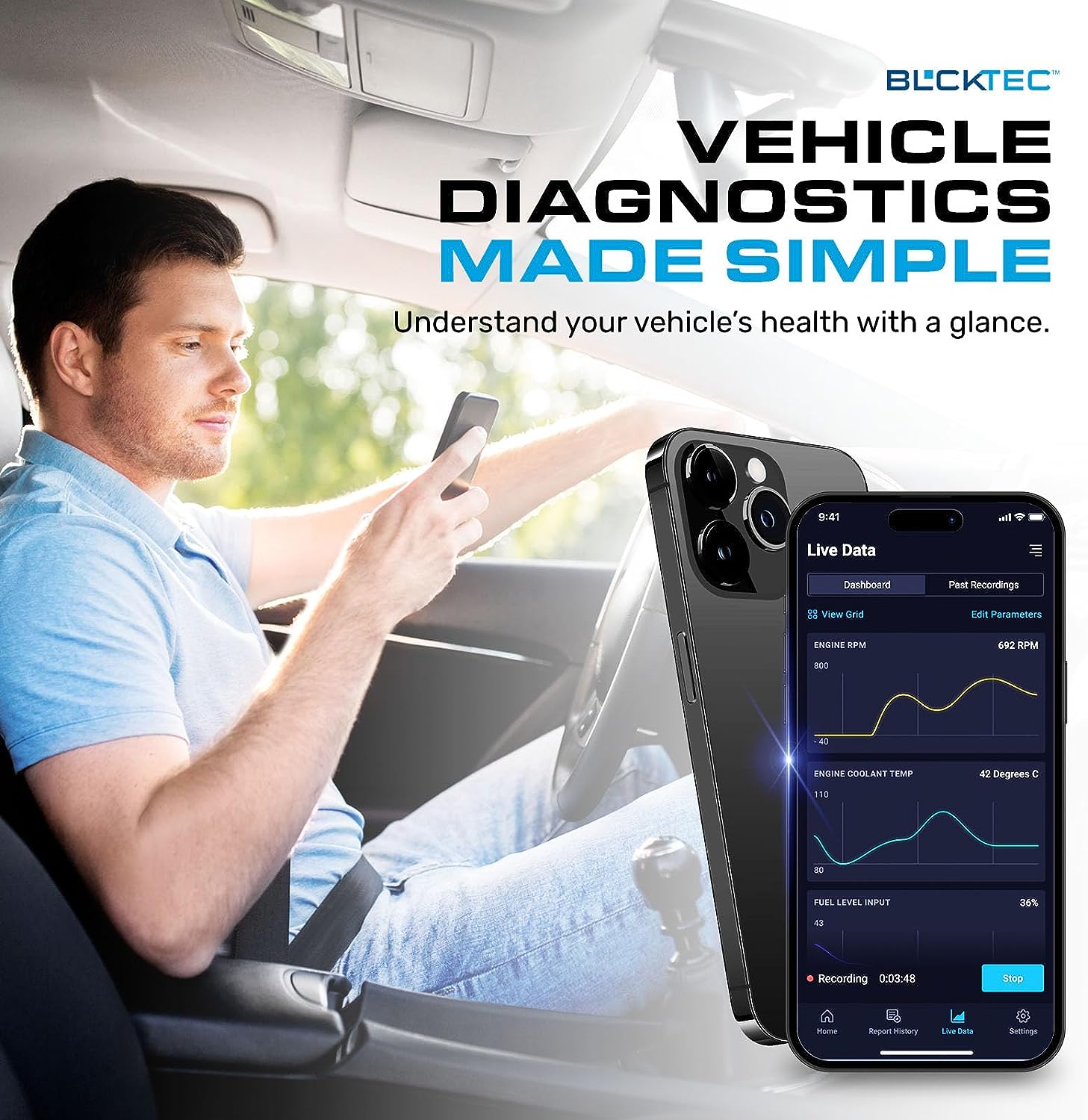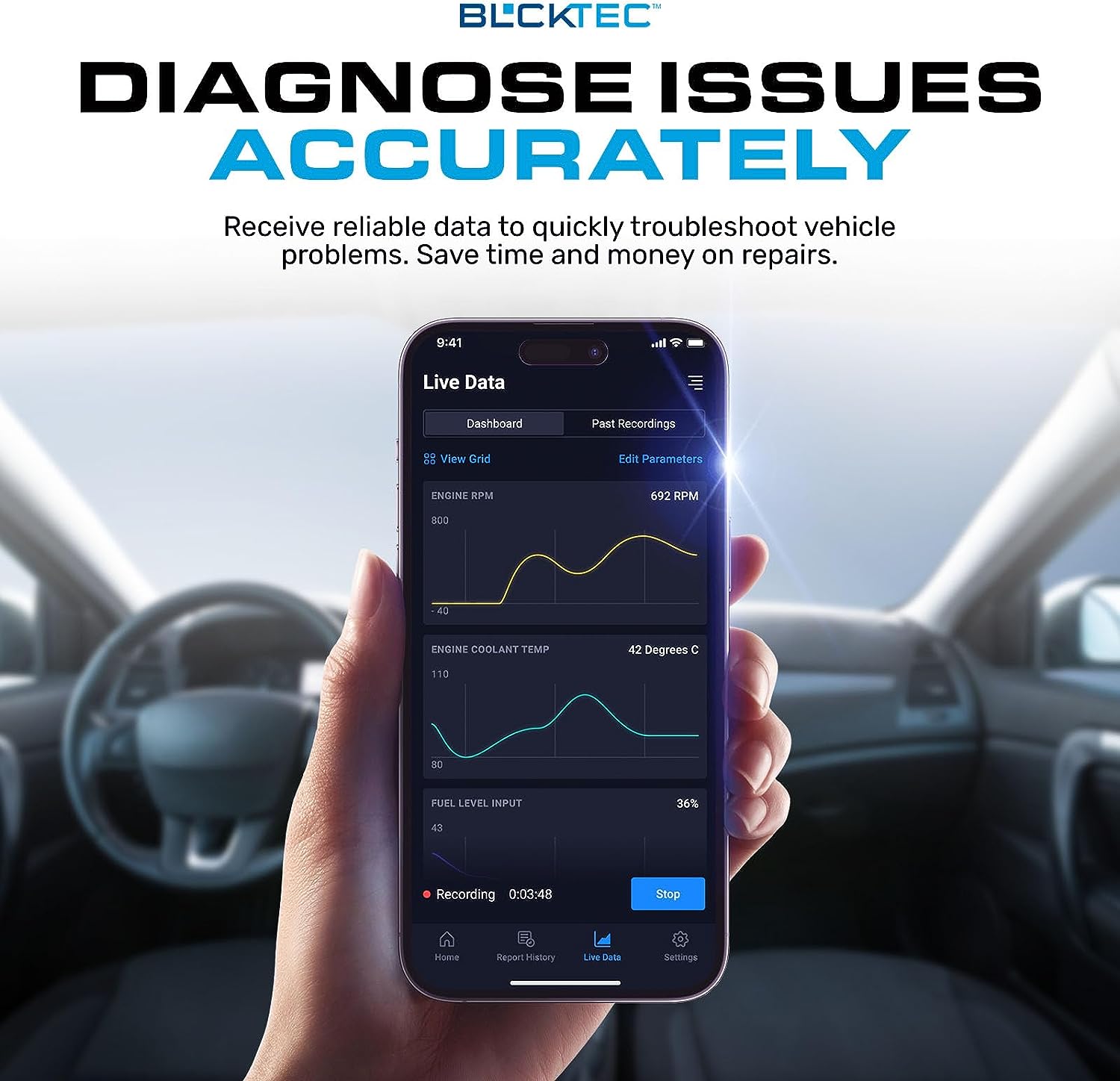 BLCKTEC 410 Bluetooth OBD2 Scanner Diagnostic Tool - Car Diagnostic Scanner for All Cars OBDII Compatible - Check Engine Light Code Reader with Reset - Comes with Premium OBD App On iOS & Android
