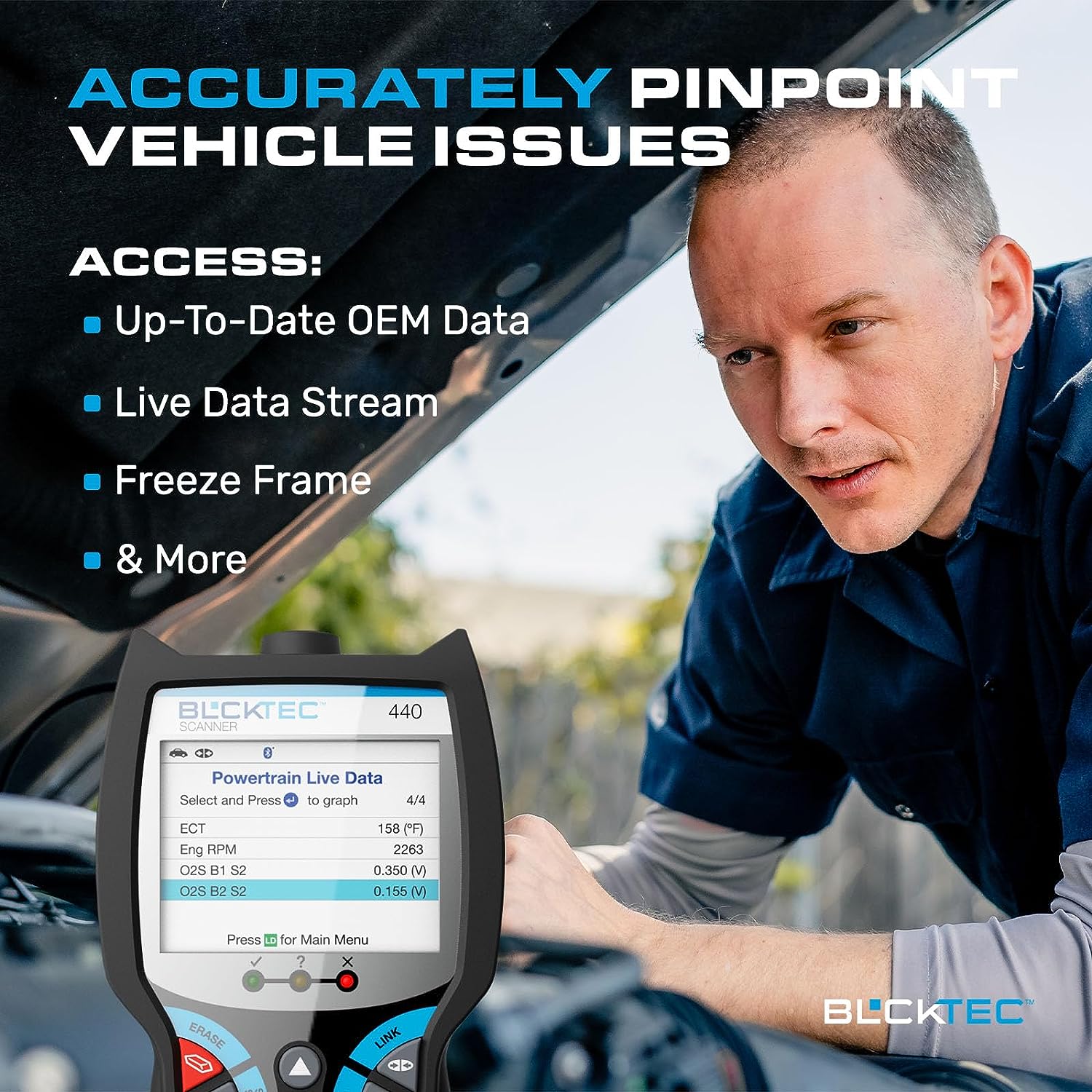 BLCKTEC 440 Bluetooth OBD2 Scanner Diagnostic Tool - Car Code Reader and Scanner for Car - Comes with Live Data - Battery/Charging System Test - Works for All OBD Compliant Cars 1996 & Newer