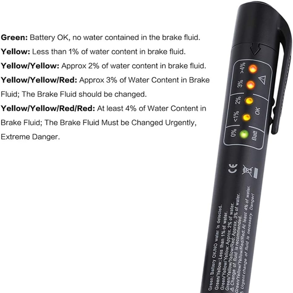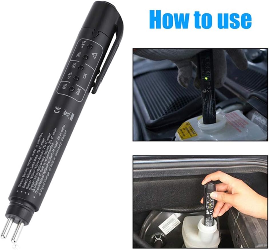 The tester can be used as a digital brake fluid tester suitable for determining brake fluid quality. Developed for professional use in astomotive repair shops and in servicing. Quality is tested and included on five LEDs in terms of "per cent of water in the brake fluid . "