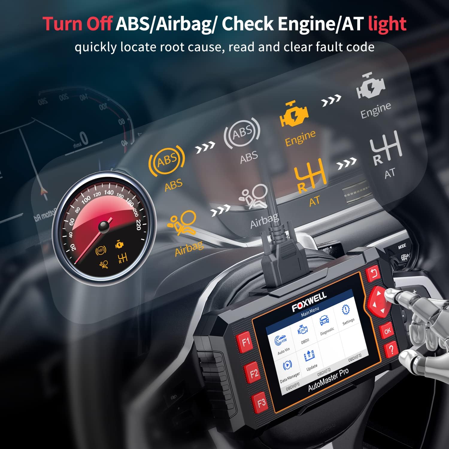 • 🍎【Affordable】+【Reliable Car Health Monitor】 Will you be confused what happen when the warning light of abs/srs/transmission/check engine flashes? Instead of taking your cars to dealership, this foxwell scanner will help you do a thorough scanning and detection for your cars and pinpoint the root cause, which saves you time and money. It will t-urn off the warning light car after the problem is fixed.👉TIPS: Airbag crash/collision data can NOT be cleared even you replace the new airbag.