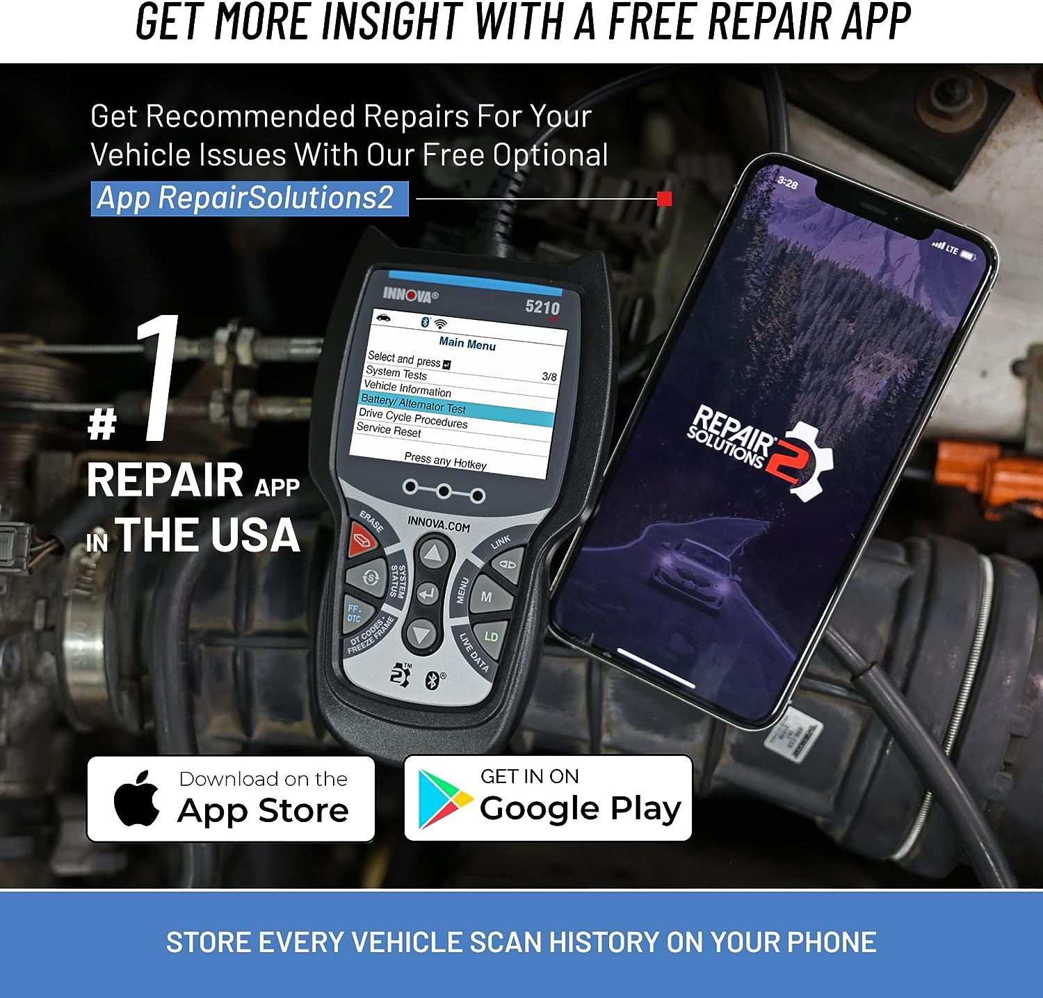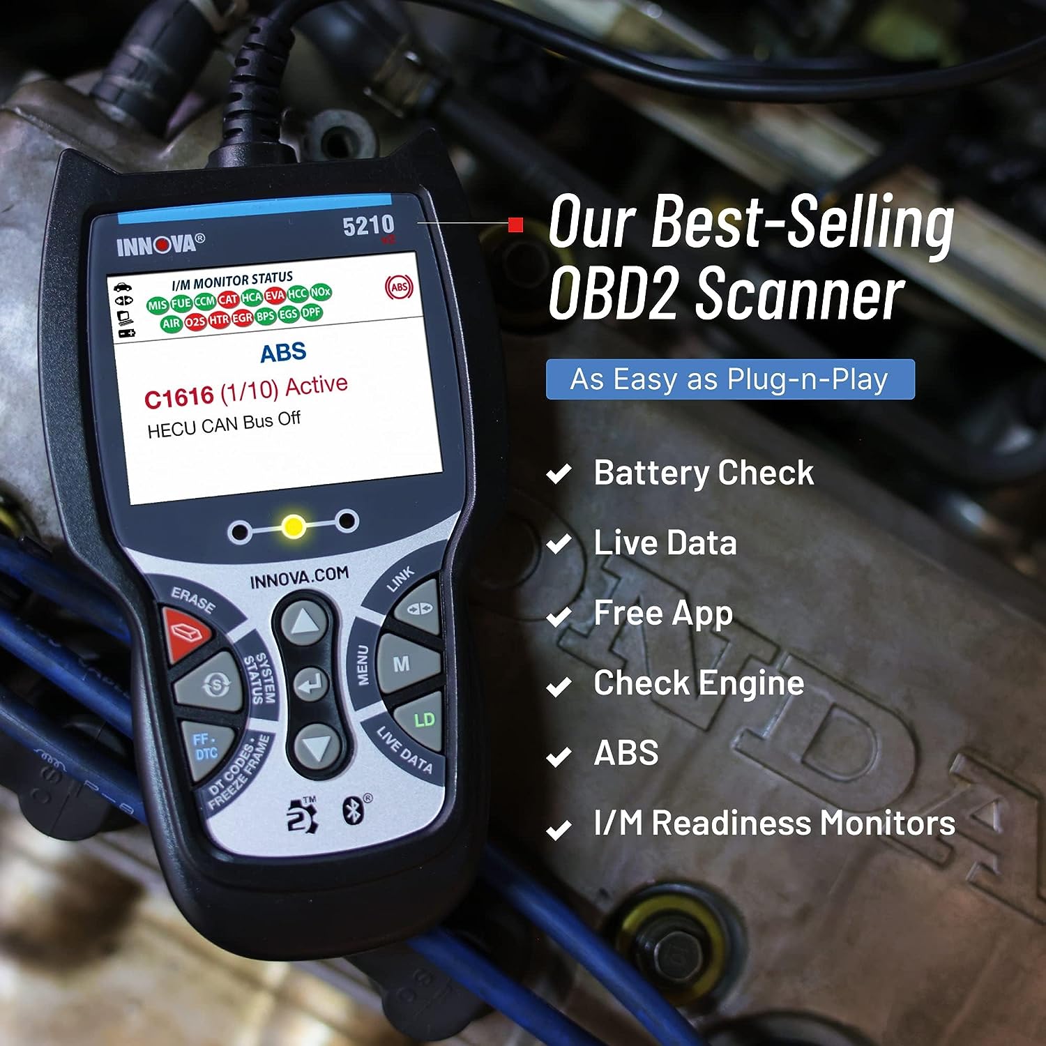 • LIVE DATA FOR MORE ACCURATE DIAGNOSIS - With the Innova 5210 OBD2 code reader live data you can see your vehicle’s essential information like RPM, speed, and oil temperature in real-time to help identify and correct problems. You can also check and test your battery and alternator, so you know whether you need to bring your car to a technician or not.