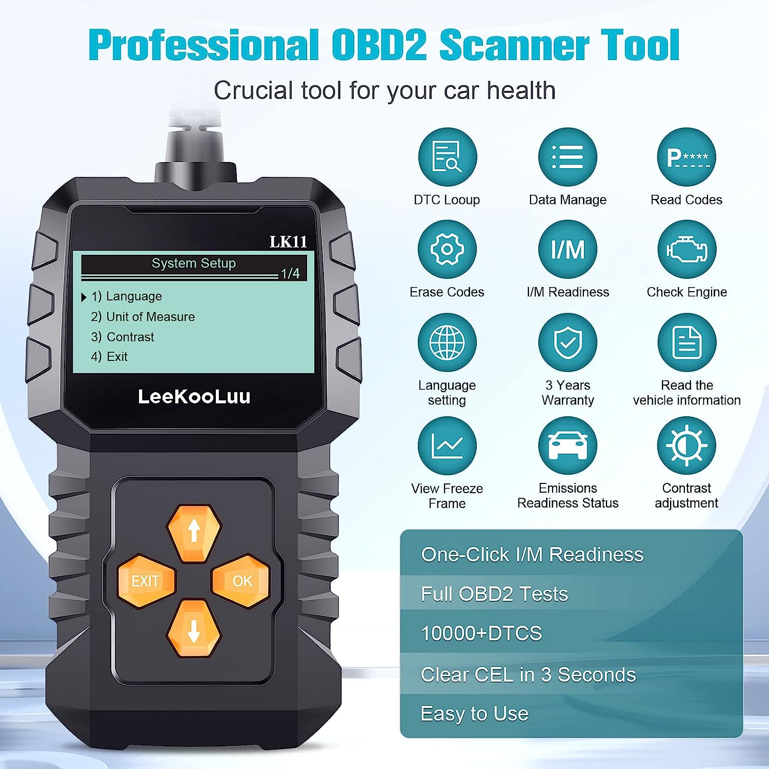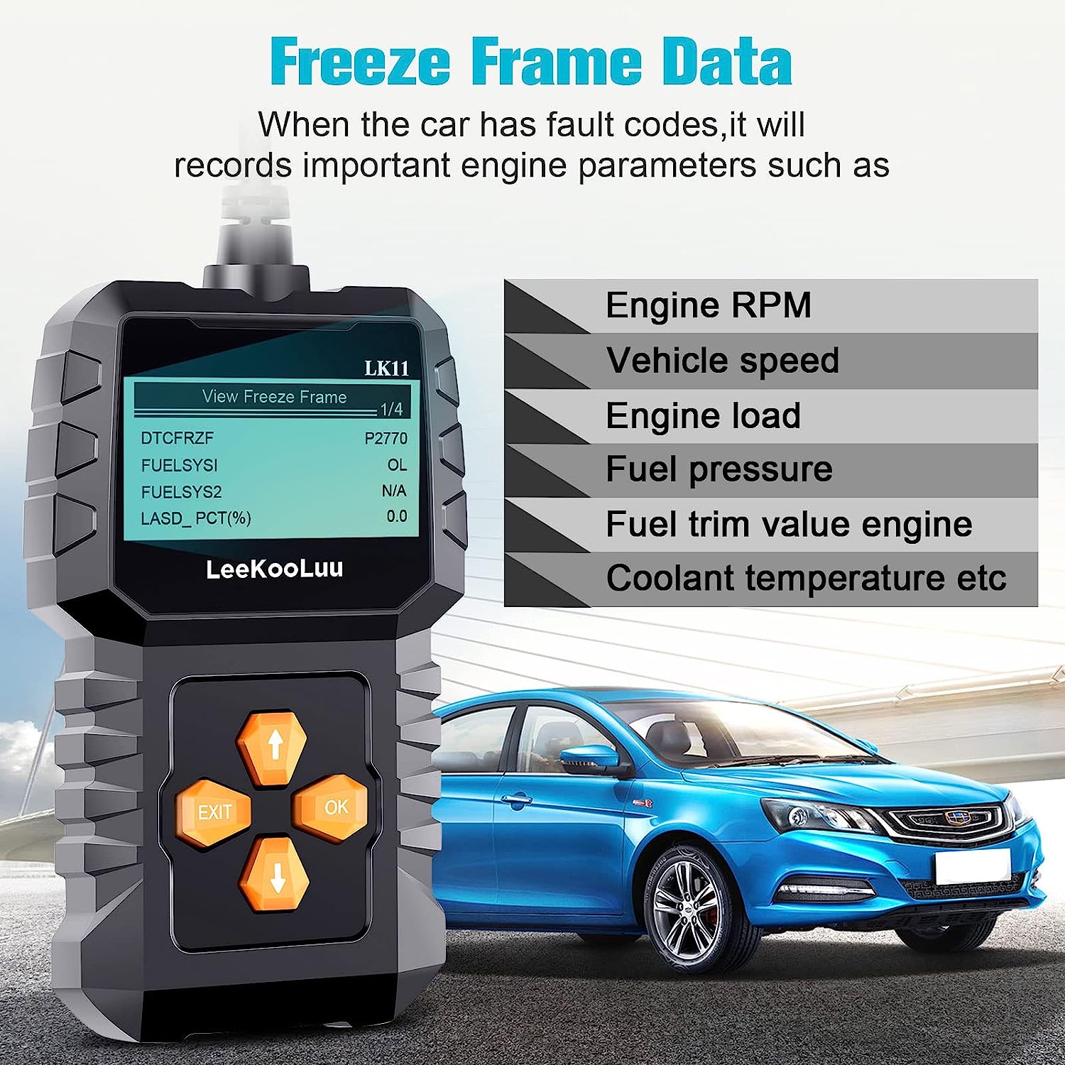 OBD2 Scanner Clear Reset Engine Alert Code - Plug and Play Easy to Setup Use Professional Code Reader Scan Diagnostic for Cars Since 1996 with Freeze Frame/I/M Readiness - LeeKooLuu LK11