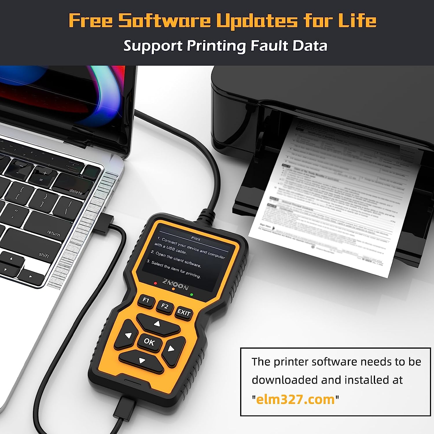 • ✔Enhanced OBD2 Scanner Diagnostic Tool: Live data and DTC replay combined with printing function, you can connect it to a computer for fault data printing, prevent auto repair shops from charging randomly, save money and time. ZM201 obd scanner also comes with free-lifetime software updates, ensuring you always have the latest features and improvements.
