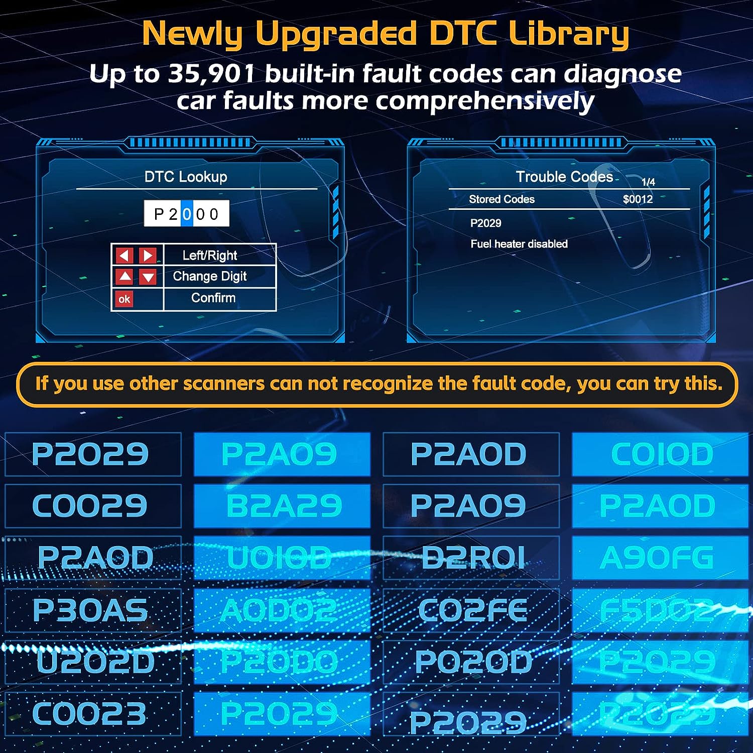 • ✔35,901 DTC Lookup: ZM201 car code reader built-in 35,901 DTCs, the old model obd2 usually only have 3,000-10,000. So the ZM201 car scanner has a huge advantage, which means that this obd2 scanner can better help diagnose and solve your vehicle faults. This is a great option if you want to replace or upgrade an existing car scanner.