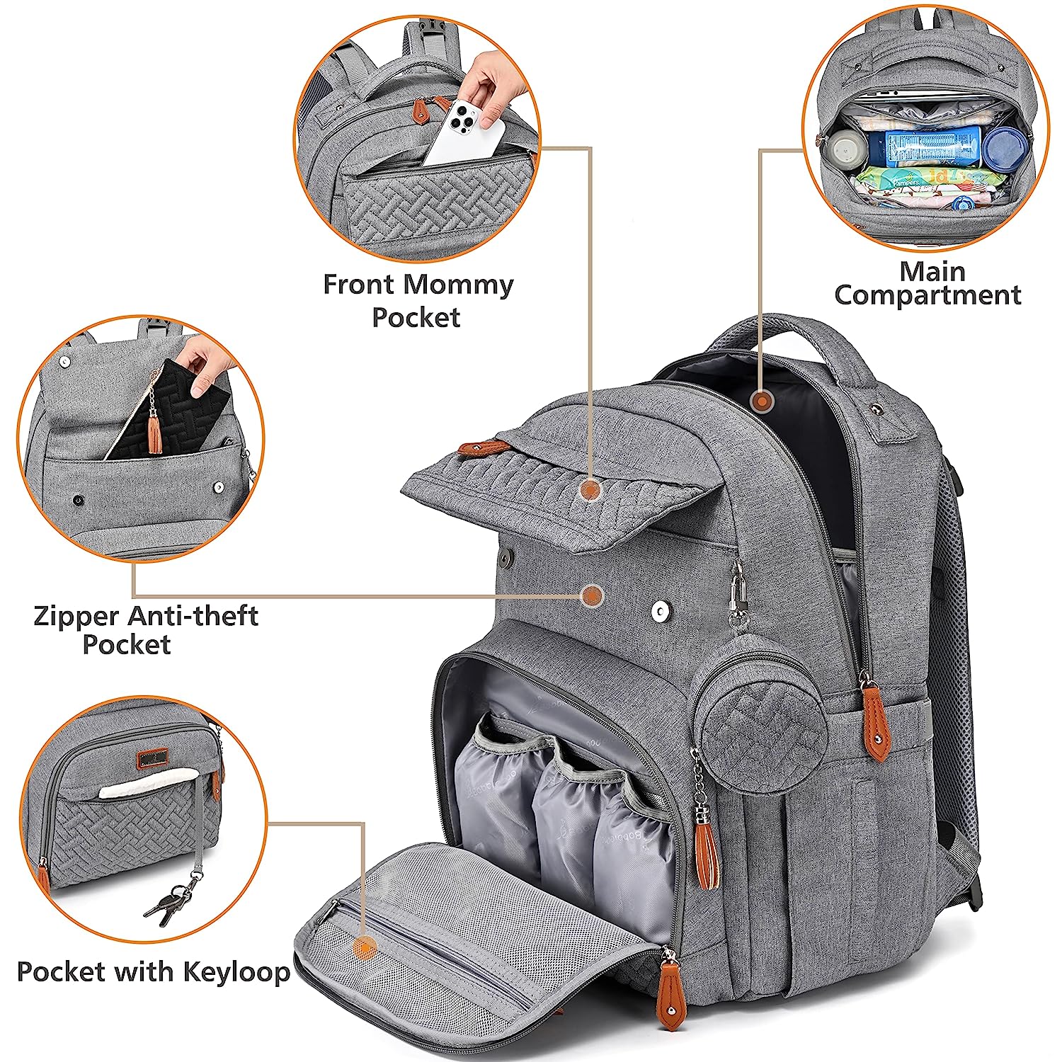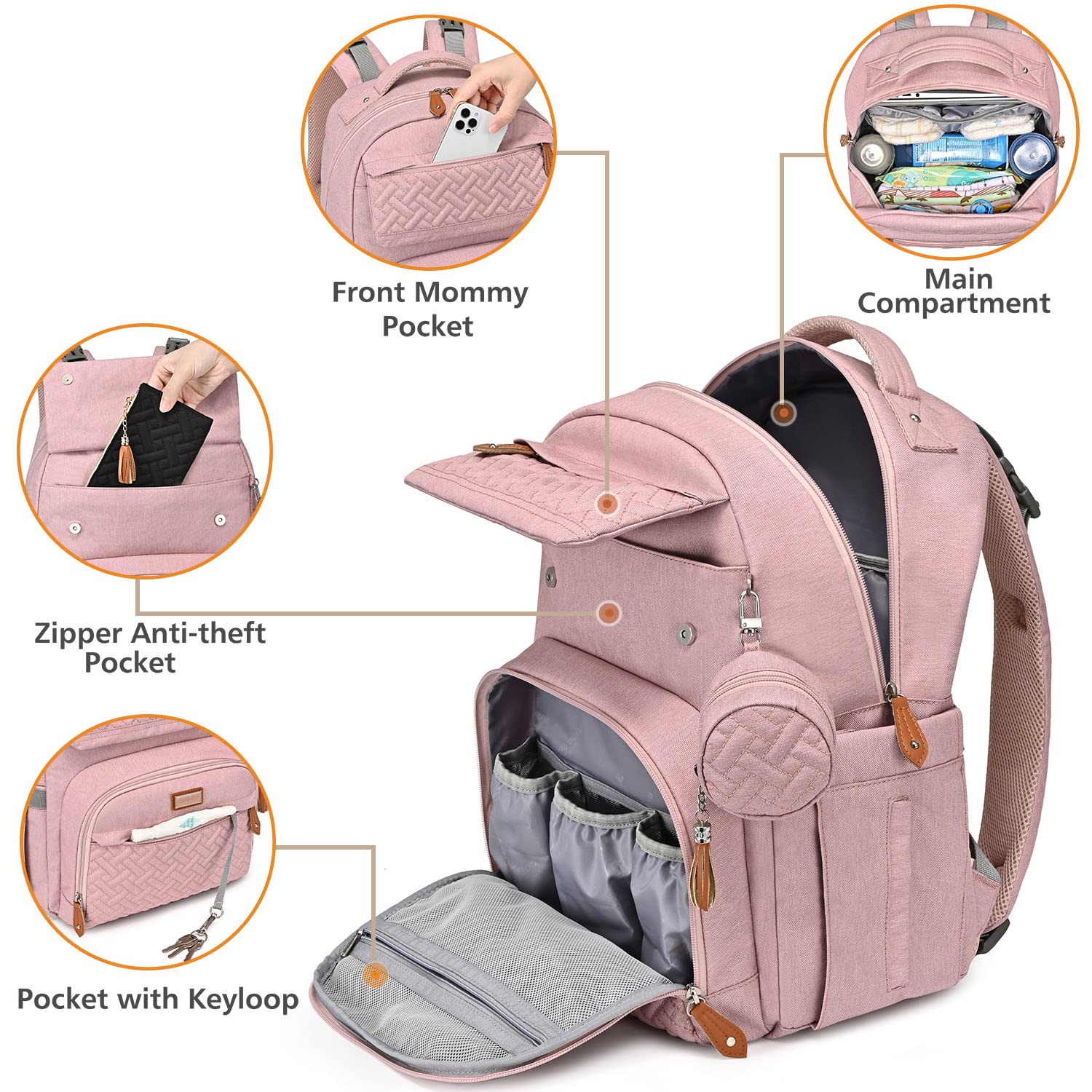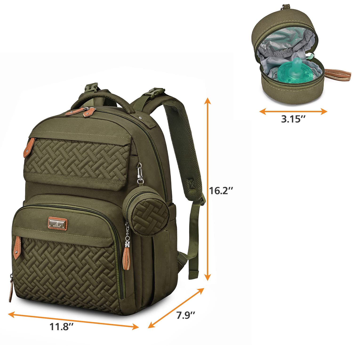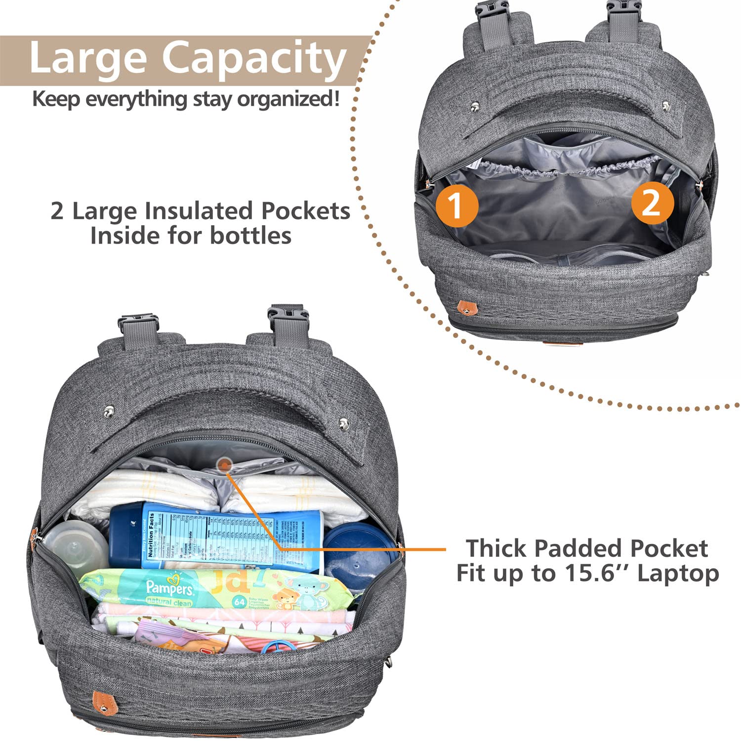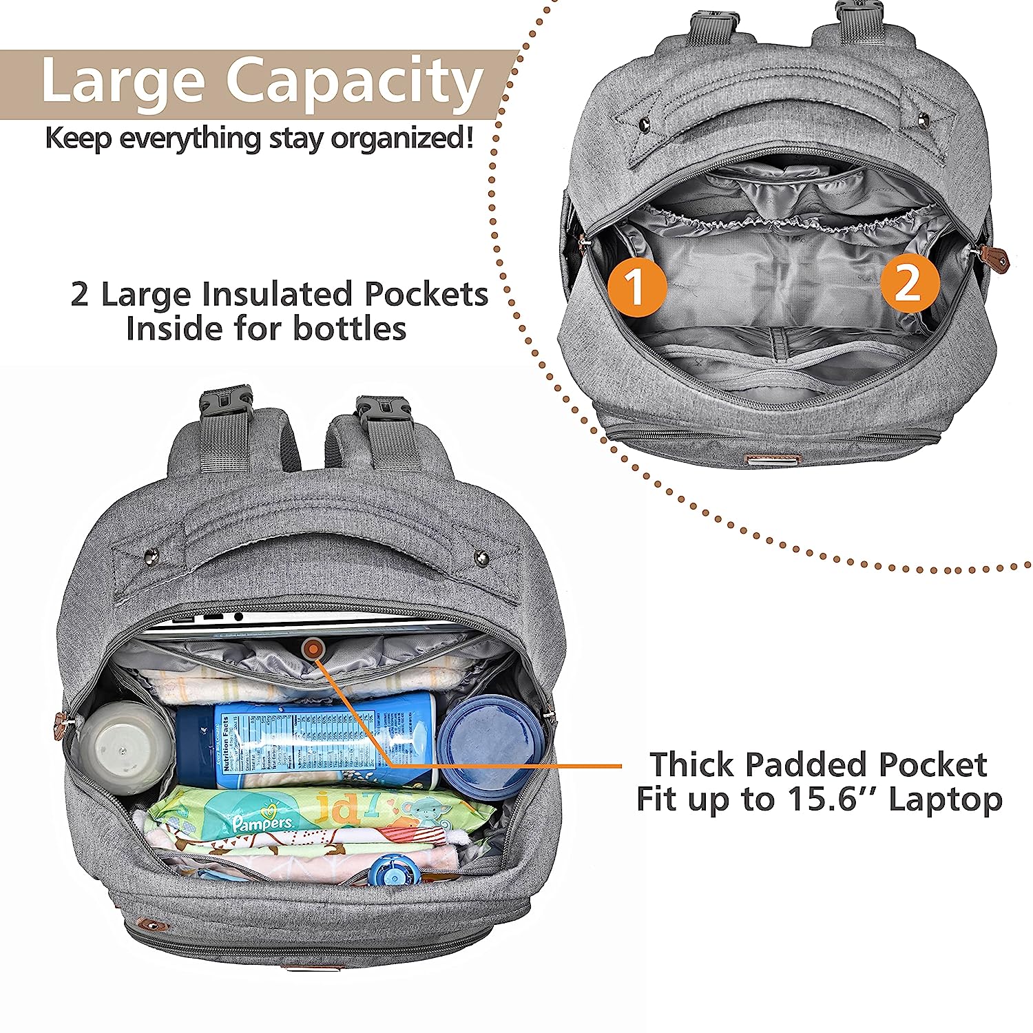 • Looks Great & Easy Organization - With a high-end fashion look, this normal size baby diaper backpack includes a main compartment and 16+ interior and exterior organizer pockets of varying sizes that will make it easy for Mommy & Daddy to stay organized. Five insulated pockets for keeping the bottle cold/warm. Makes a great addition to any baby registry!