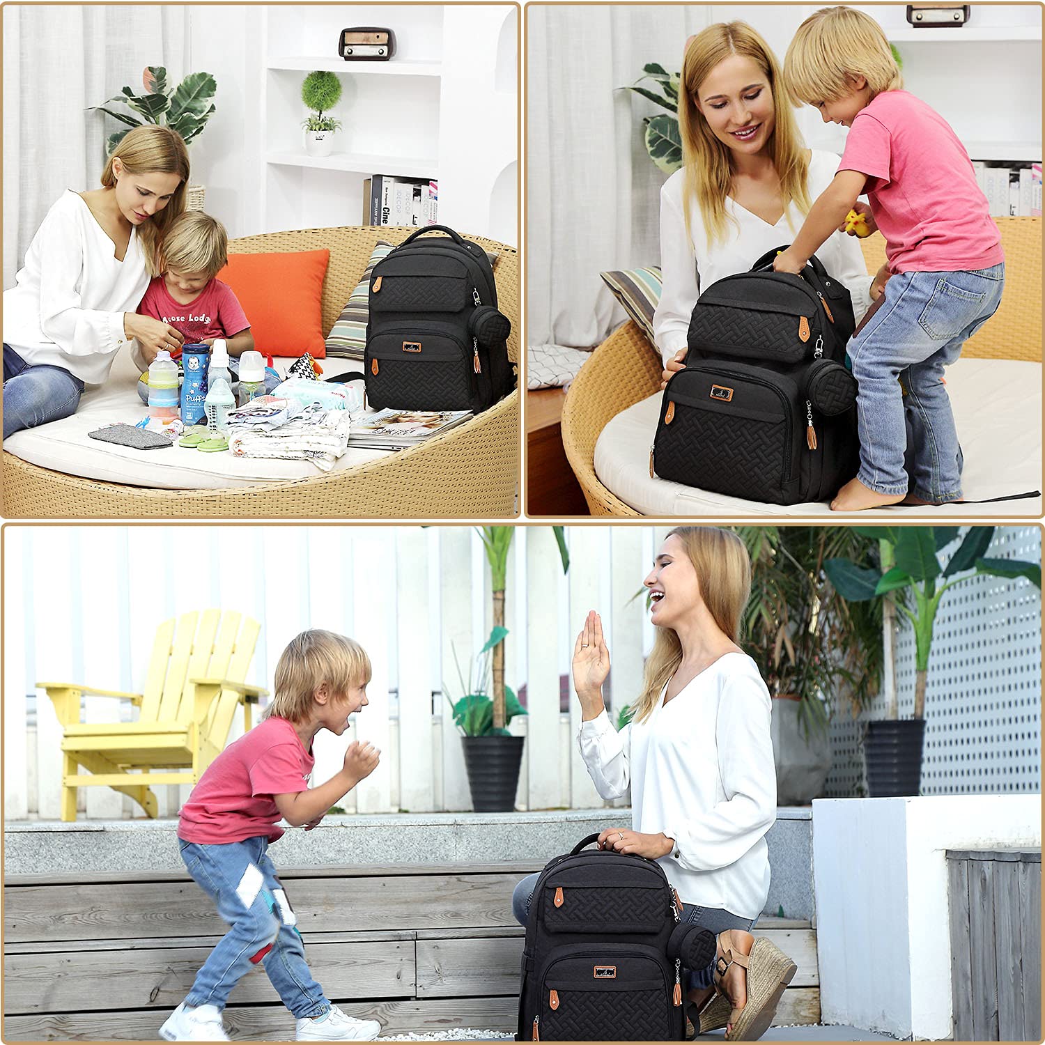 • Comfortable & Ergonomical - Our daily diaper bag backpack will be kind to your shoulders. Thick/wide cushioned shoulder straps and all sponge padded mesh back will distribute the load evenly on your shoulders and back when wearing for a long time. Also, the cushioned top handle is easy and comfortable to grab when moms/dads are on the go.