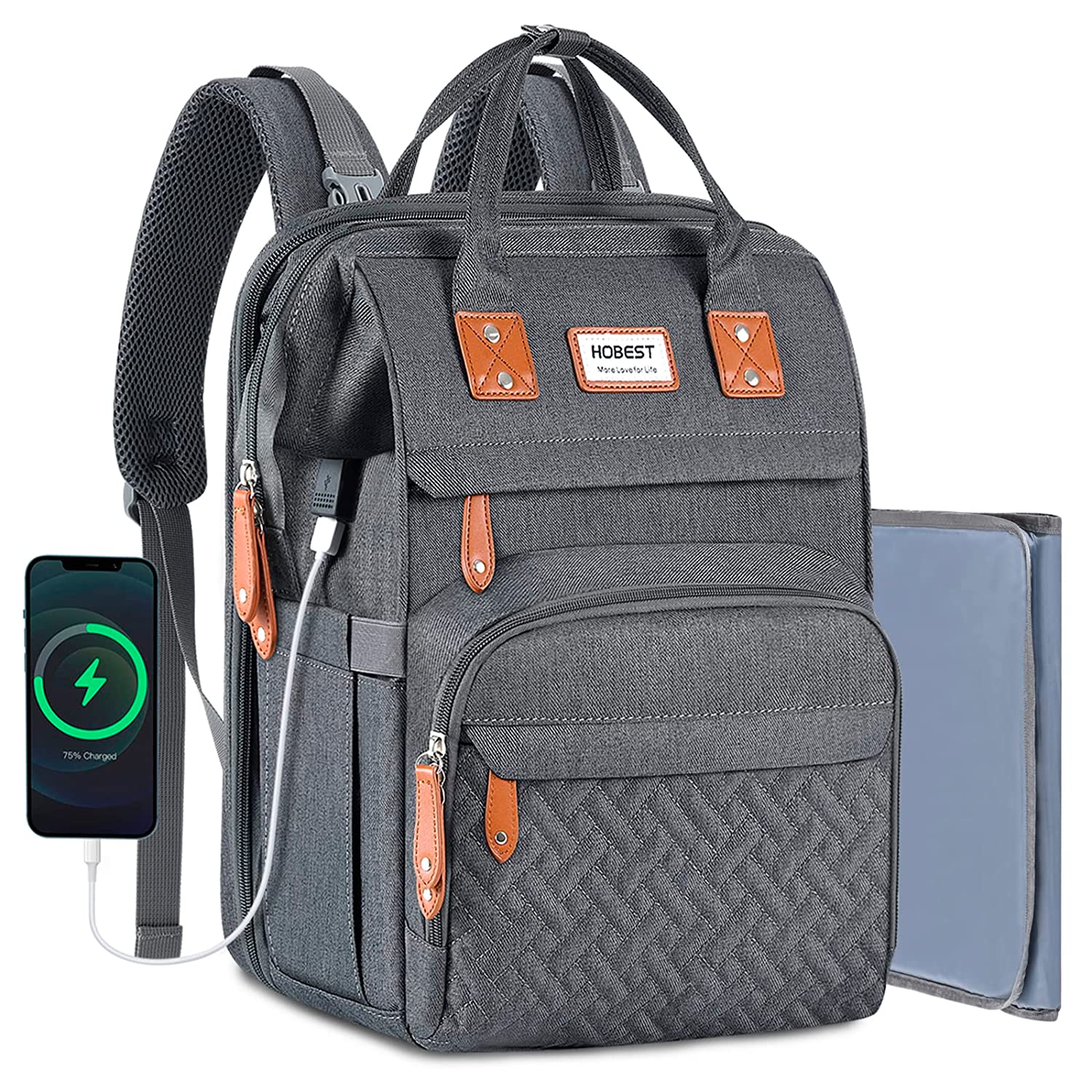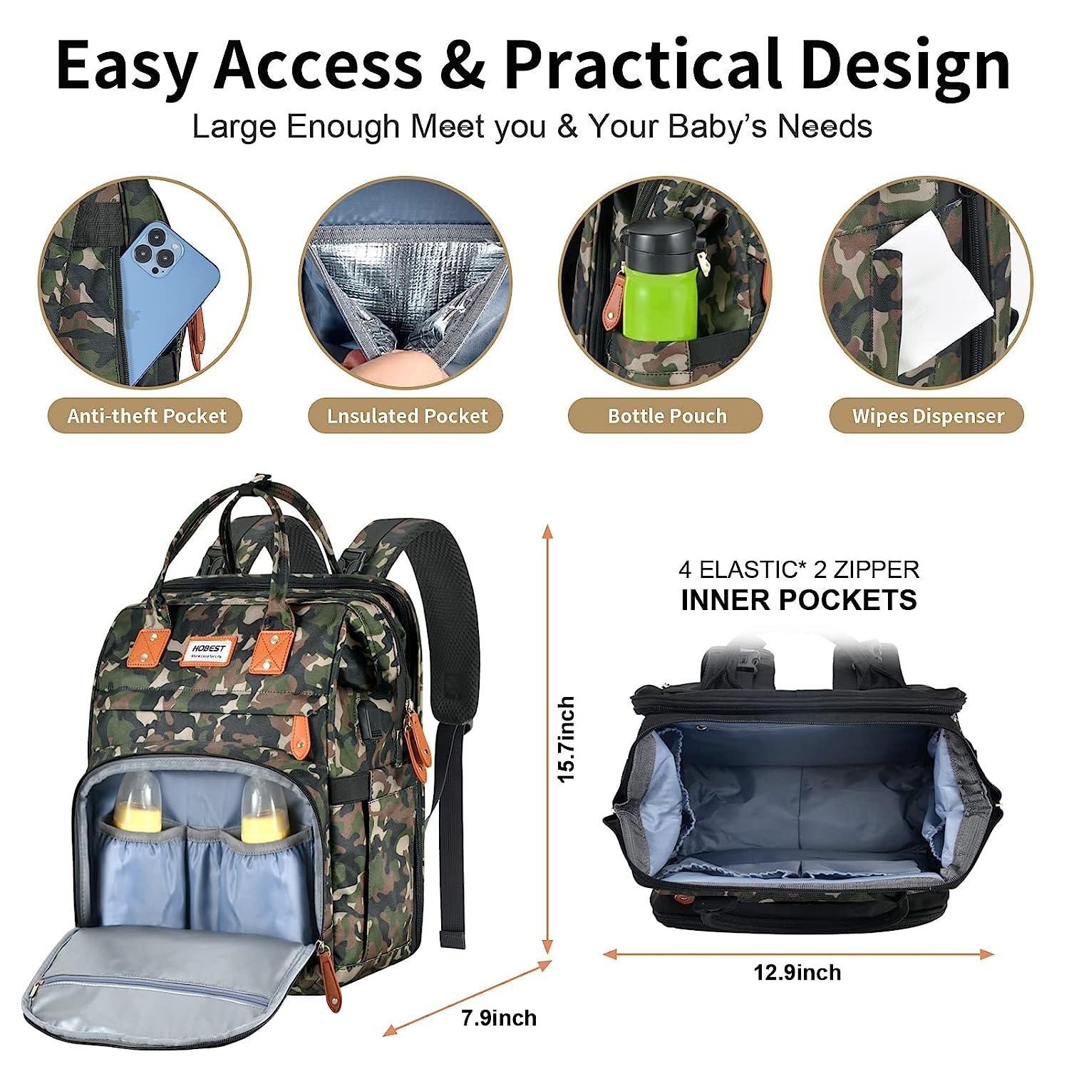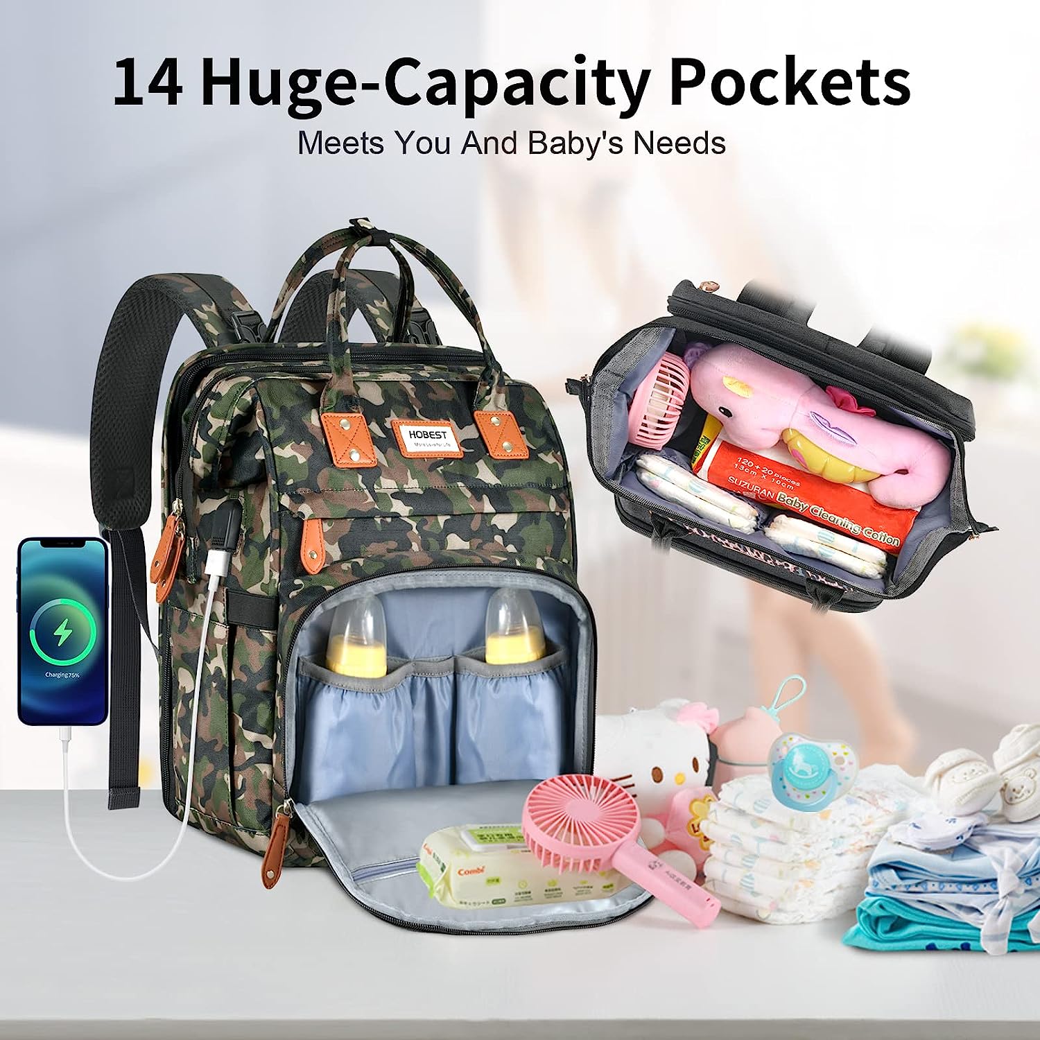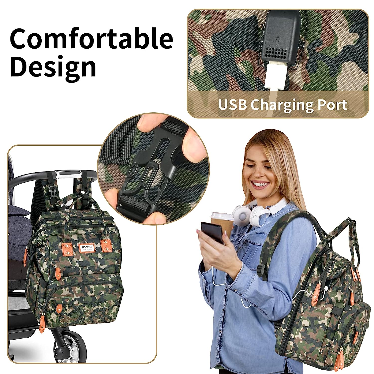 HOBEST Diaper Bag Backpack, Multifunction Large Travel Diaper Bag with Changing Pad and USB Charging Port for Moms Dads, Waterproof Unisex Baby Bag for Boys Girls, Baby Registry Search Shower Gifts