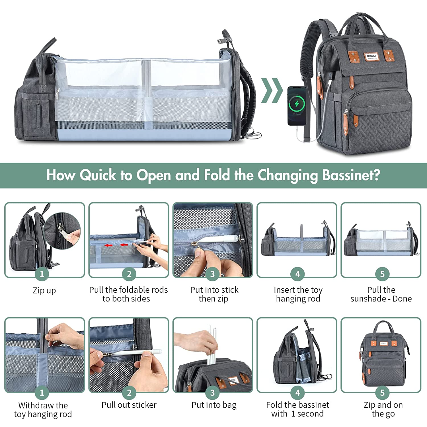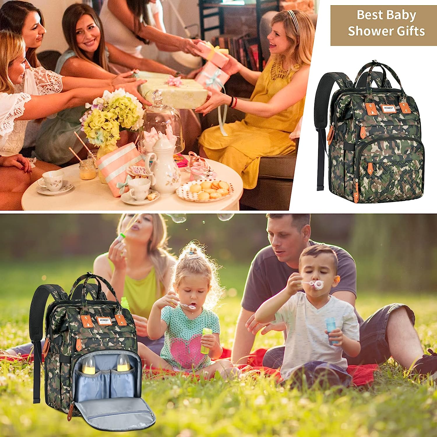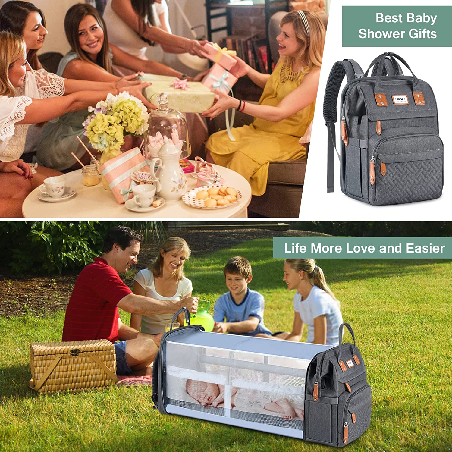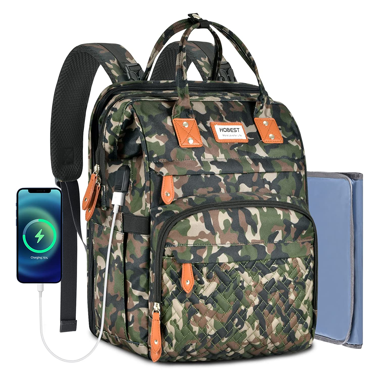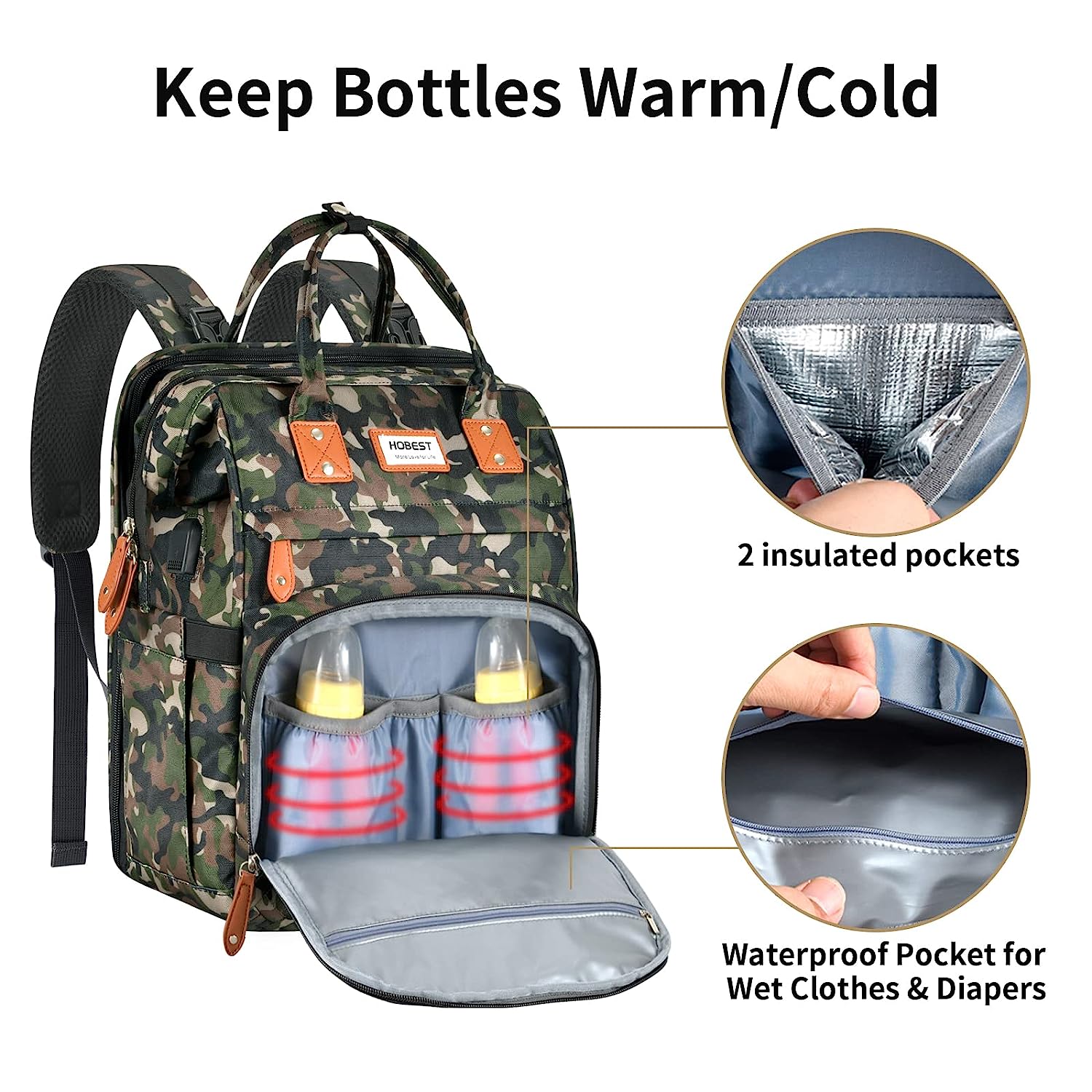 HOBEST Diaper Bag Backpack, Multifunction Large Travel Diaper Bag with Changing Pad and USB Charging Port for Moms Dads, Waterproof Unisex Baby Bag for Boys Girls, Baby Registry Search Shower Gifts