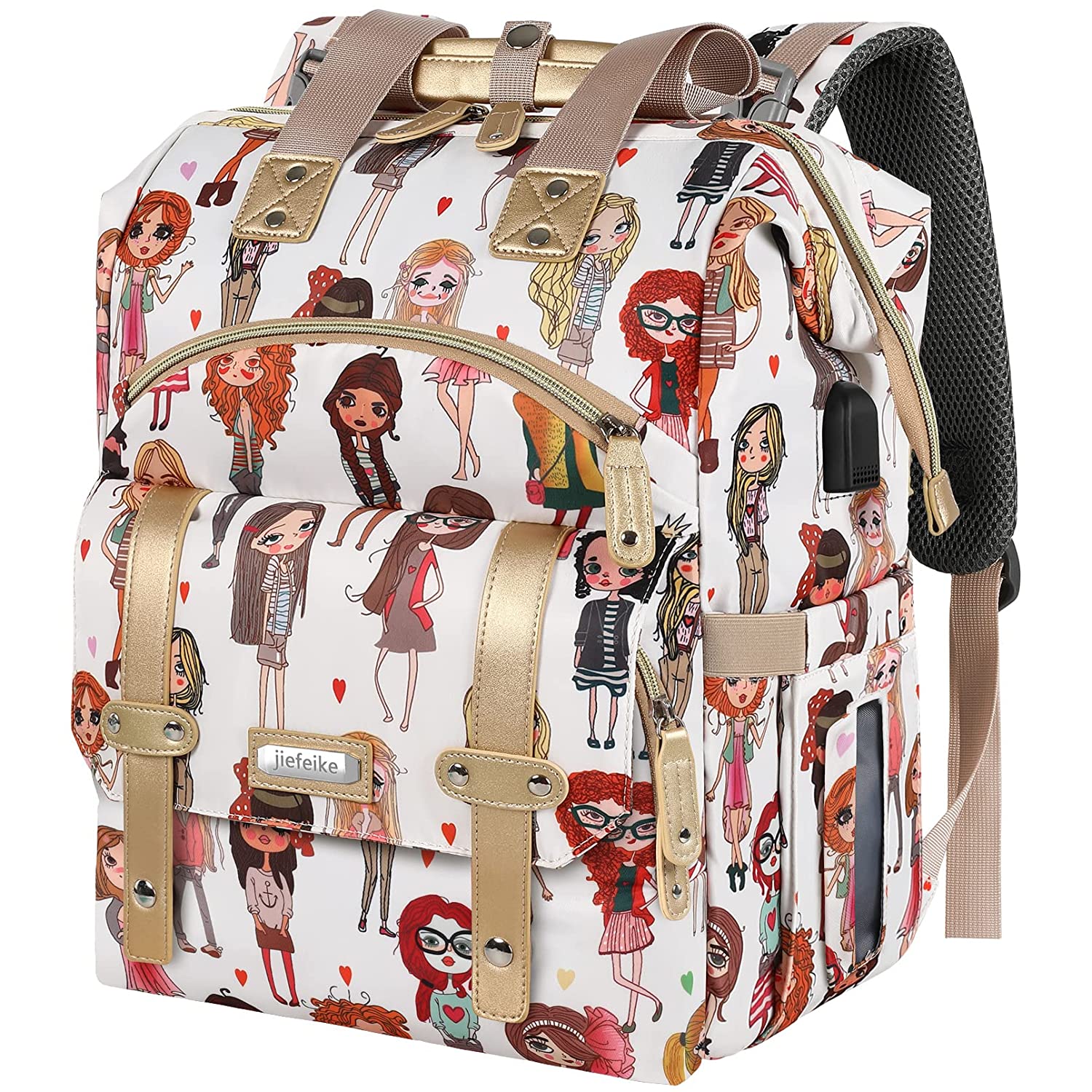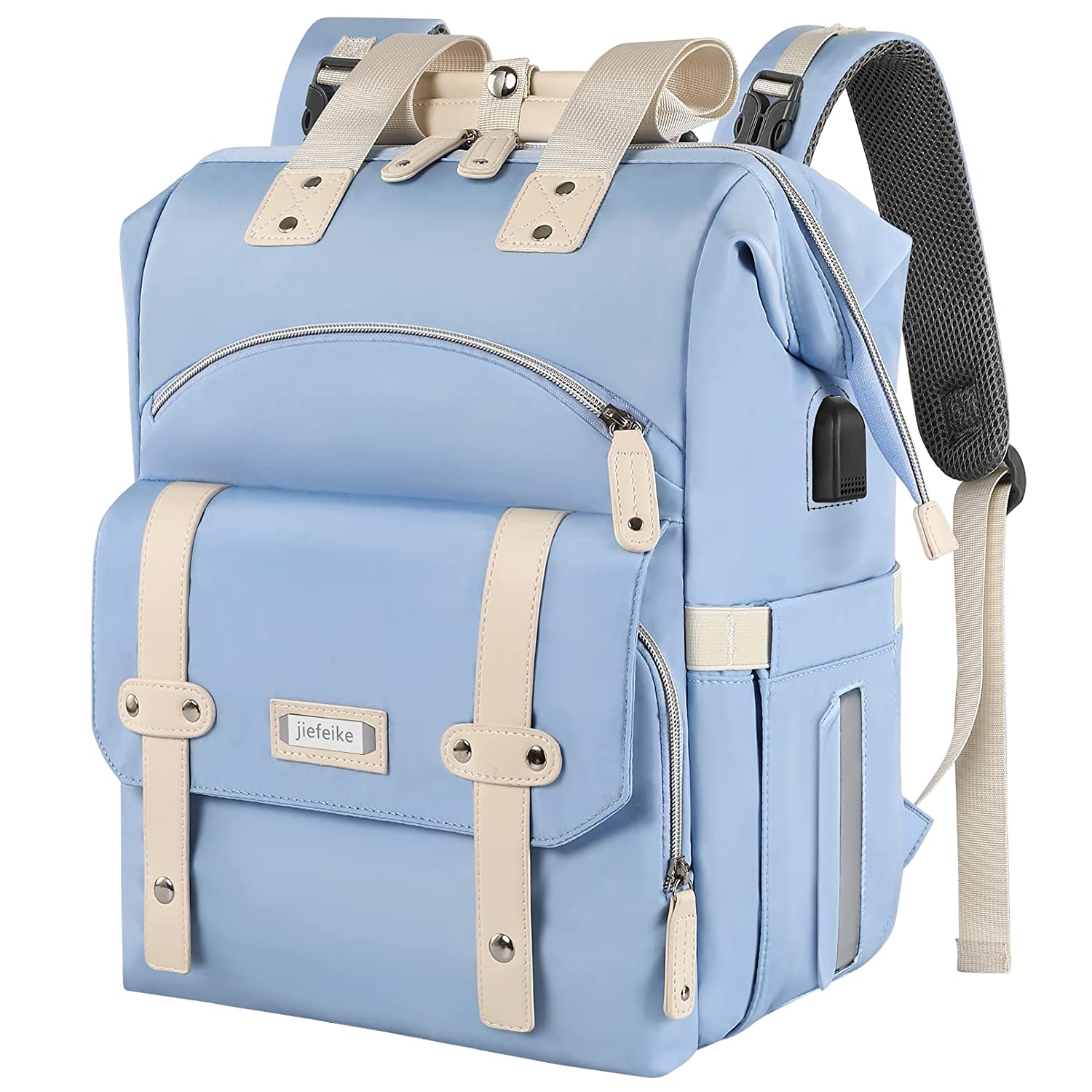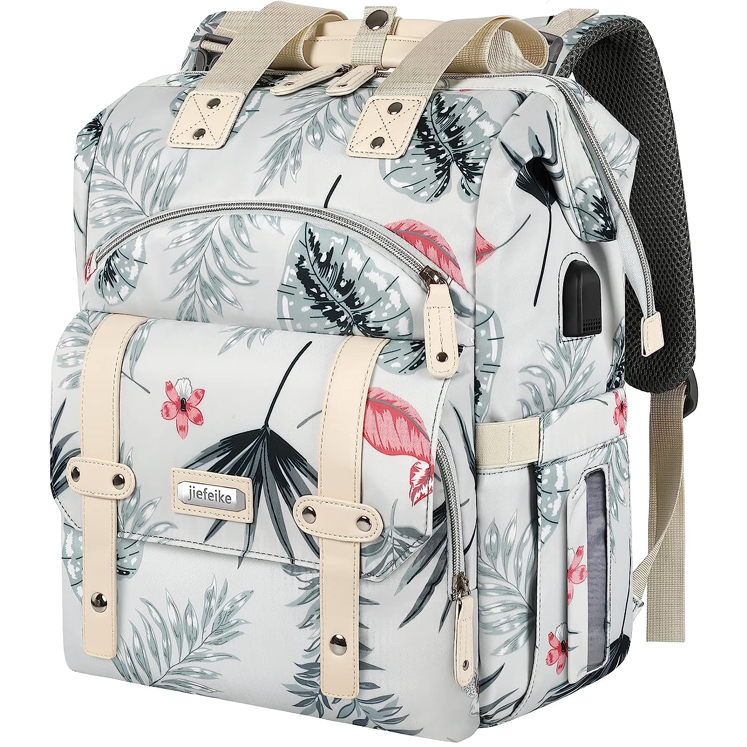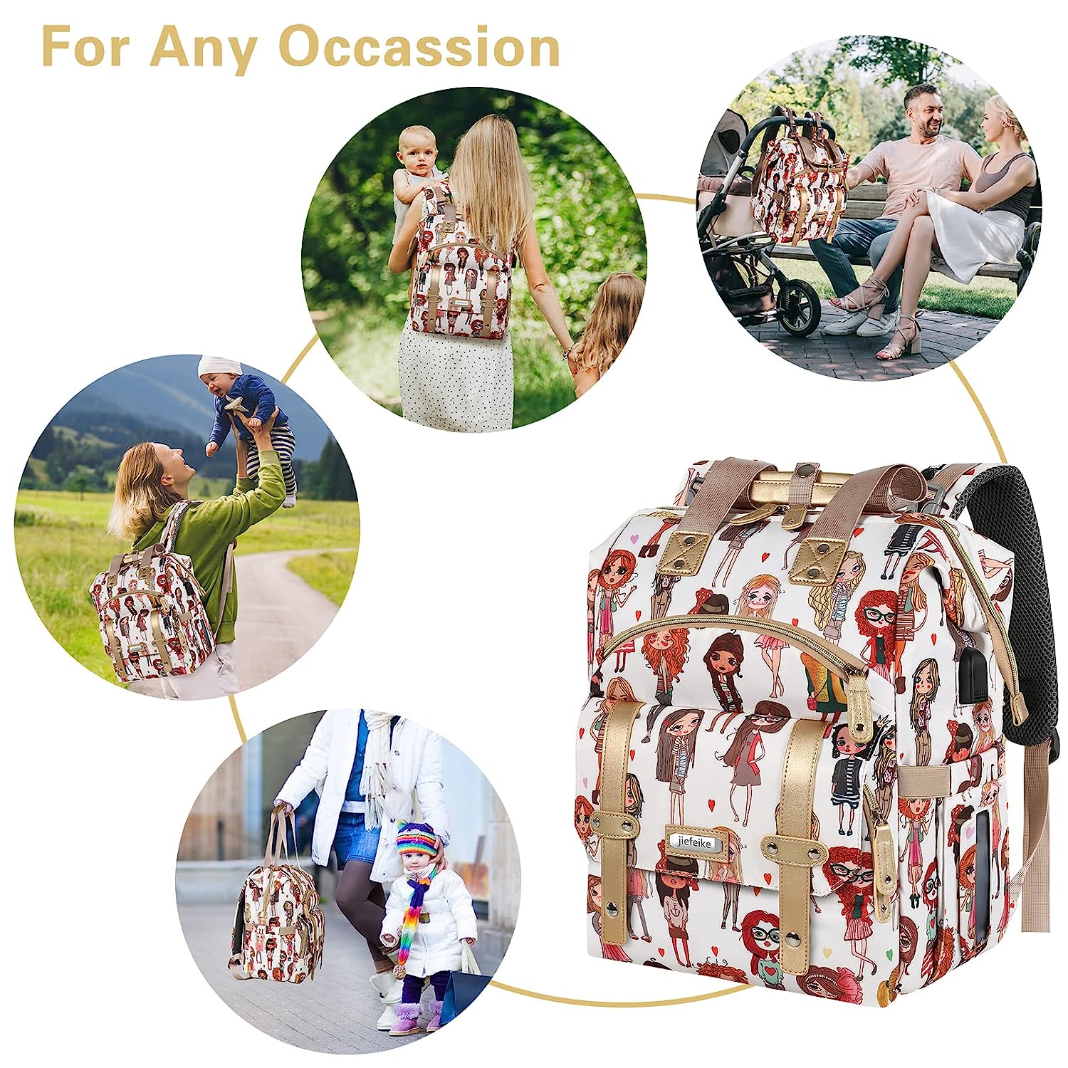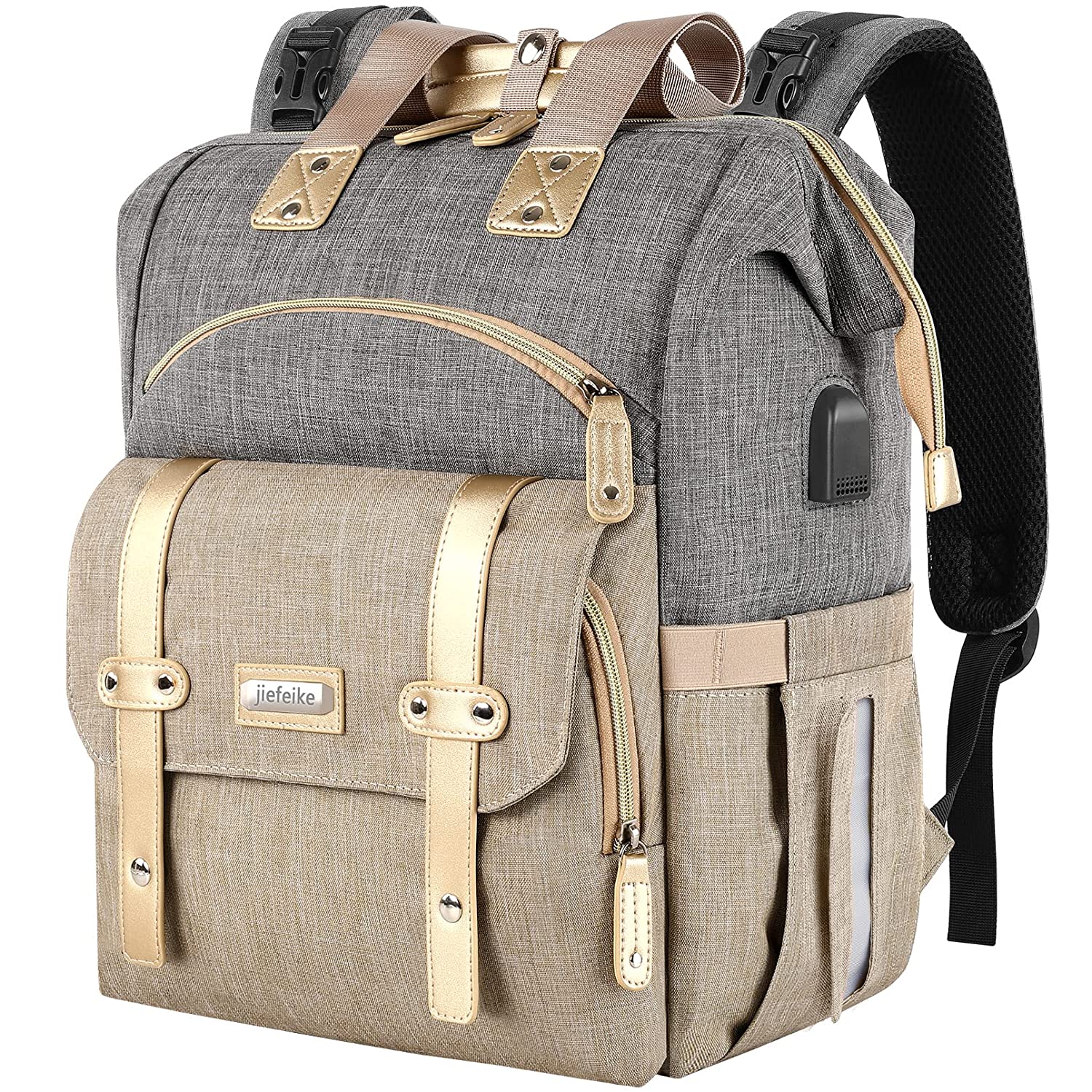 Jiefeike Diaper Bag Backpack,Baby Boys Girls Travel Backpack Diaper Bag for Dad Mom,Insulated Pockets Portable Pink Baby Nappy Bags with USB Charging Port,RFID Anti-Theft Pocket Stroller Straps