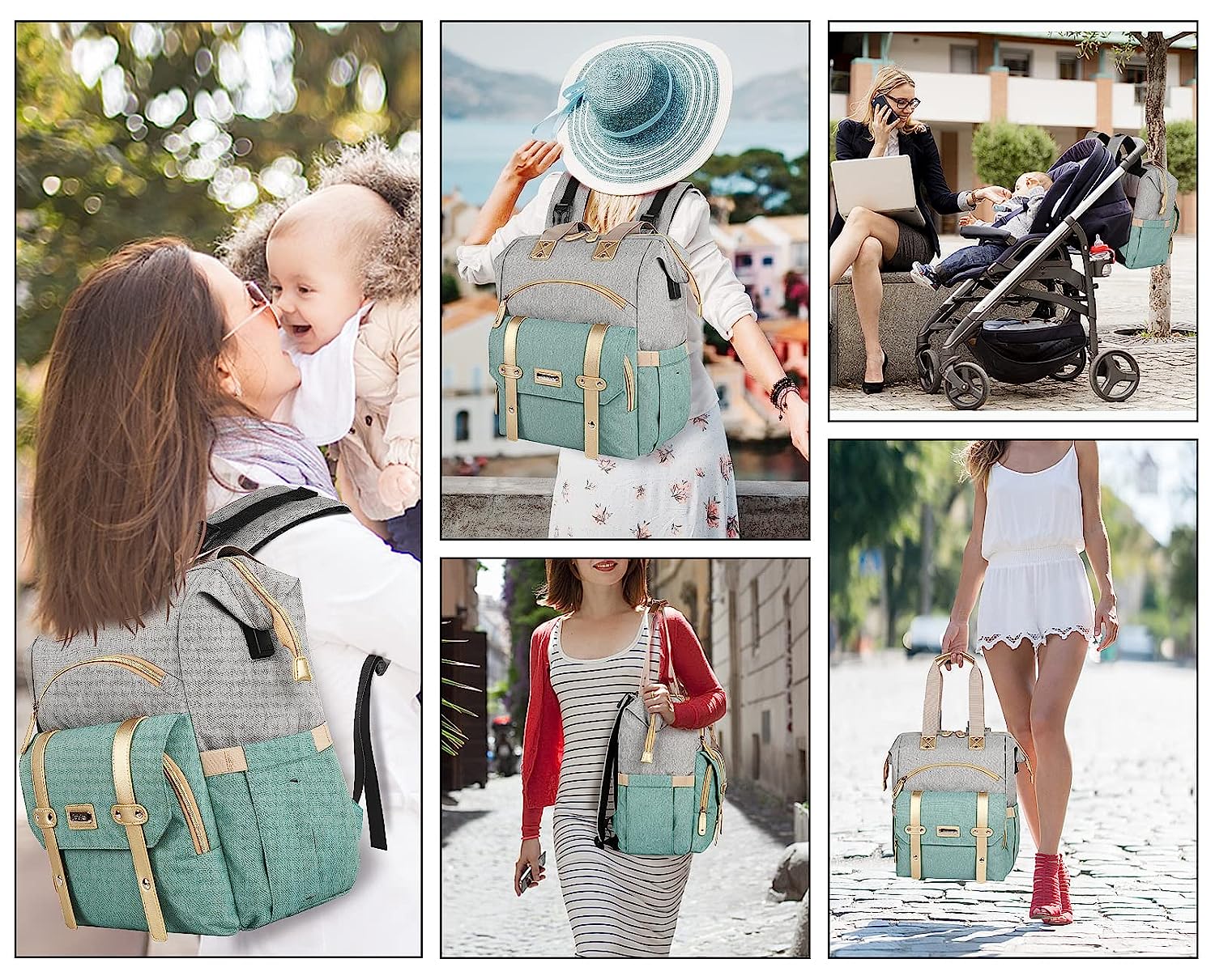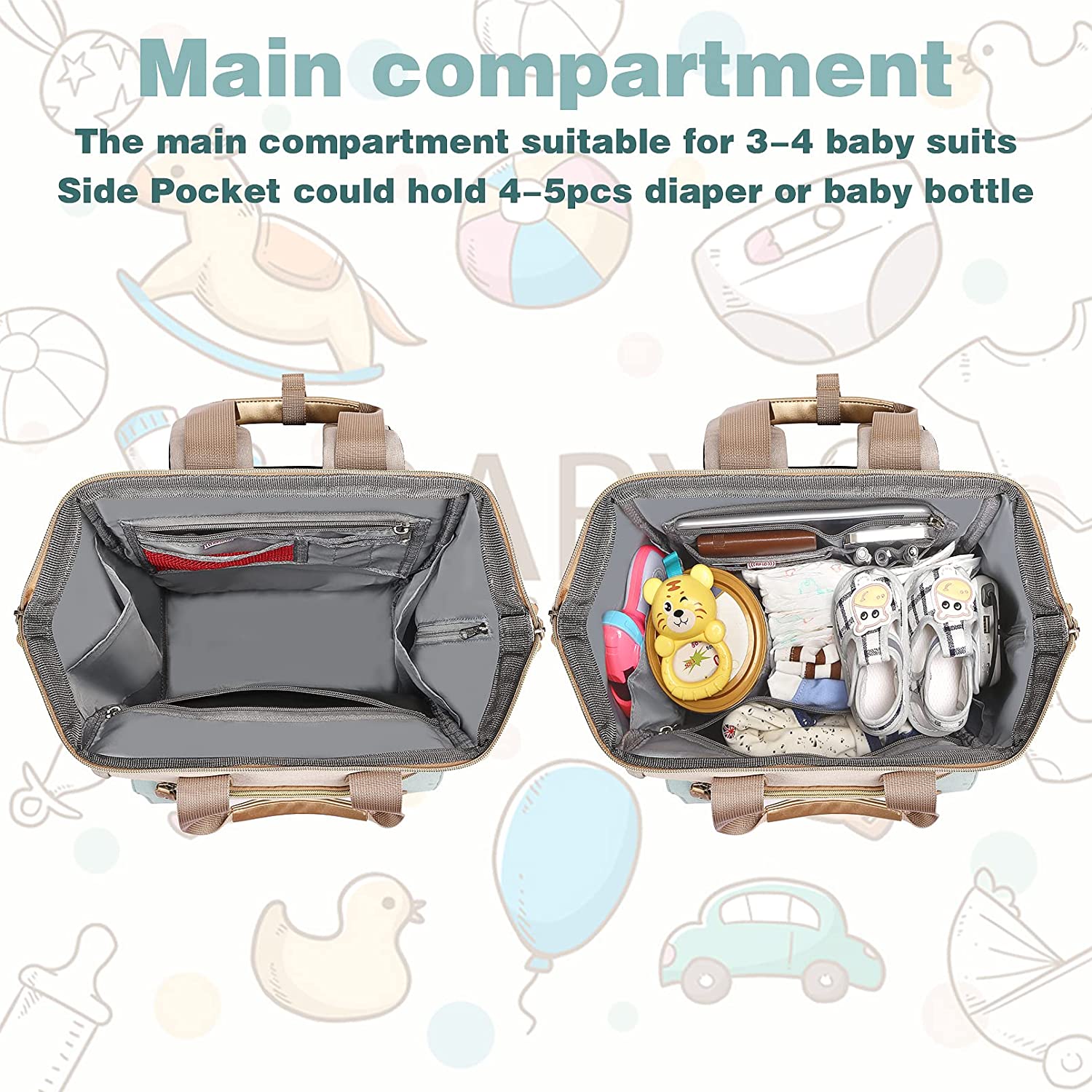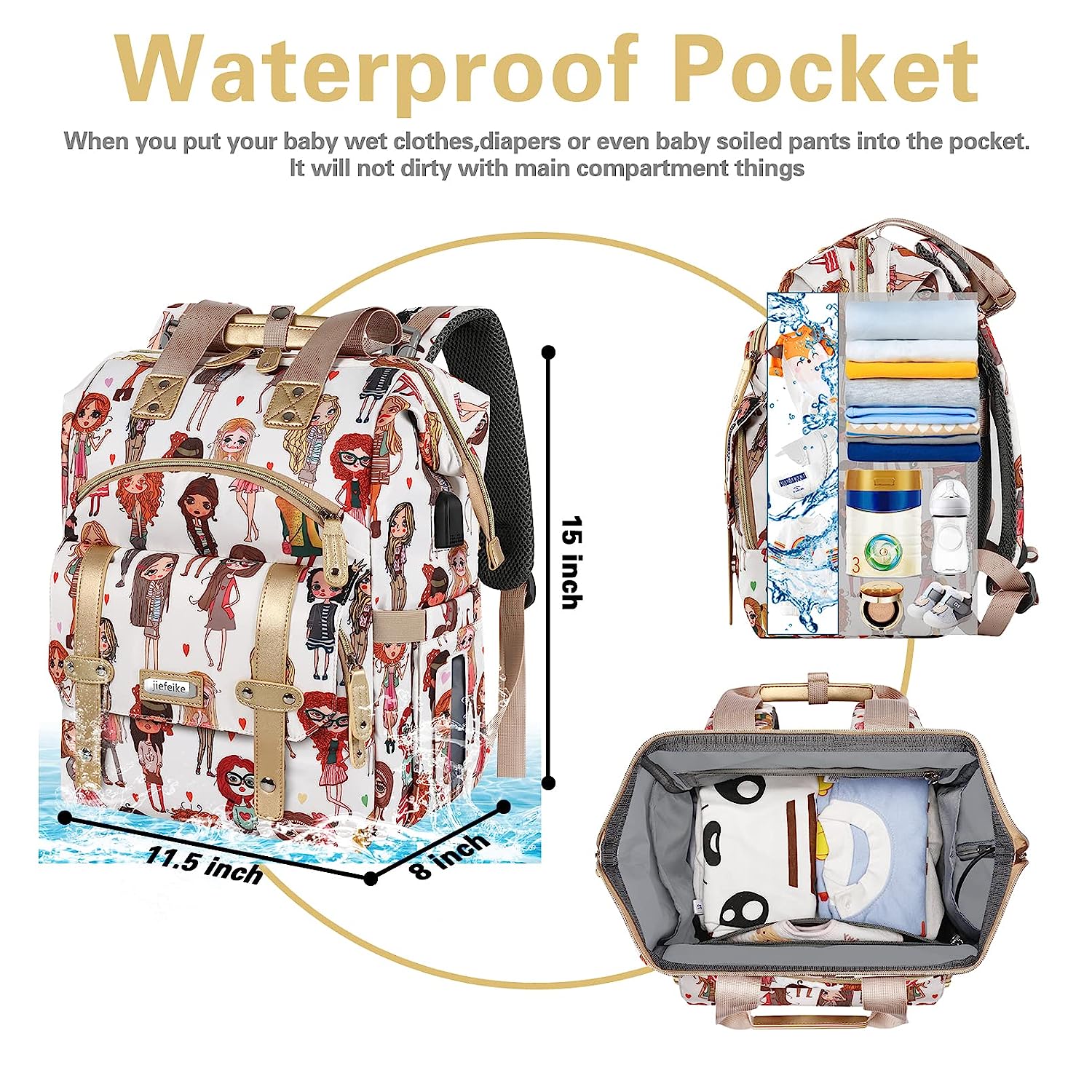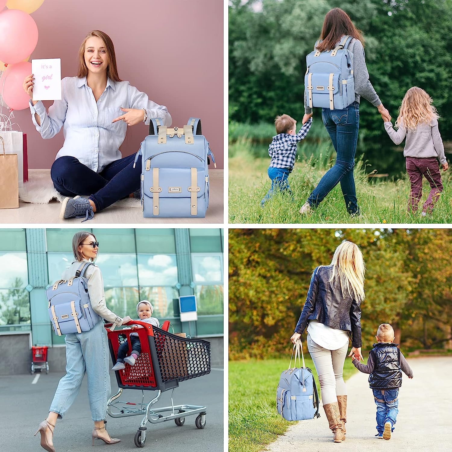 • ?【Diaper Bags Large Capacity】Diaper bags for baby girl has 2 insulated pocket for baby bottle.1 mommy pocket store daily thing.Diaper bags main compartment could hold most of baby essentials.Also have 1 organizer pocket for nappy,1 RFID pocket and 1 Dry and wet separation bag convenient for you go outside.1 USB charging port.2 side pocket for easy reach wipes,water bottles or umbrella.The luggage Strap allows you to fasten to the suitcase and easy to carry.Best Valentine's gift for women