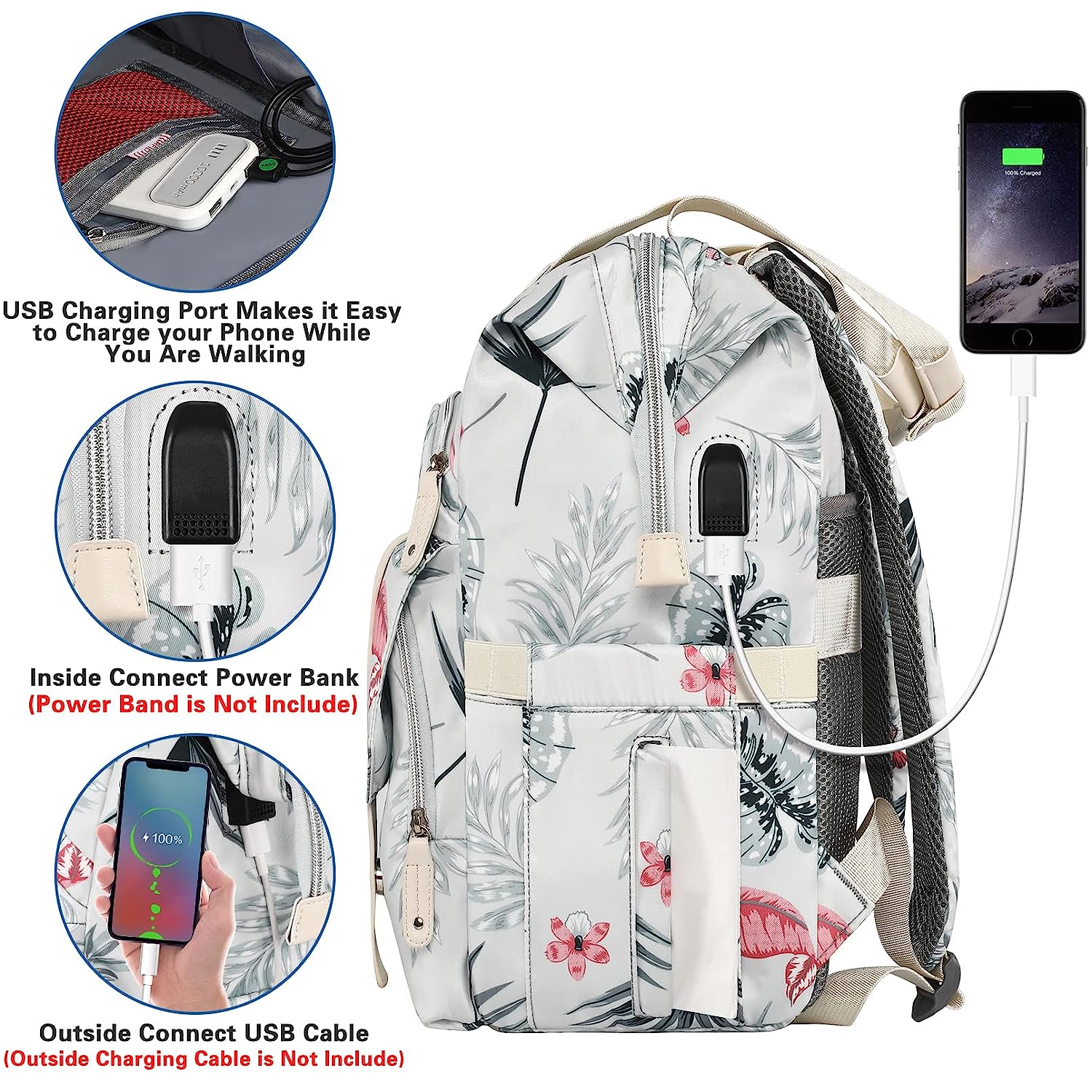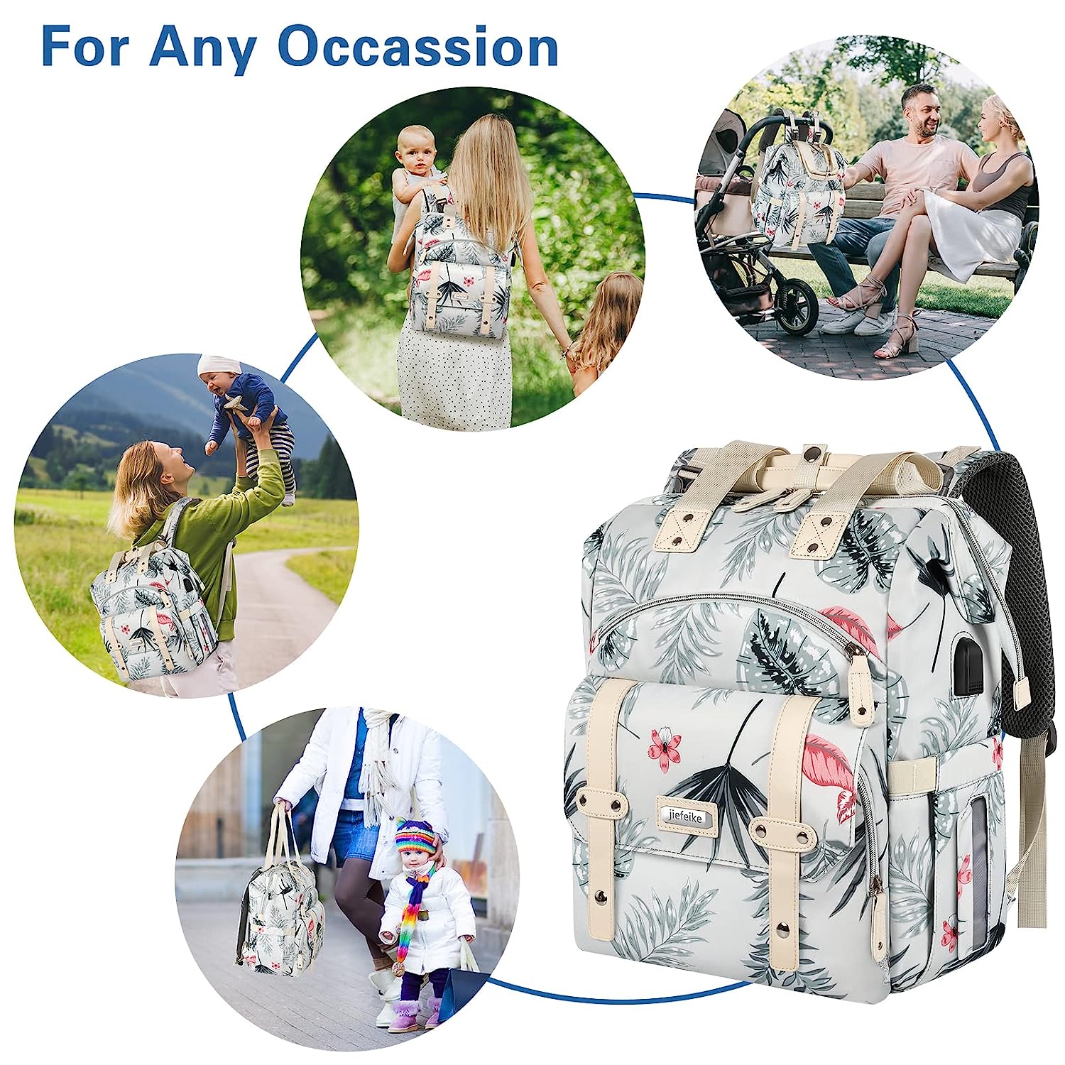 • ?【Stroller Straps& Function】Stroller strap and luggage strap allow to slot the baby diaper bag on baby car and wheeled carry-on luggage.It is convenient and hands free.1 RFID pocket could protect your personal information prevent steal,USB charging port could charge phone at anytime.( POWER BANK NOT INCLUDED).Sponge shoulder pad full protect your shoulder and make your comfortable, it will not makes your back very warm and hot. The diaper backpack back pocket is safe for your phone ect.