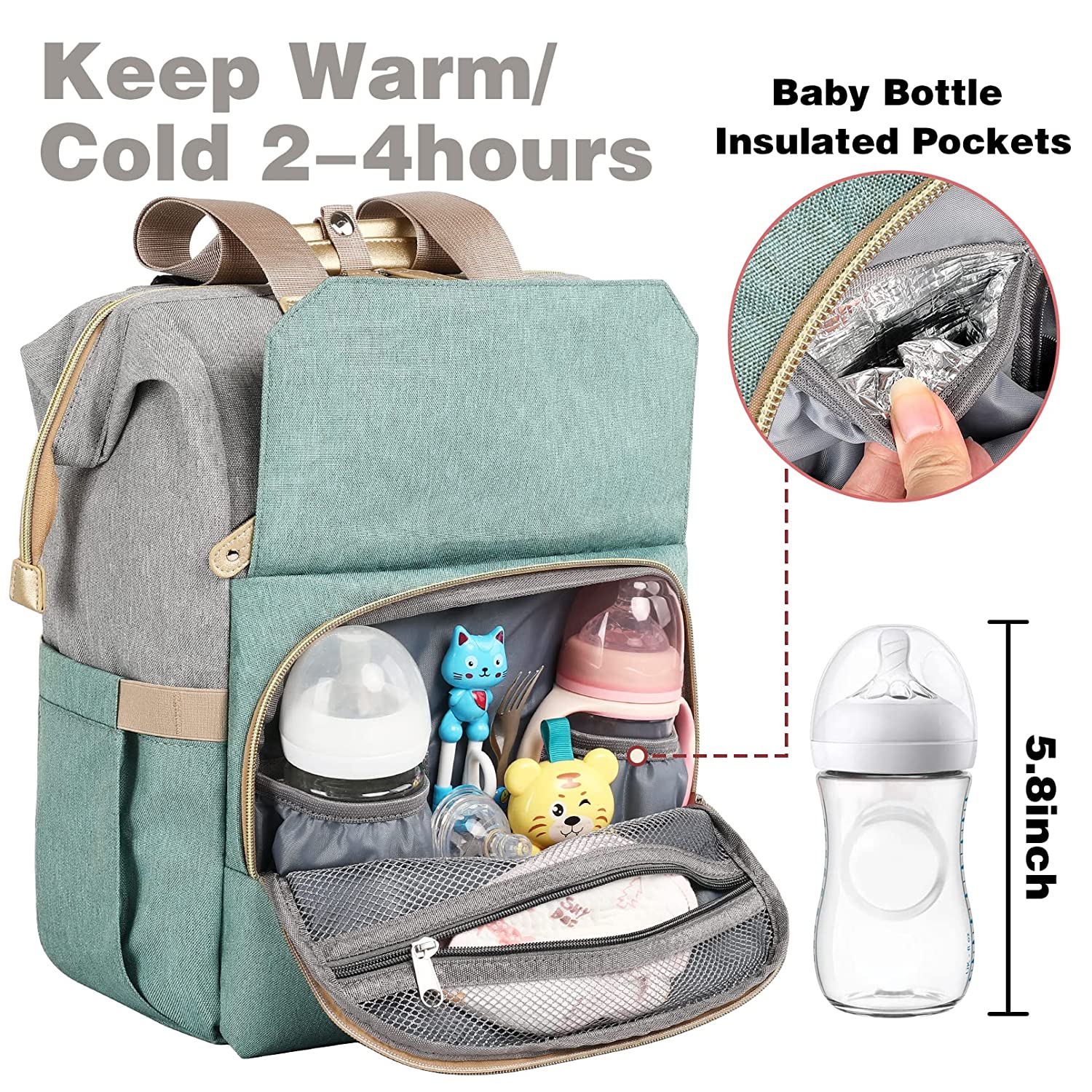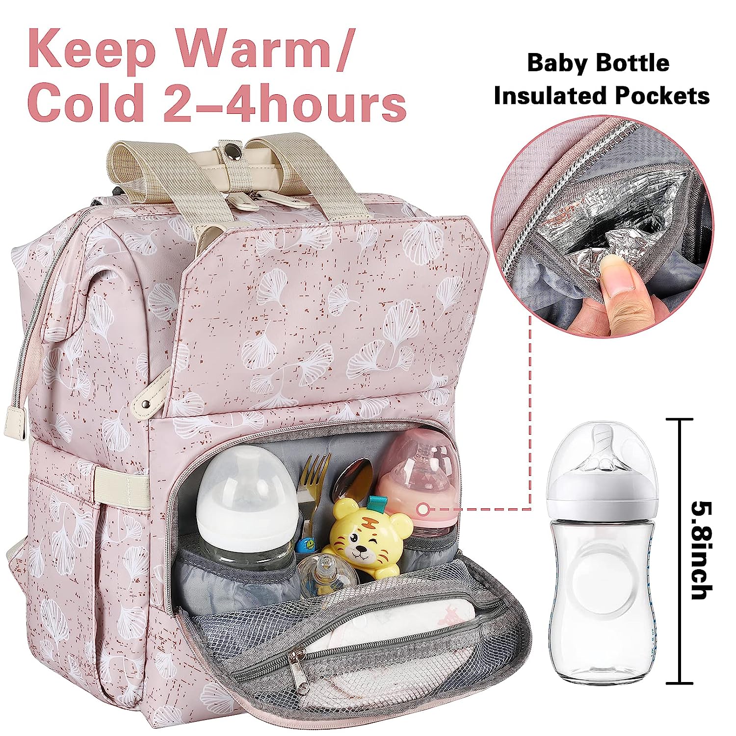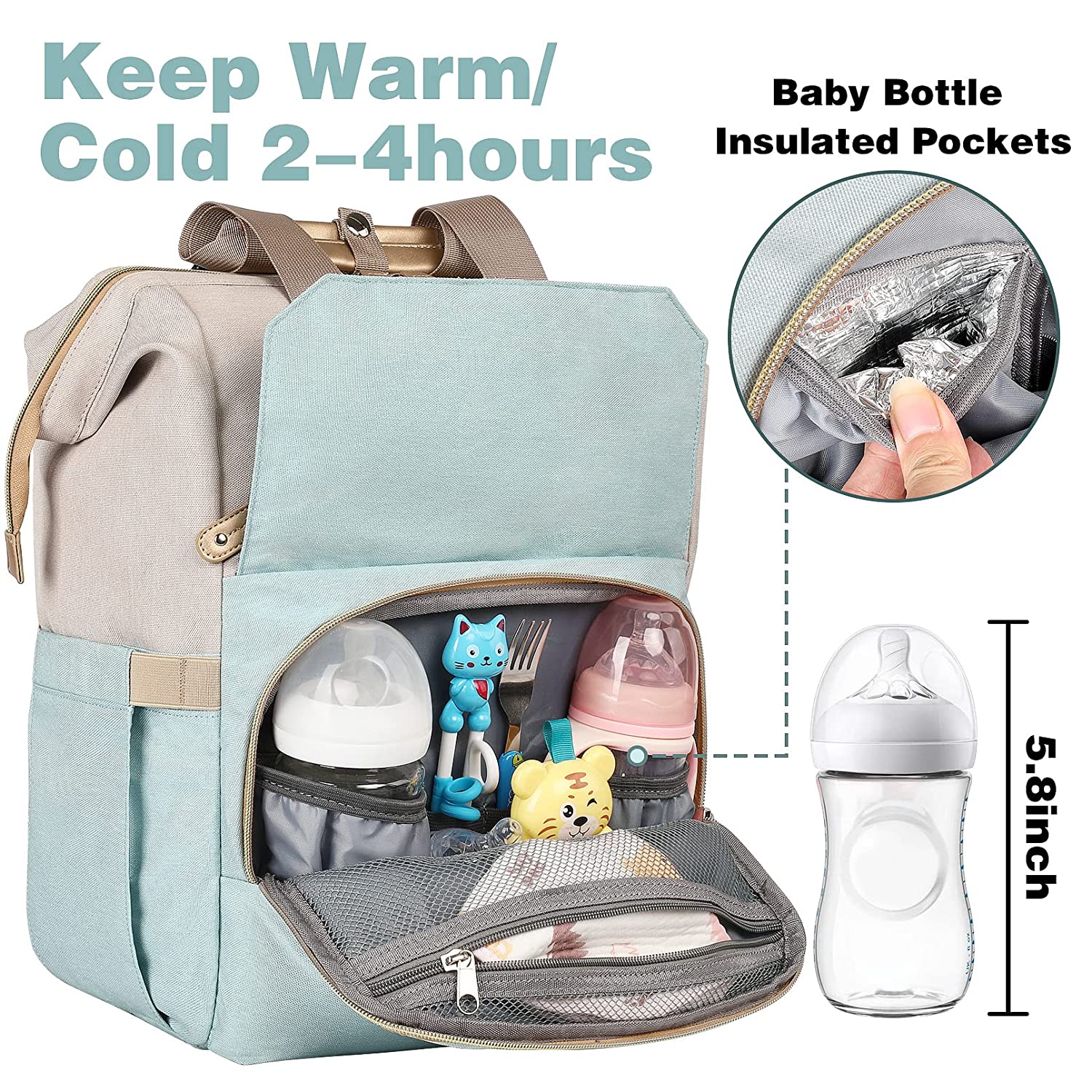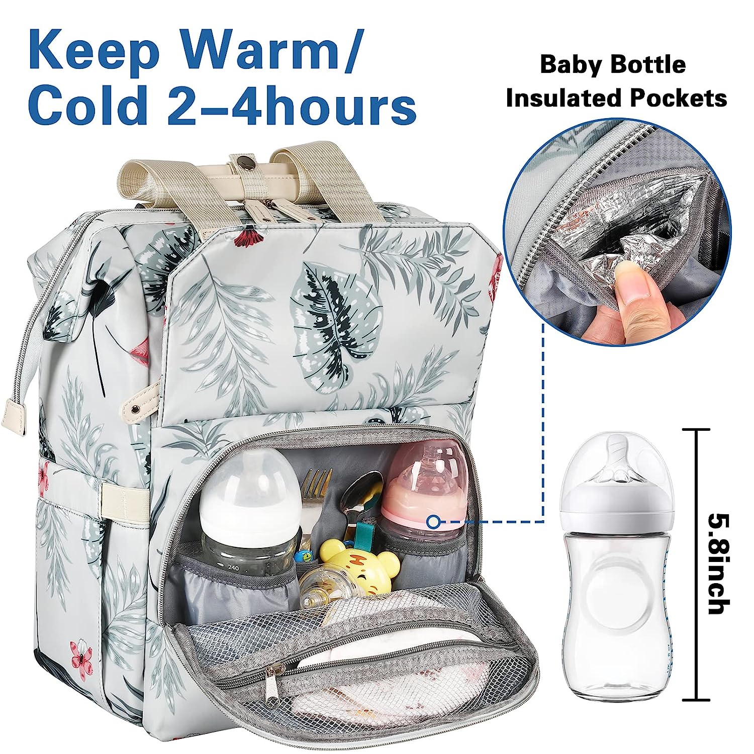 • ?【Insulated Pockets Compartment】Backpack diaper bags for baby boy insulated bottle pockets can hold 2 of baby bottles(5.8inch). It could keep warm or cold around 2-4h,it is great design for your baby haven't drink off the milk.so you don’t have to worry about your baby drink getting cold milk.Baby bag backpack also have 2 pocket for spoon,and the bookbag diaper bags compartment also could put baby snack and Pacifier. Diaper Backpack for mothers day gifts meets the baby's needs