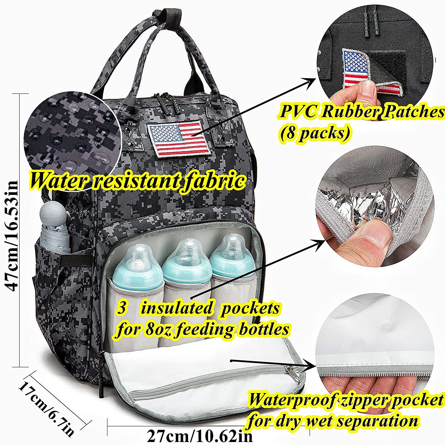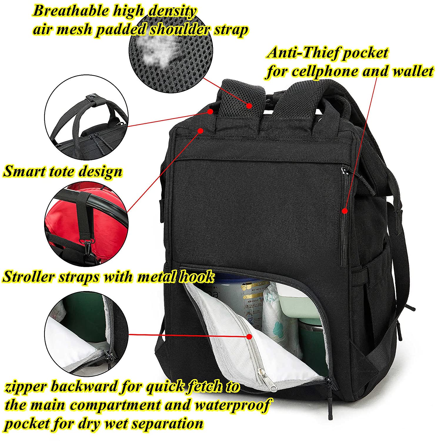 • ?Large Capacity&Practical:Diaper Bag with 14 Multifunctional Pockets Include 3 Insulated Pockets,2 Waterproof Pockets,2 Elastic Easy-taking Pockets,1 back Anti-theft pocket etc.,Spacious Enough to Hold Essentials and still Perfectly Organized and Compact