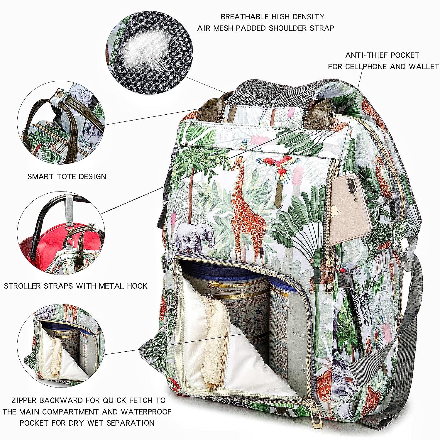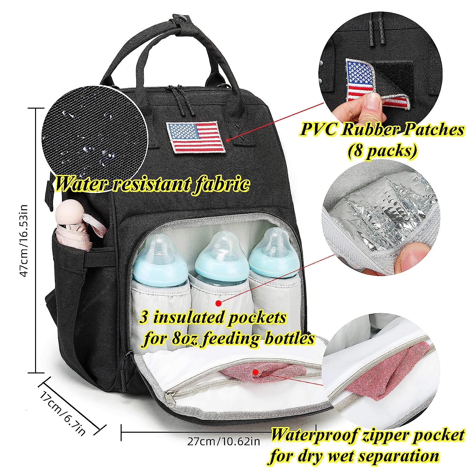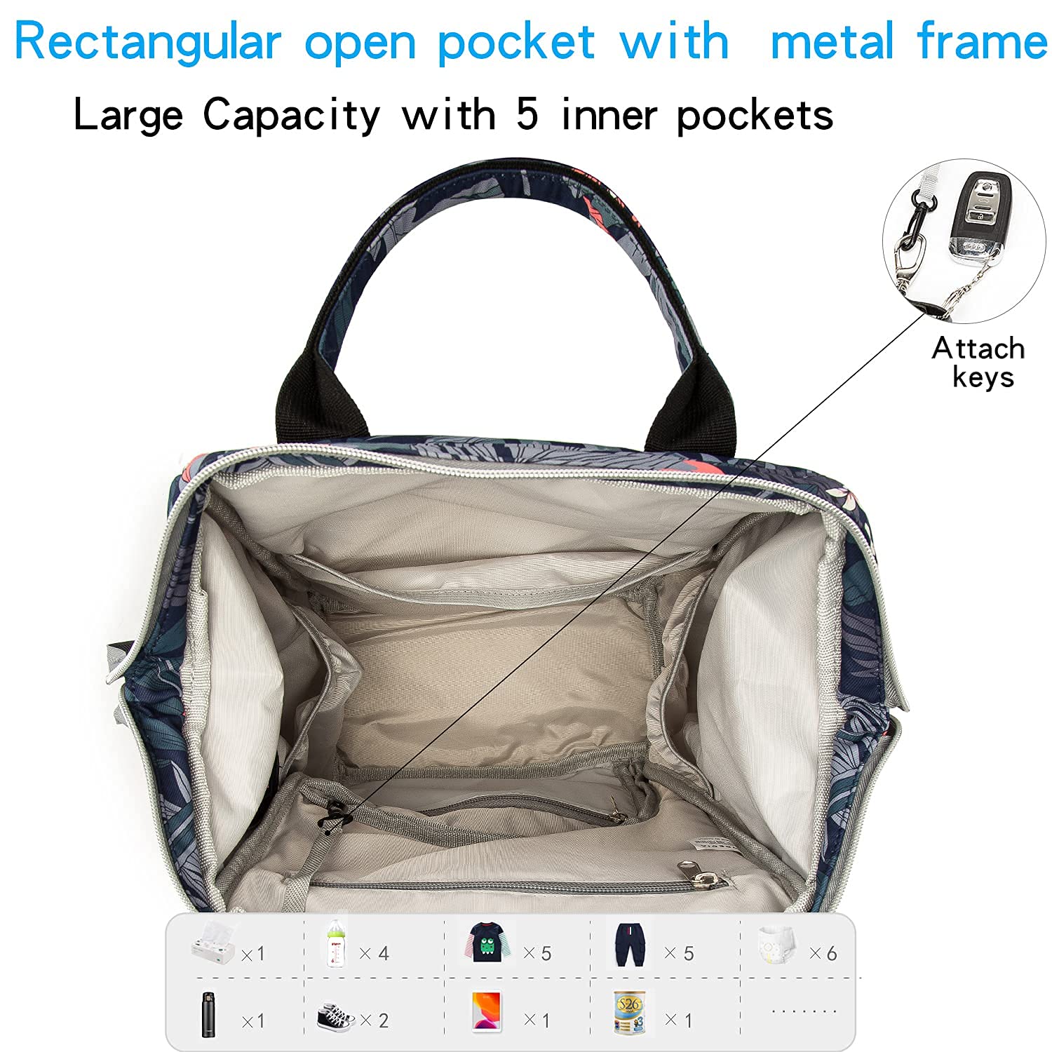 • ?Large Capacity&Practical:Diaper Bag with 14 Multifunctional Pockets Include 3 Insulated Pockets,2 Waterproof Pockets,2 Elastic Easy-taking Pockets,1 back Anti-theft pocket etc.,Spacious Enough to Hold Essentials and still Perfectly Organized and Compact