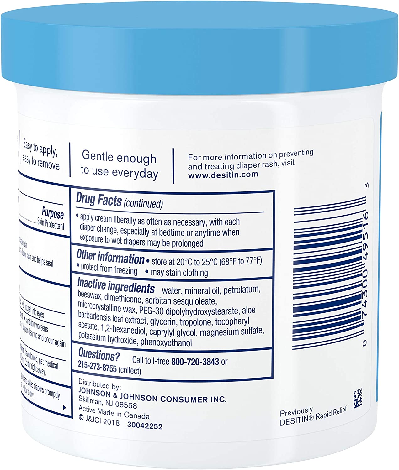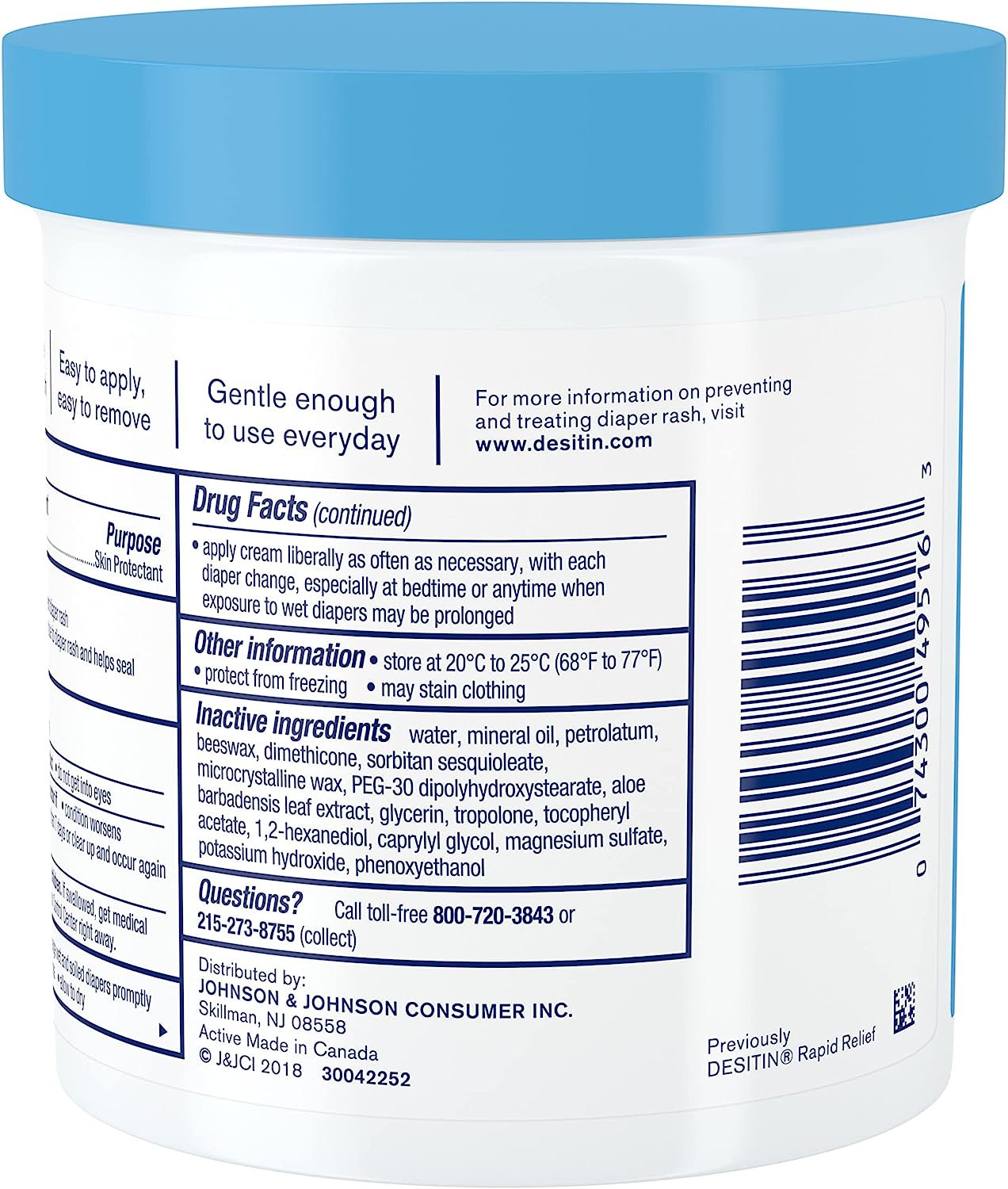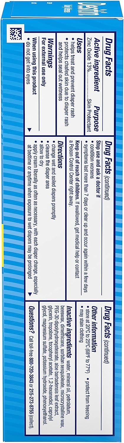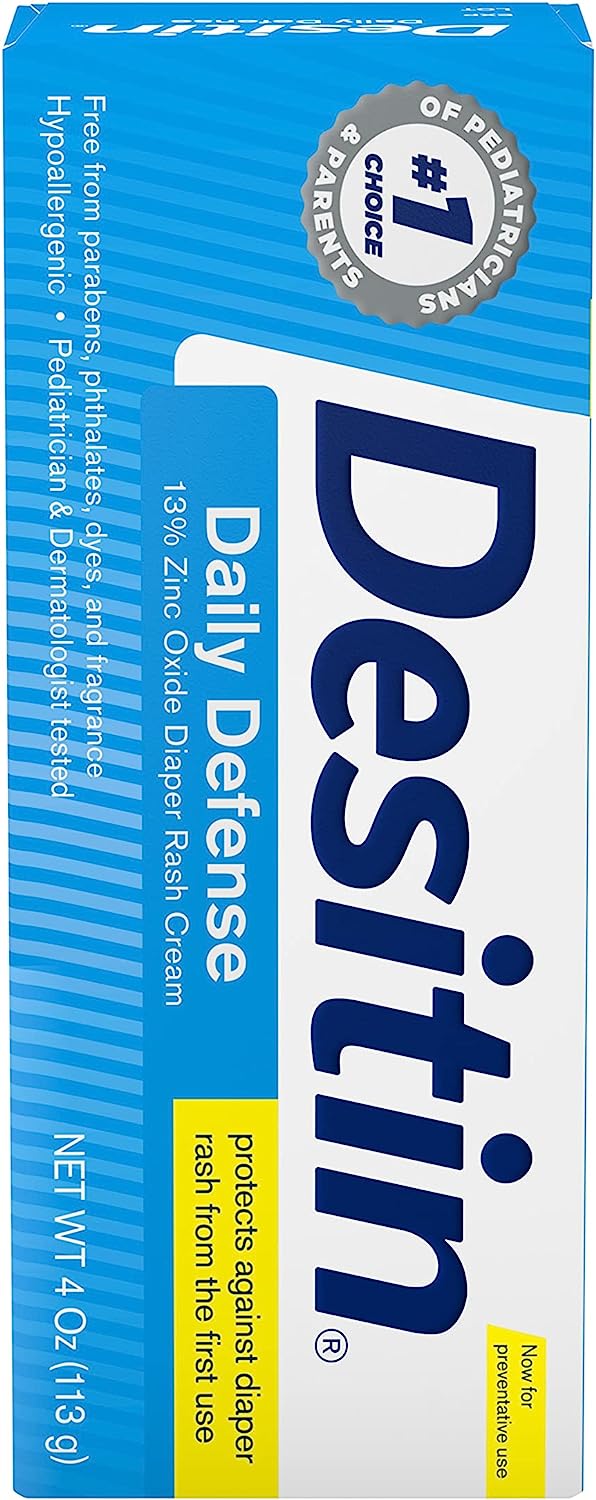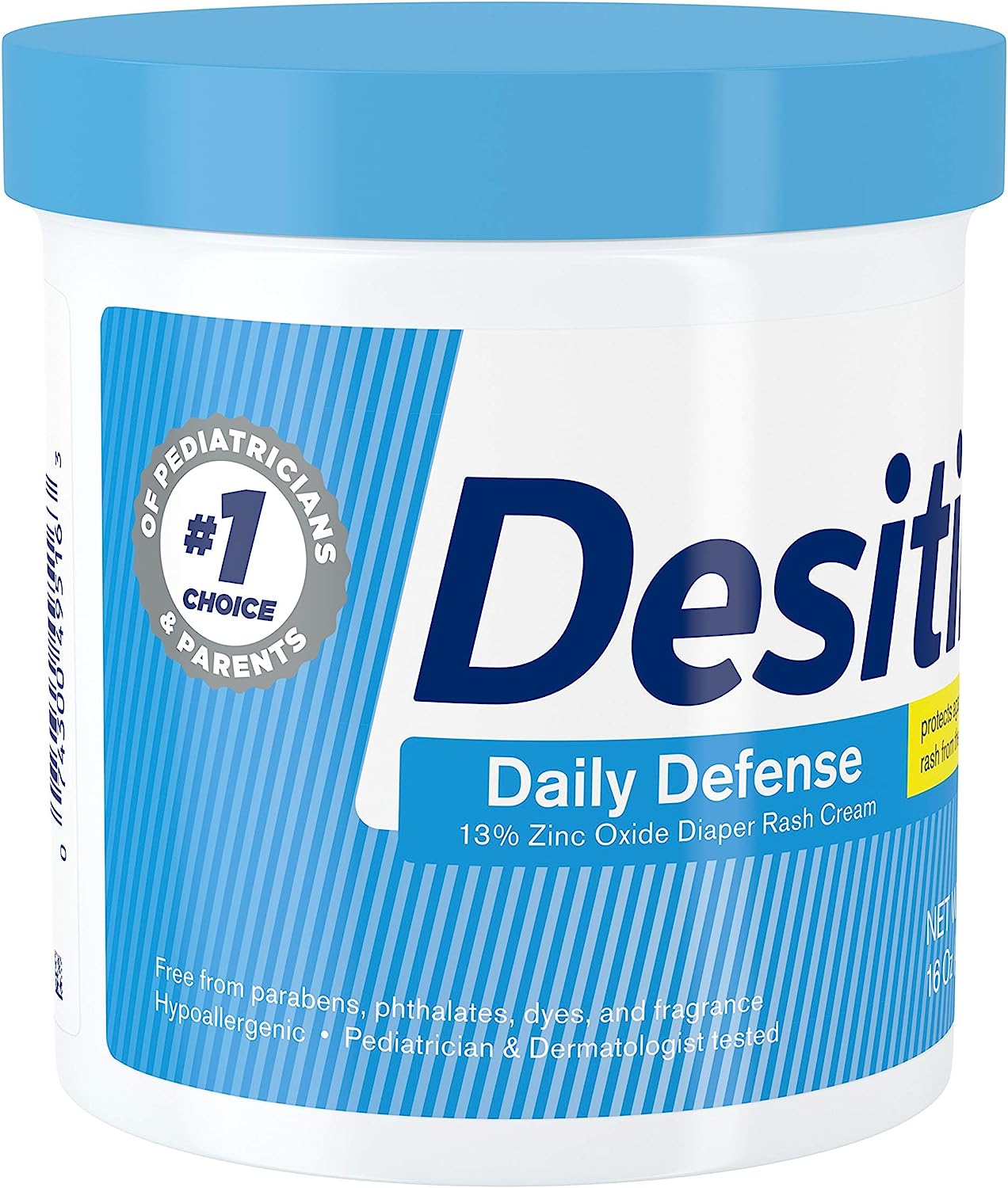 Use Desitin Daily Defense Diaper Rash Cream every day to soothe, treat and prevent baby diaper rash. This hypoallergenic and pediatrician-tested formula instantly forms a protective barrier on your baby's tender skin and is clinically shown to provide diaper rash relief. The rash healing cream is designed to work at the first hint of diaper rash to help heal and soothe your baby's skin. Made with fast-acting 13% zinc oxide skin protectant formula, this barrier cream helps seal out wetness and provides protection from the first use. It is dermatologist-tested and free of parabens, phthalates, fragrances and dyes, so it's gentle enough to use at every diaper change. The #1 choice of pediatricians and parents, the rich, creamy formula goes on smoothly and wipes off easily, making Desitin Daily Defense Baby Diaper Rash Cream your trusted partner for treating diaper rash from the first signs.