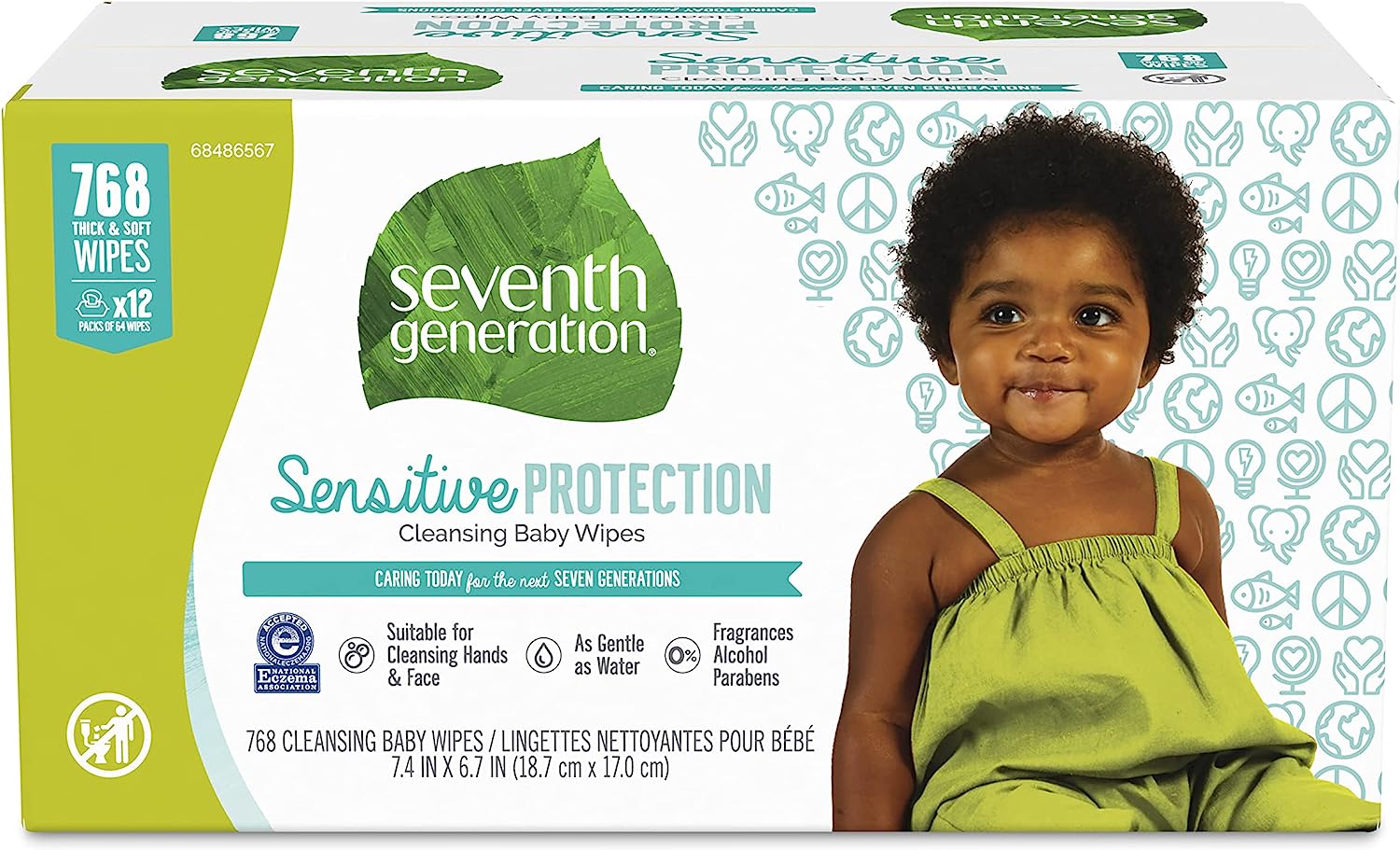 Seventh Generation Baby Wipes Sensitive Protection with Snap Seal Diaper Wipes 768 Count