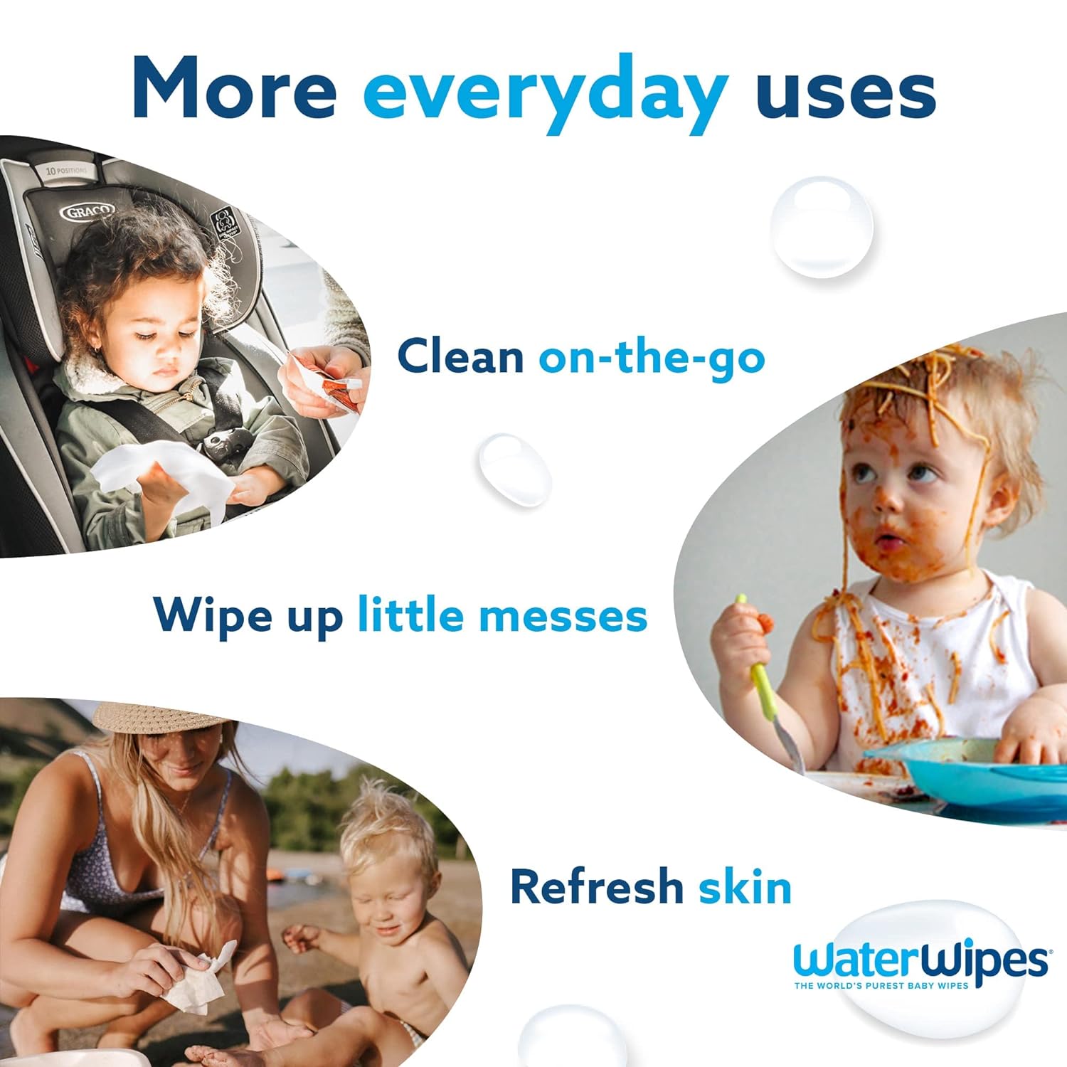 Now families around the world trust pure and simple WaterWipes for all kinds of messes. These plastic-free wipes are gentle on the planet, and they’re clinically proven to be kind on baby’s skin, giving parents the confidence to help protect their children in the purest way possible.