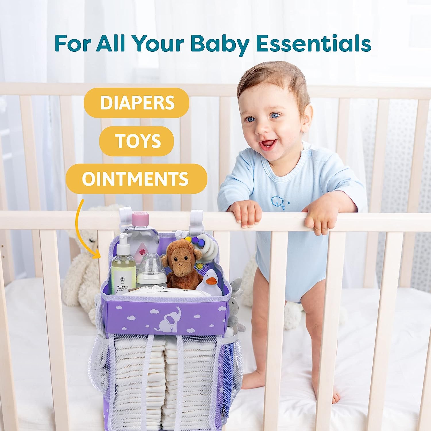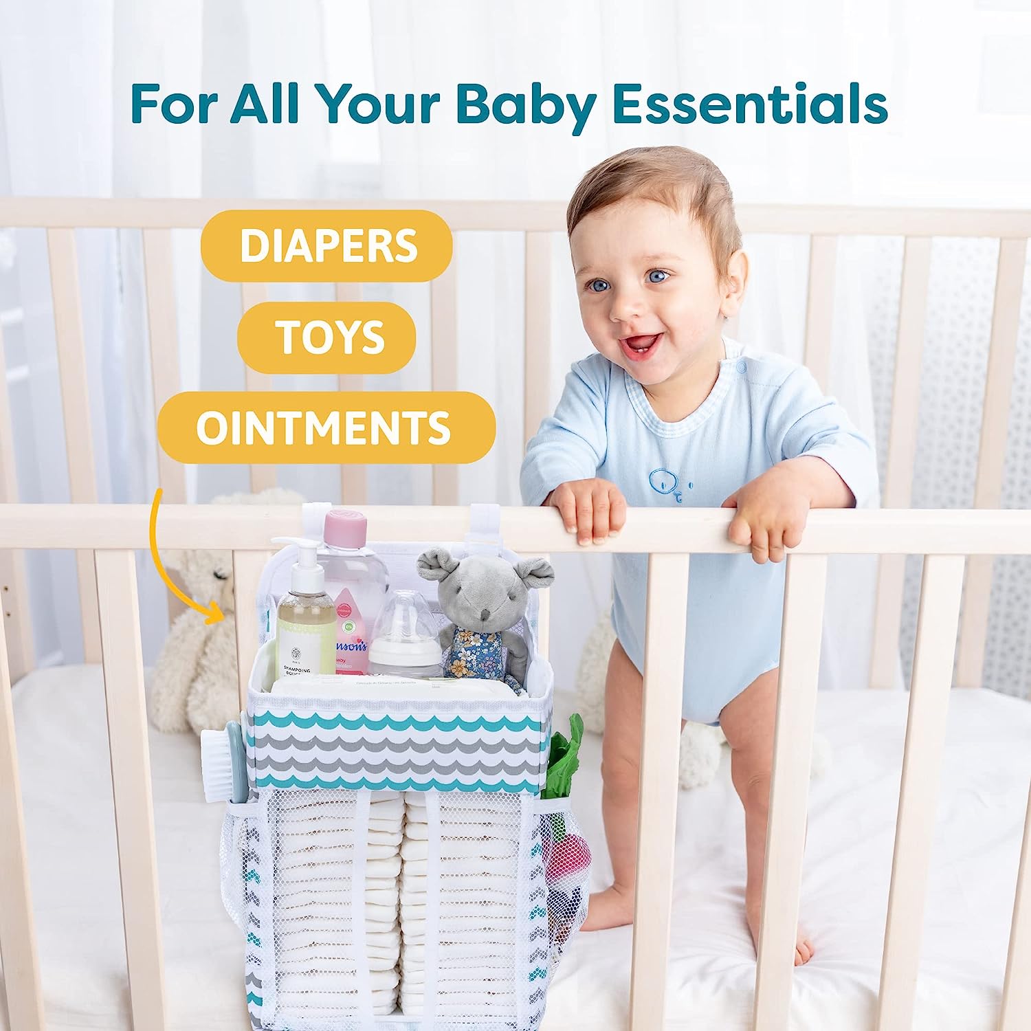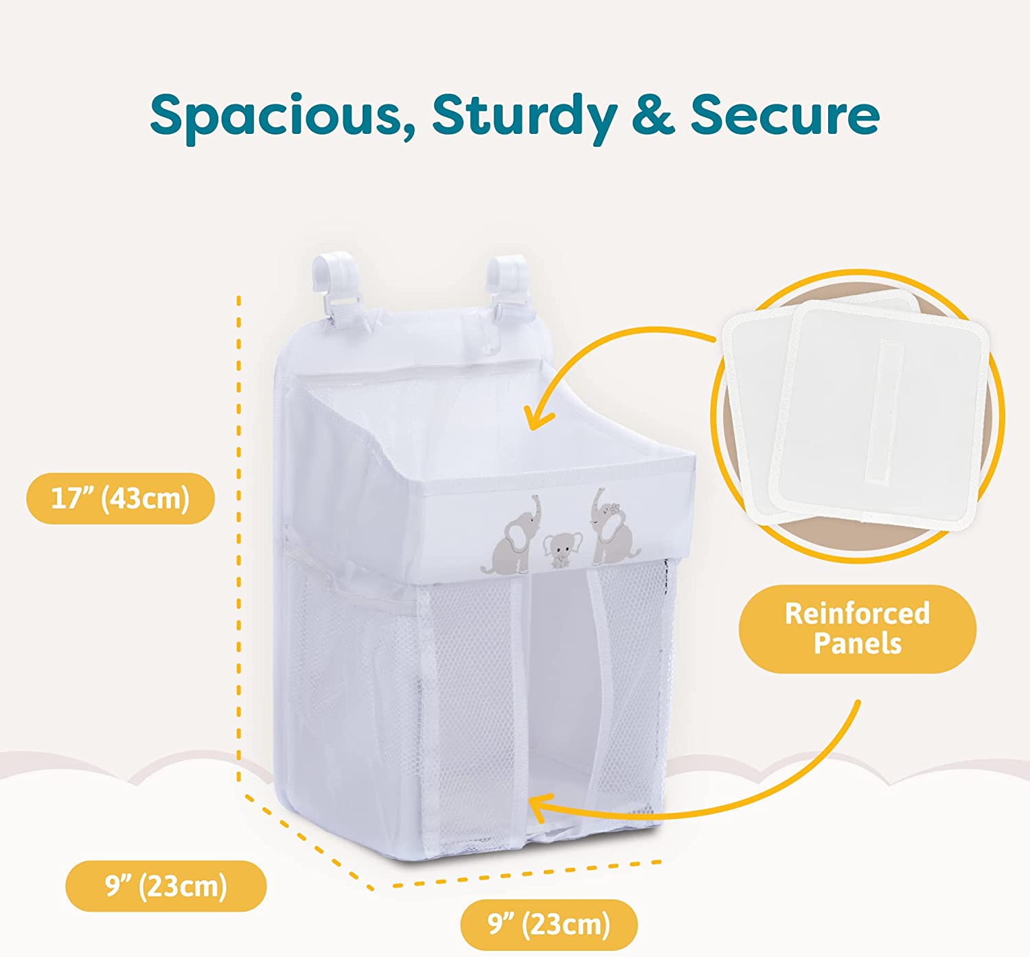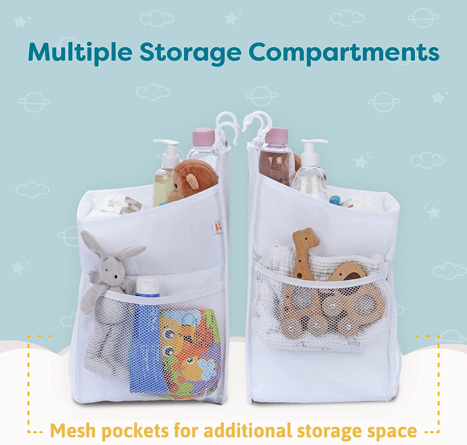 • MAXIMUM STABILITY - This sag-resistant changing table organizer has an innovative design that prevents it from collapsing inwards. The crib organizer also features reinforced shelves to offer extra stability