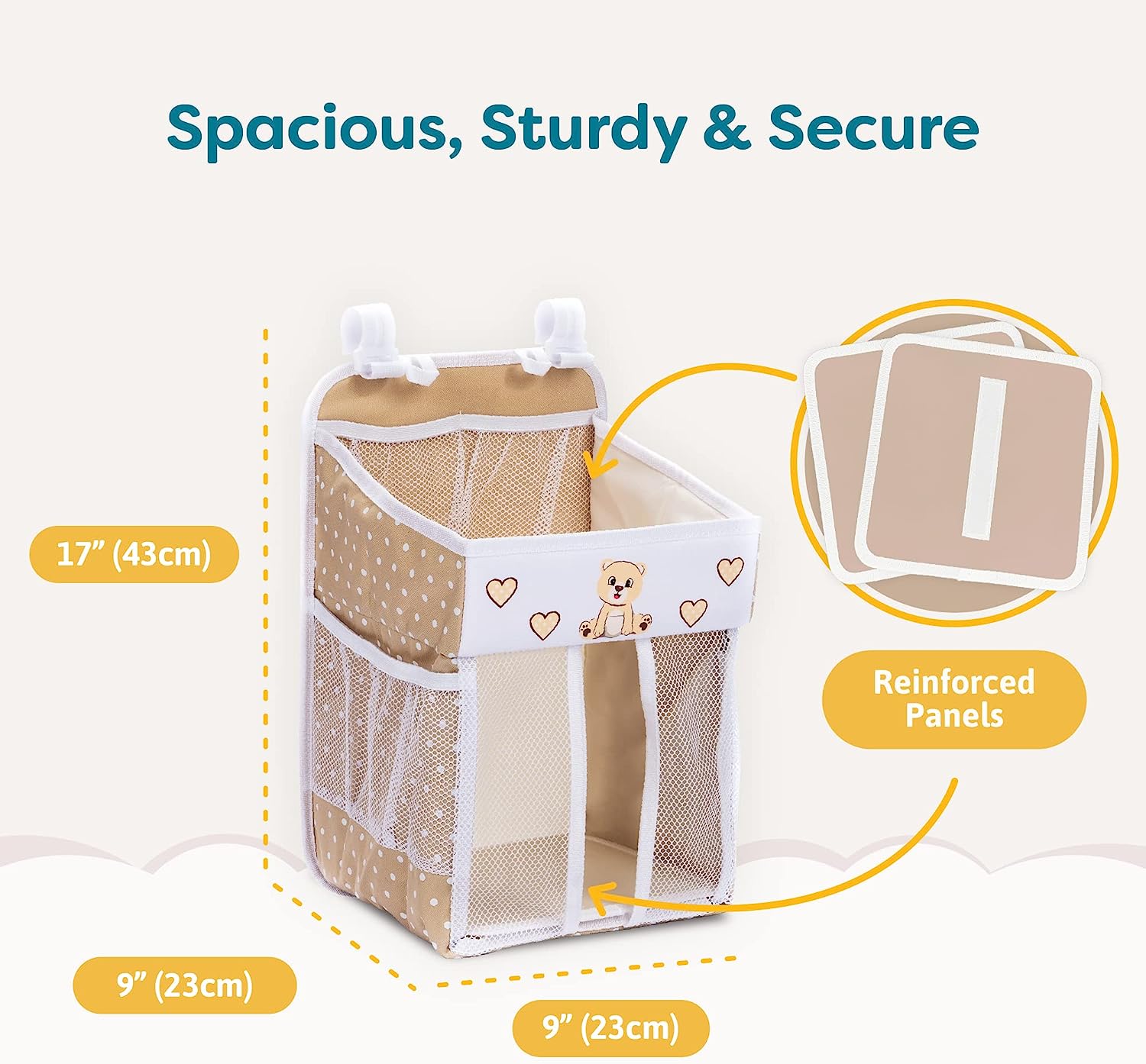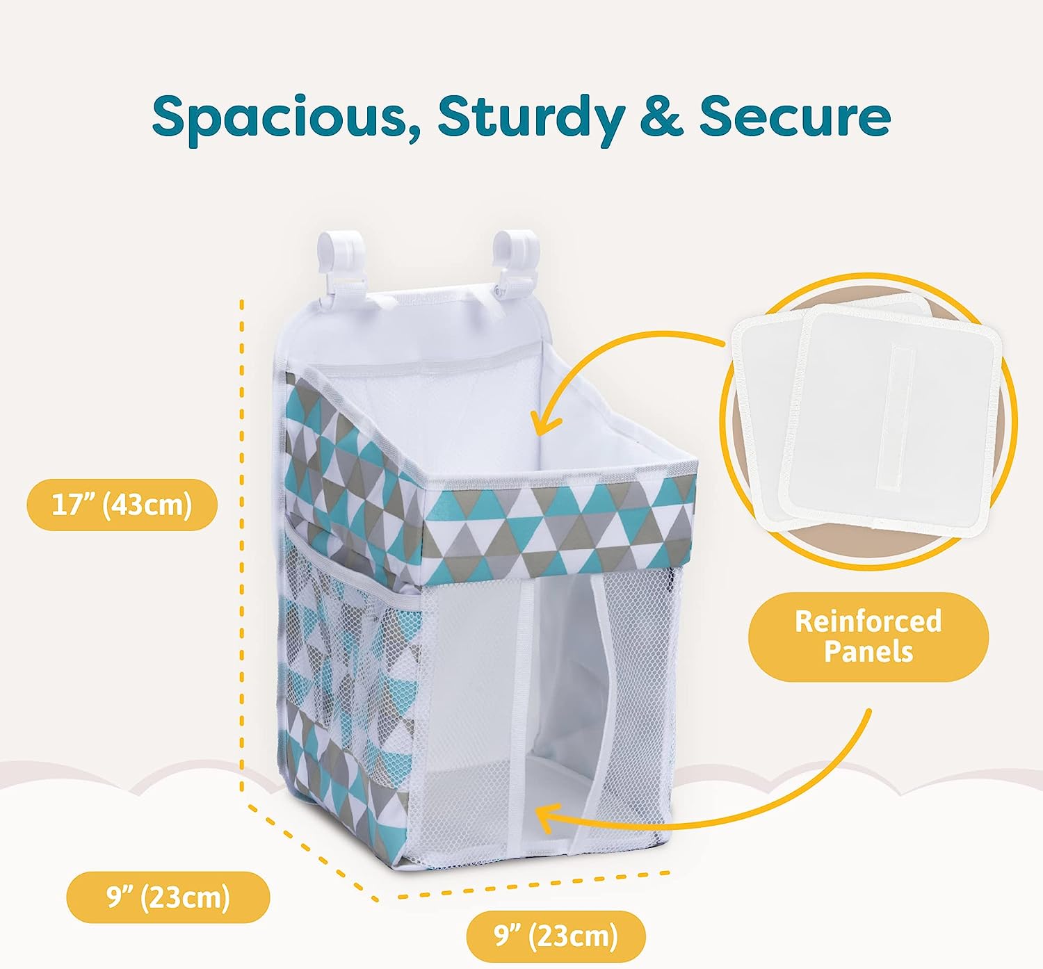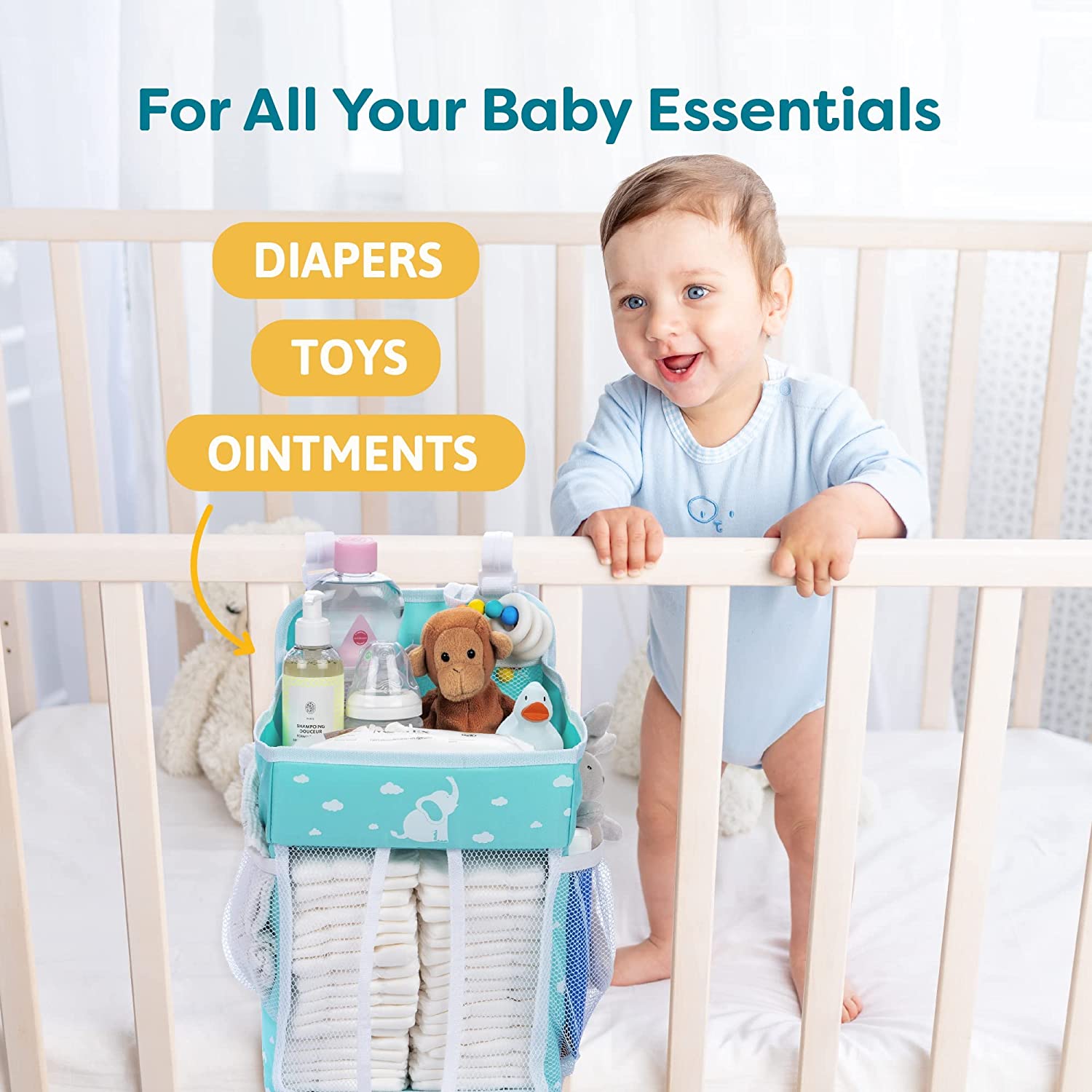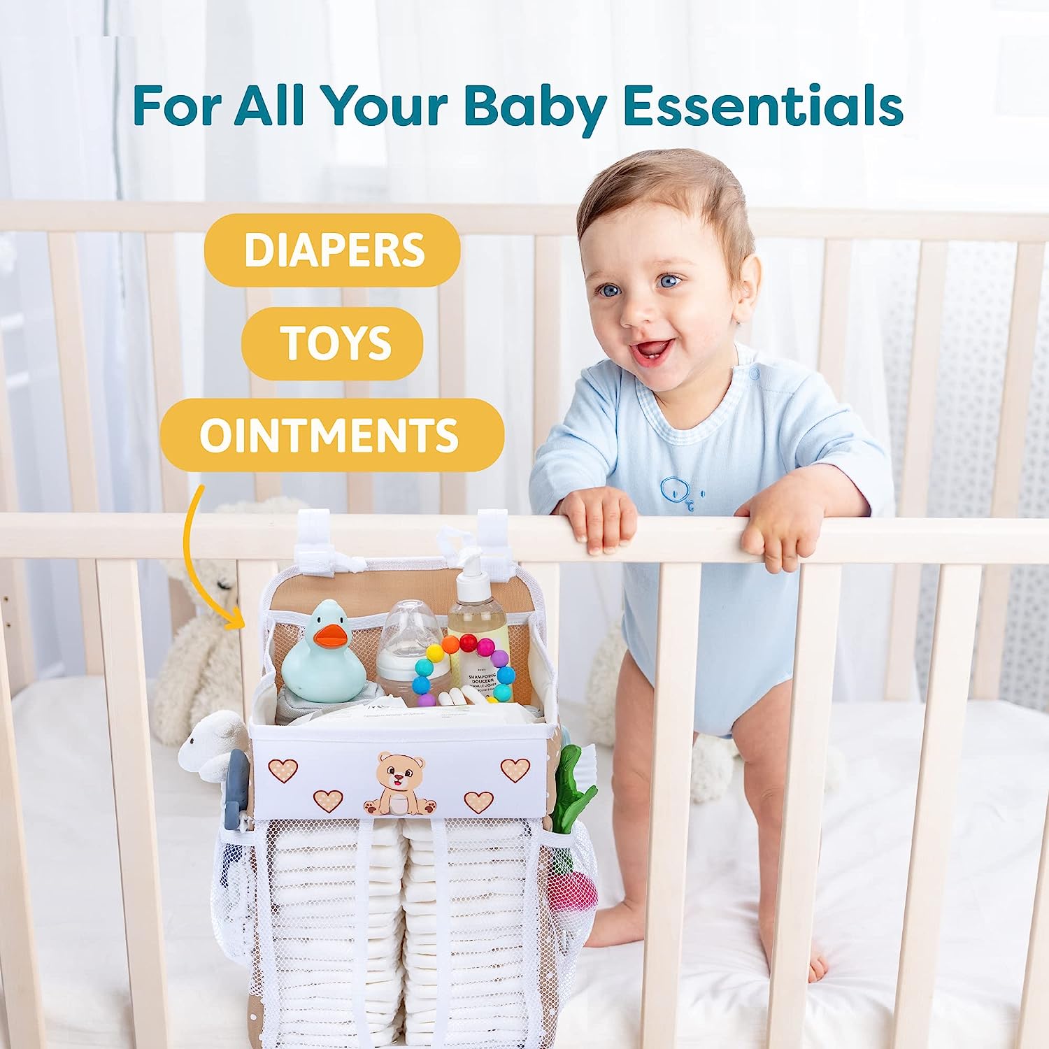 • MAXIMUM STABILITY - This sag-resistant changing table organizer has an innovative design that prevents it from collapsing inwards. The crib organizer also features reinforced shelves to offer extra stability