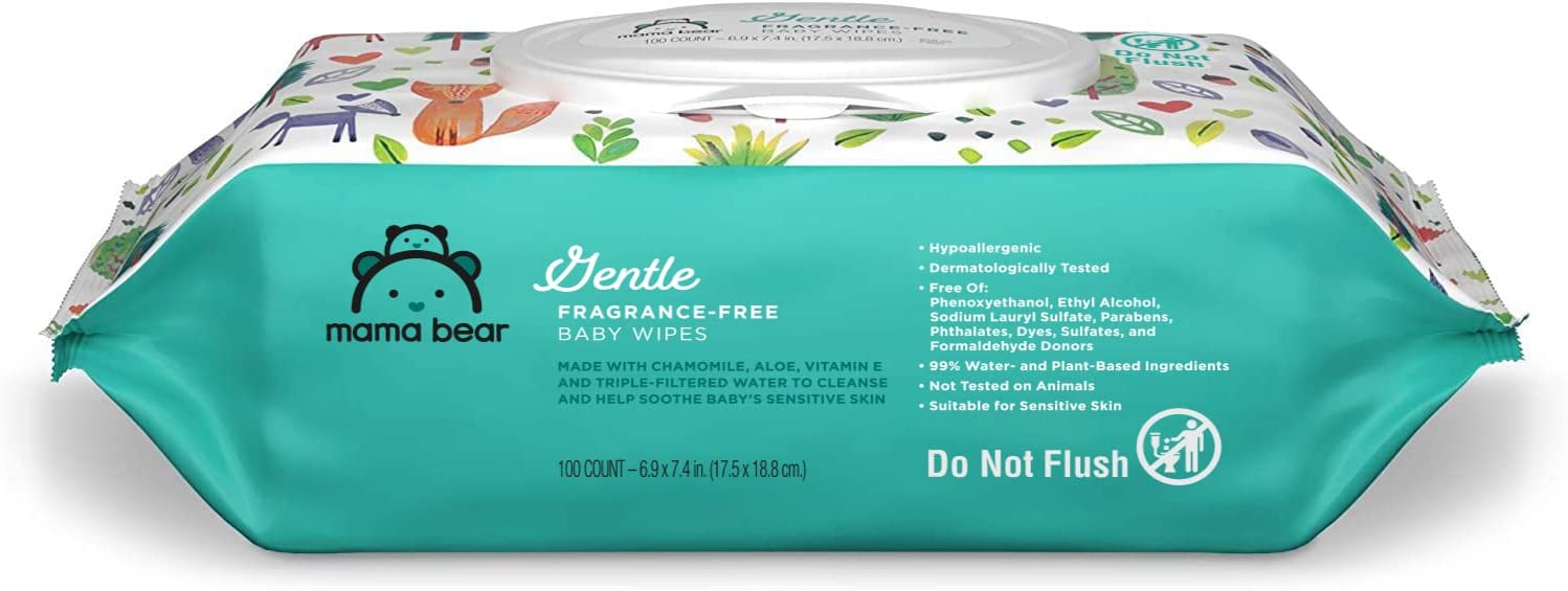Amazon Brand - Mama Bear Gentle Fragrance Free Baby Wipes, Hypoallergenic, 800 Count (8 Packs of 100)