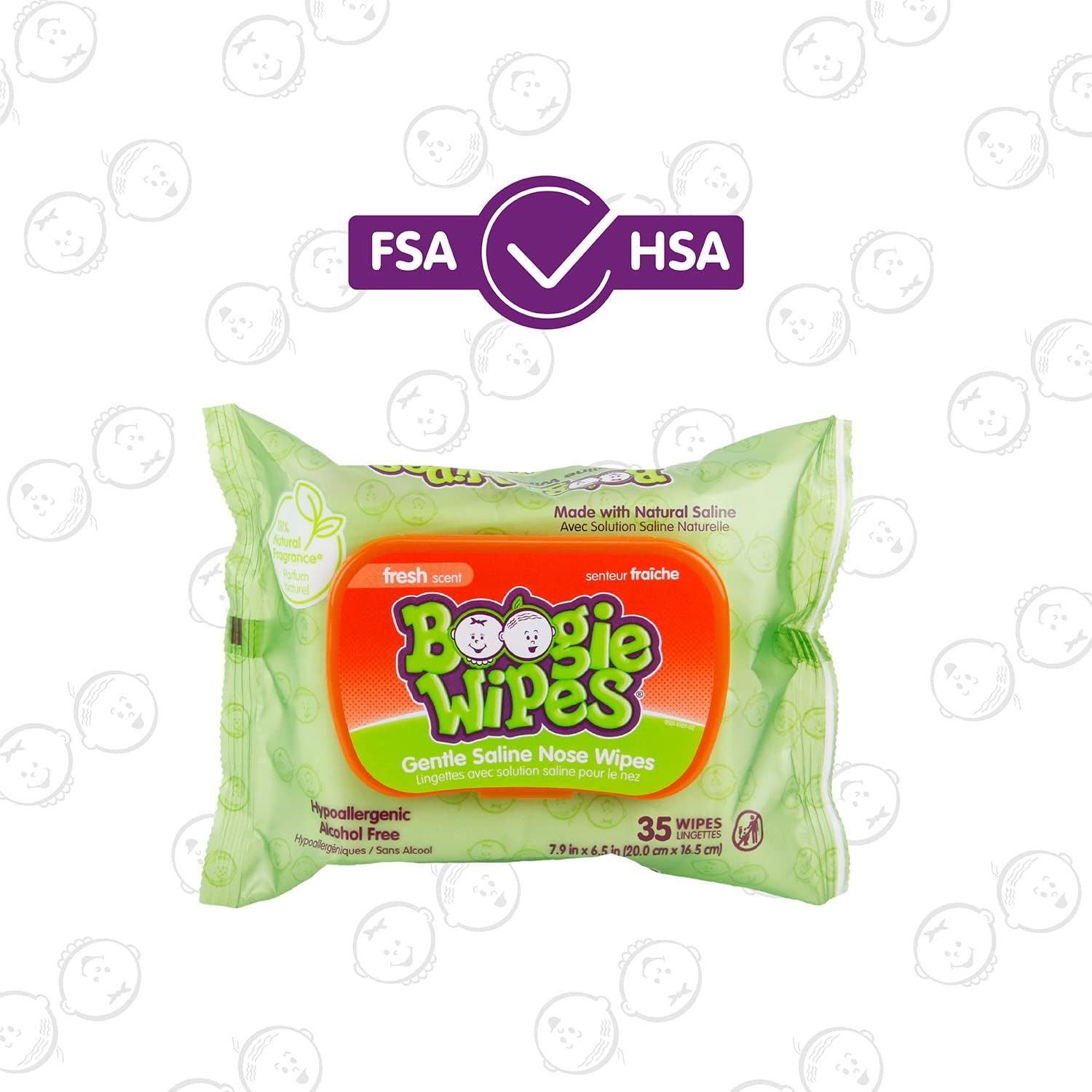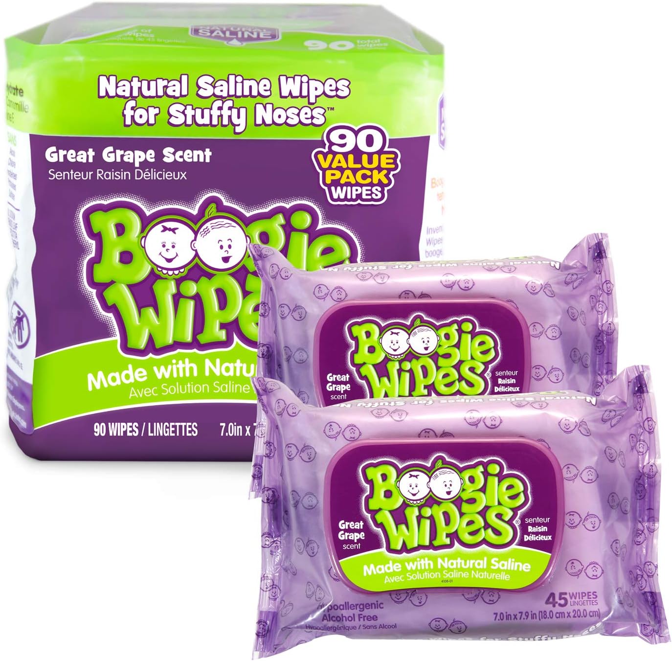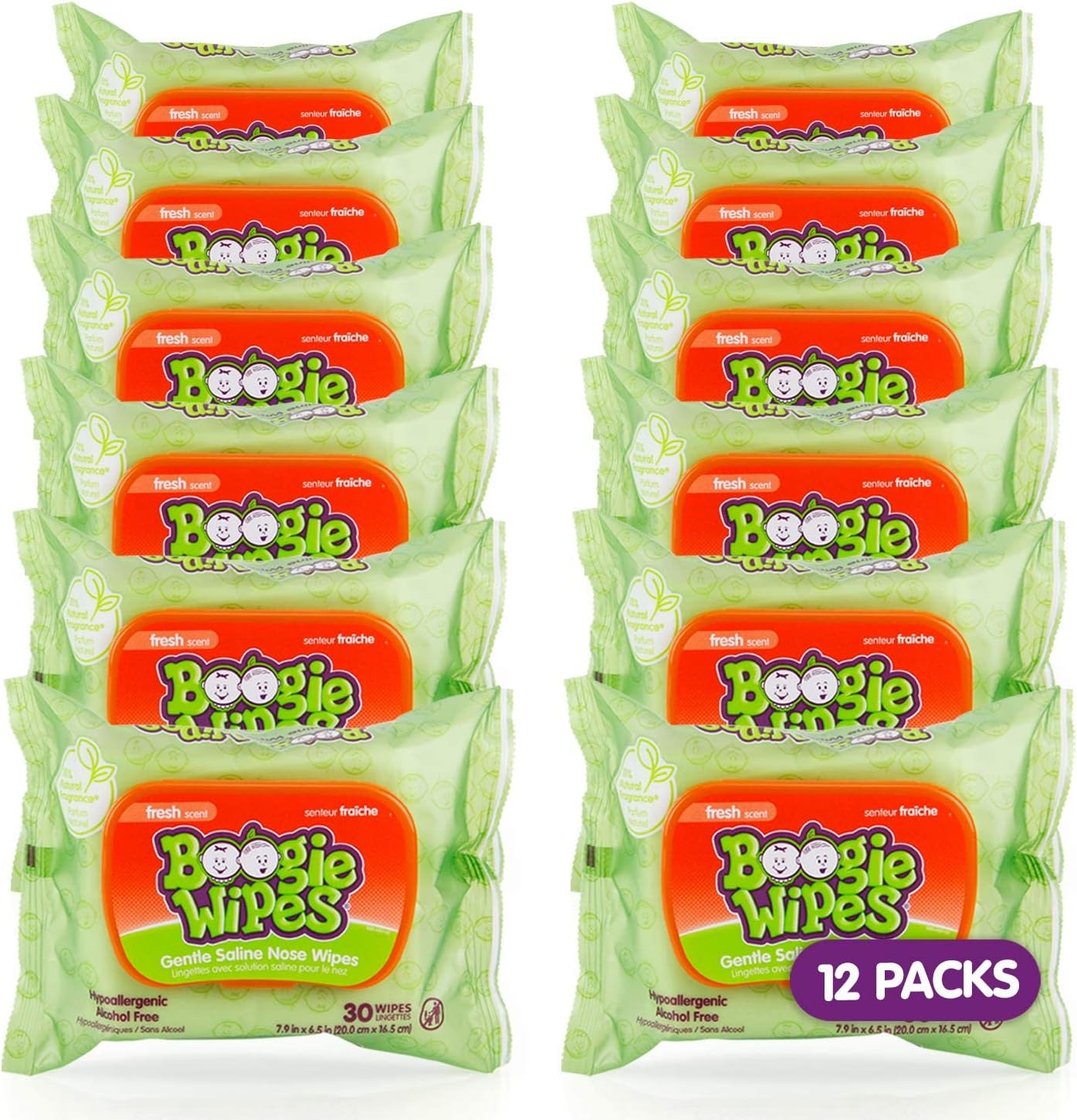 • GENTLE SALINE WIPES FOR STUFFY NOSES: Boogie Wipes saline nose wipes are wet wipes made with natural saline, which is gentle on skin, helps clean and dissolve snot and boogers, and wipes away dirt and germs. They’re gentle enough to be used on noses, faces, fingers and toes whenever cleaning is necessary.