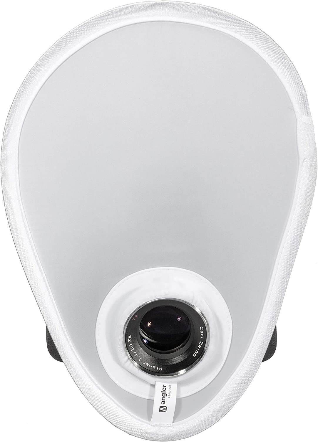 Diffuse your on-camera flash or shoe mount speedlight with the PSFD-100 Portable Speedlight Flash Diffuser from Angler. This easy-to-mount flash diffuser is made of a lightweight fabric with an elastic ring and is compatible with most lenses on the market up to 90mm wide. At the same time, the top panel diffuses and broadens the harsh light emitted by the bare bulb of portable speedlights or on-camera flashes. Because of the lightweight fabric, it can fold down into a portable size and be carried in a compact pouch.