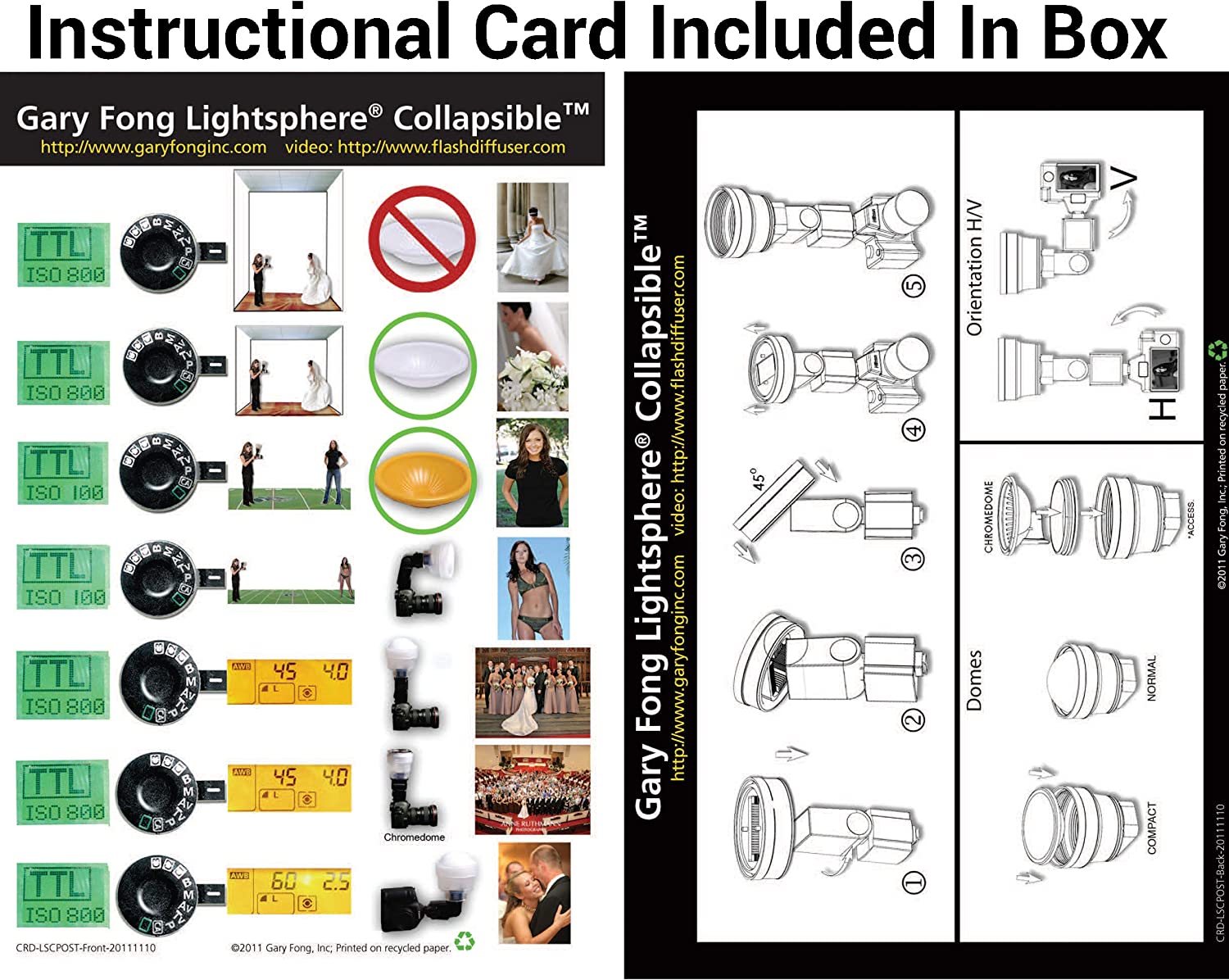 • Includes Lightsphere Collapsible Speed Mount, White Dome, Cinch Strap, Field Guide