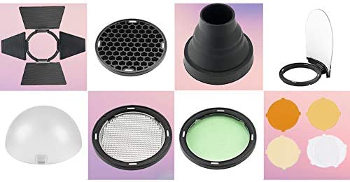 • ✔AK-R1 accessory kit includes Dome Diffuser, Diffuser Plate, Four-wing Reflector, Bounce Card, Honey Comb, Color Filters, Snoot, Portable Bag