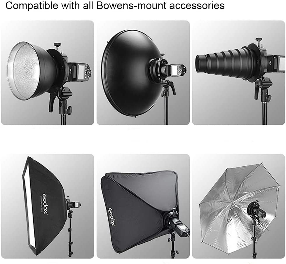• 🏆【One for Universal Pair】1. Godox mount adapter works with all Godox video lights(such as ML30,/ML30Bi, AD300PRO.etc). 2. Roundhead adapter applies to all Godox round head flash, like Godox V1 series.3.Rectangle to the round head adapter works with most rectangle speedlights, such as Godox V860II/V860III, and TT685II.