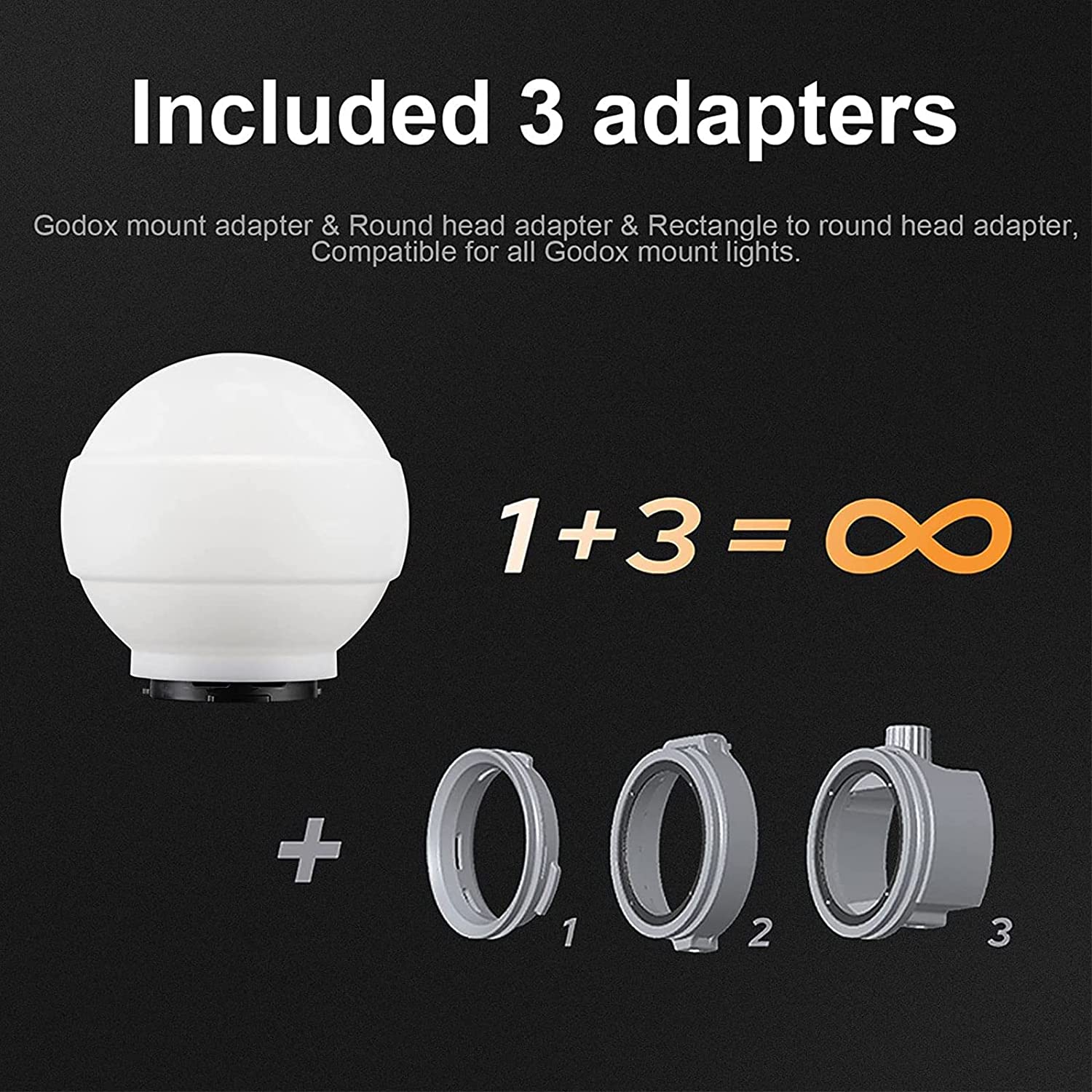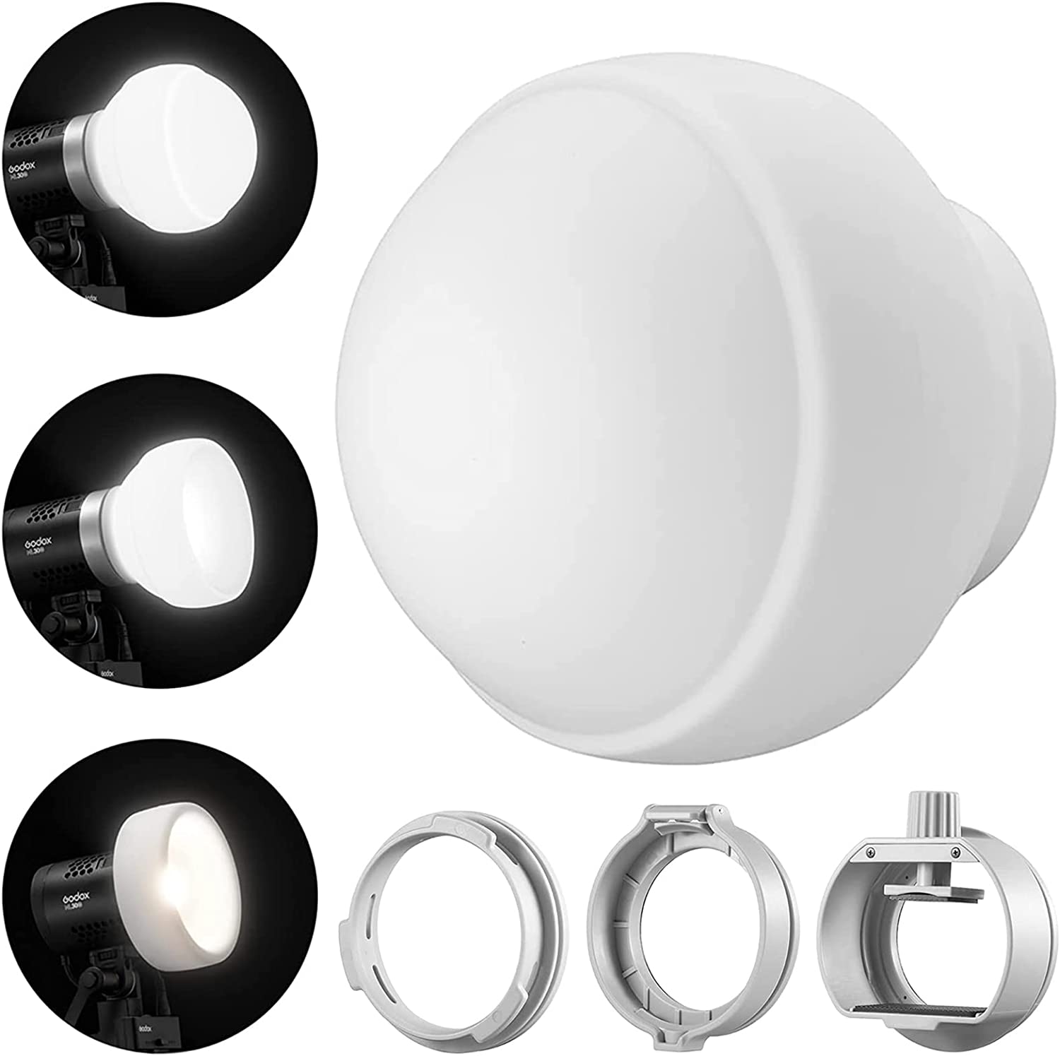 • 🏆【Package included】Diffusion dome*1, Godox mount adapter*1, Round head adapter*1, Rectangle to round head adapter*1