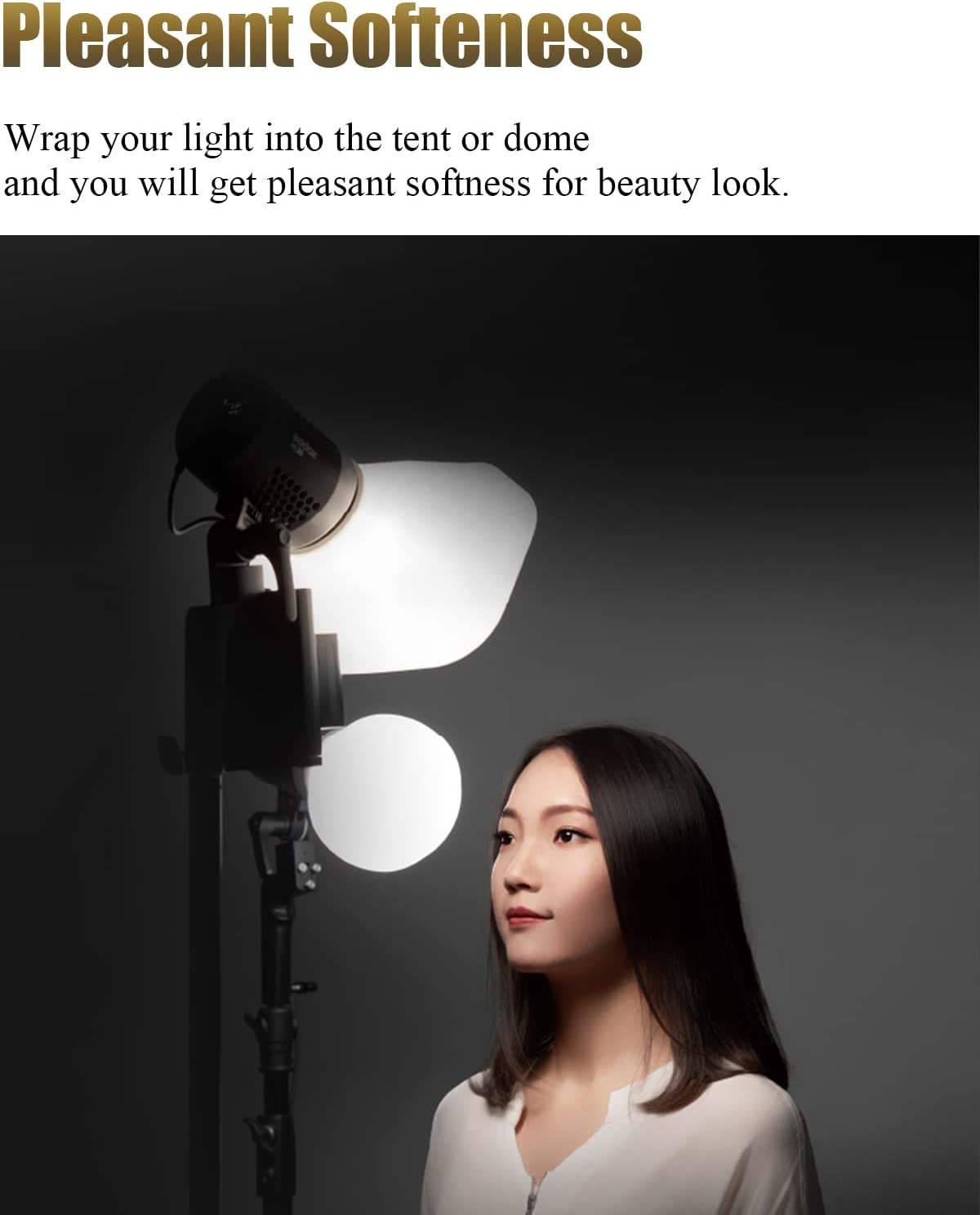 • 【Pleasant Softness】:Using the unique design of the Diffusion Dome Kit,Wrap your light into the tent or dome and you will getpleasant softness for beauty look.
