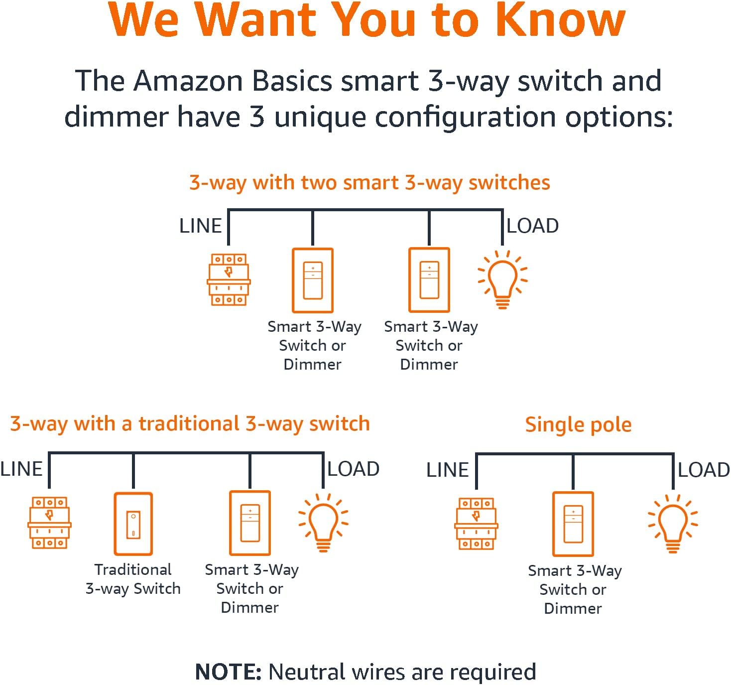 Amazon Basics Single Pole Smart Dimmer Switch, Works with Alexa, Neutral Wire Required