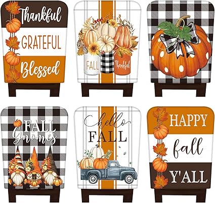 6 Pcs Fall Chair Covers Set Autumn Chair Back Cover Thanksgiving Dining Chair Slipcovers Buffalo Plaid Removable Chair Seat Protector for Kitchen Dining Hotel Wedding (Harvest)