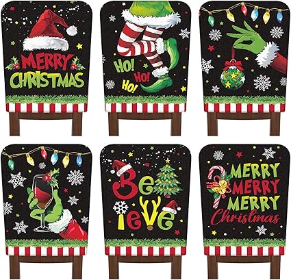 6 Pcs Lime Green Black Christmas Chair Covers Christmas Chair Back Covers Xmas Chair Protector Slipcovers Washable Winter Dining Room Seat Covers for Home Hotel Kitchen Decorations