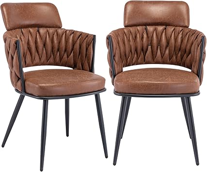 BFZ Dining Chairs Set of 2, Mid-Century Modern Dining Chair, Retro Faux Leather Kitchen Dining Room Chairs, Hand Weaving Upholstered Dining Chairs with Metal Legs for Dining Room, Kitchen, Living Room