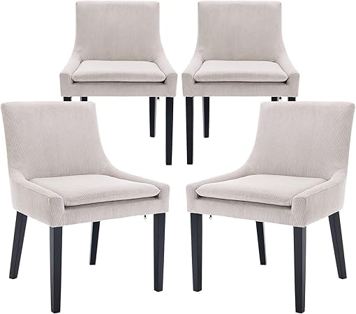 COLAMY Modern Dining Chairs Set of 4, Upholstered Corduroy Accent Side Leisure Chairs with Mid Back and Wood Legs for Living Room/Dining Room-Beige