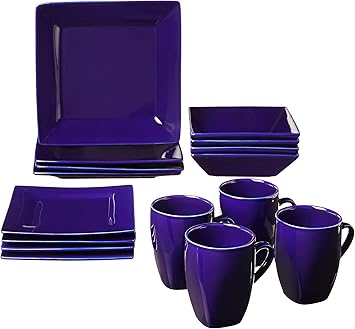 10 Strawberry Street Nova Square Dinnerware Set, 16 PIECE, Cobalt
