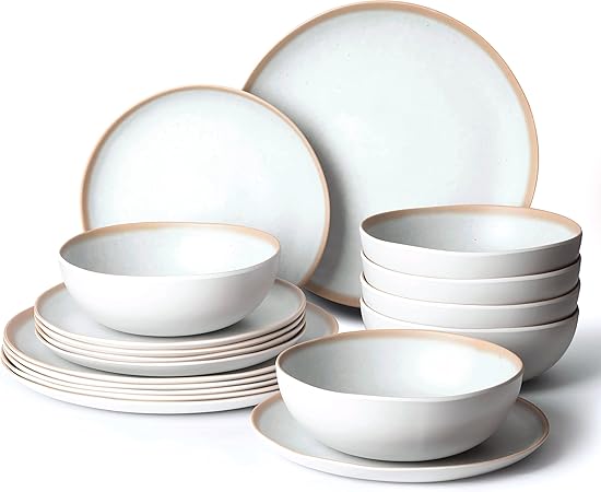 18PCS Matte Gray Rustic Melamine Dinnerware Sets for 6, Outdoor Plates and Bowls Sets (Gray Rustic)