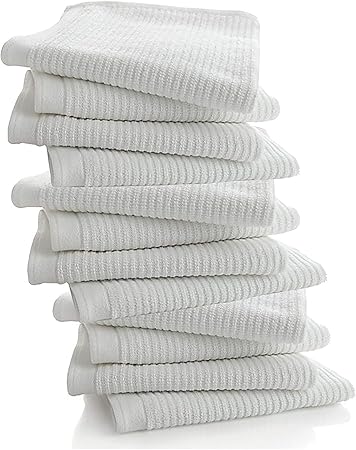 Living Fashions Bar Towels - Bar Mop Cleaning Kitchen Towels (12 Pack, 16" x 19_ѝ) - Premium Ring-Spun Cotton White, Restaurant and Shop Cleaning Rags