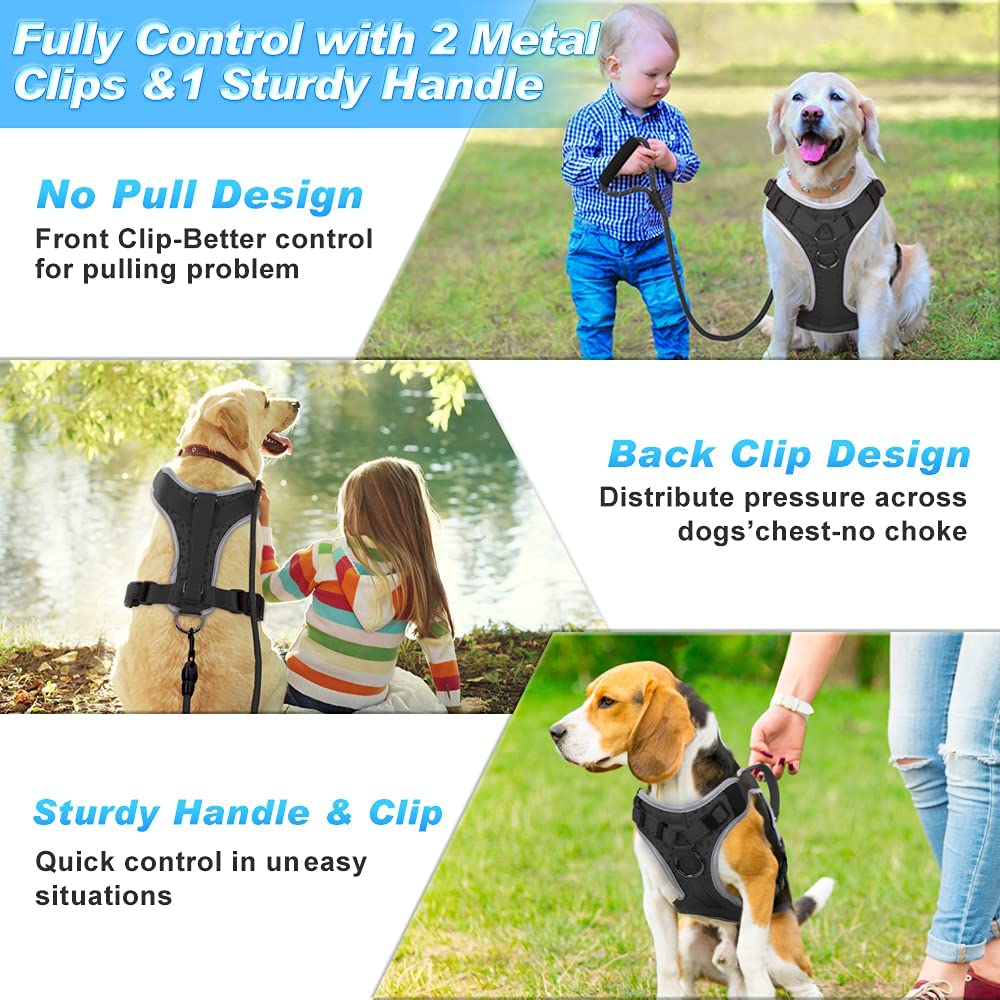 Supet Dog Harness No Pull, Dog Vest Harness with Dog Leash, No Choke Dog Harness Adjustable Reflective Heavy Duty Pet Harness with Easy Control Handle for Small Medium Large Dog