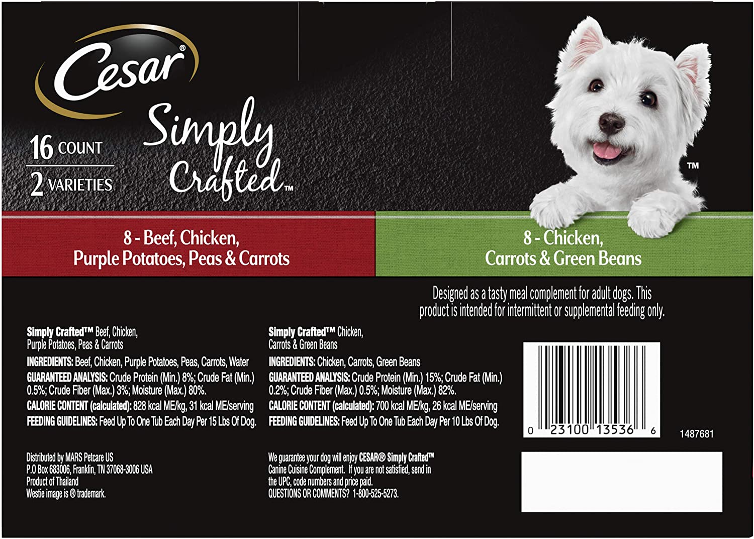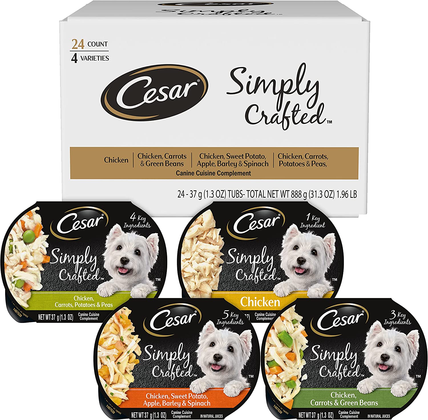 Cesar Simply Crafted Adult Soft Wet Dog Food Cuisine Complement Variety Pack, (24) 1.3 oz Tubs